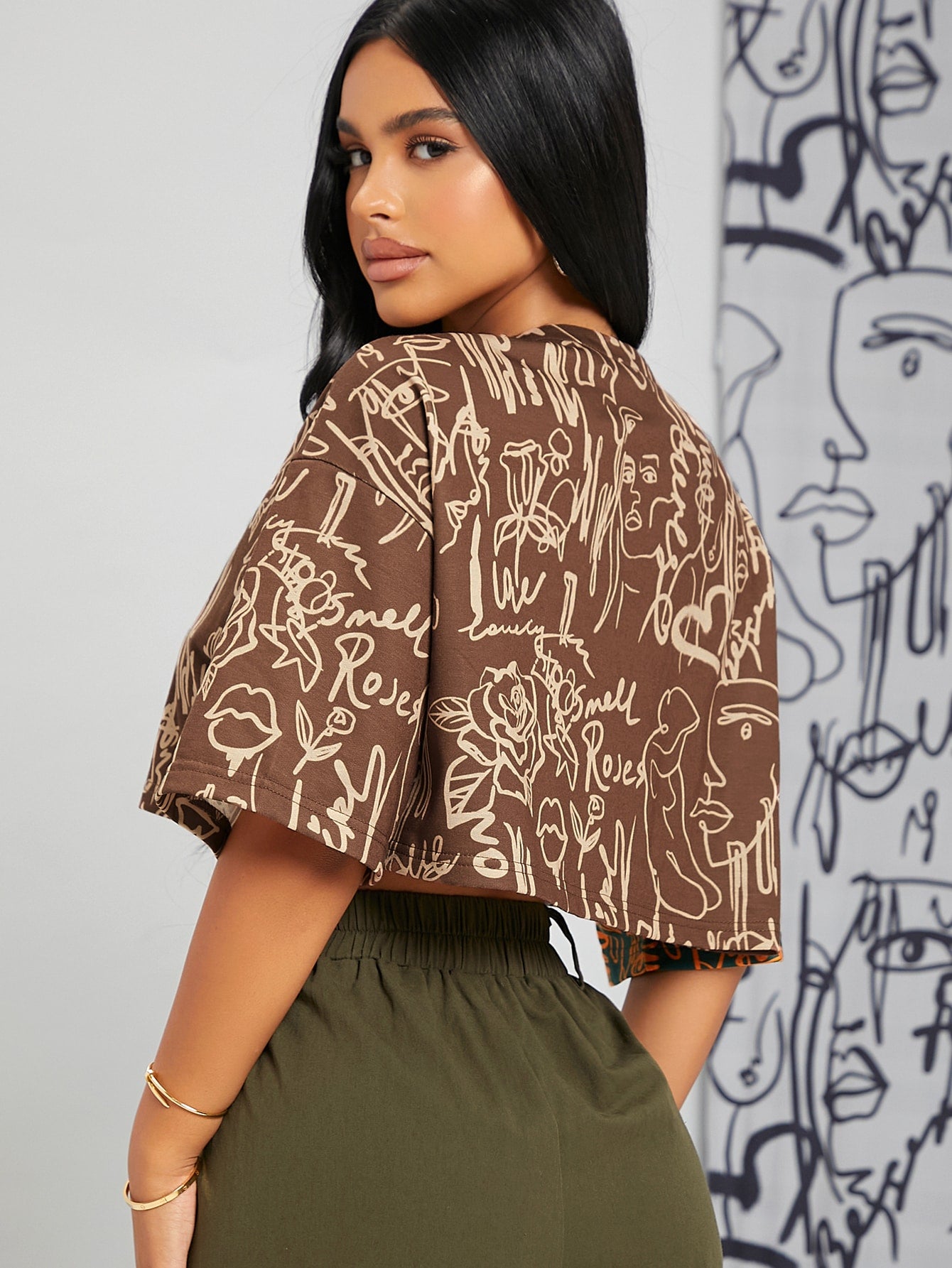 SXY Letter And Figure Graphic Color Block Chain Detail Tee