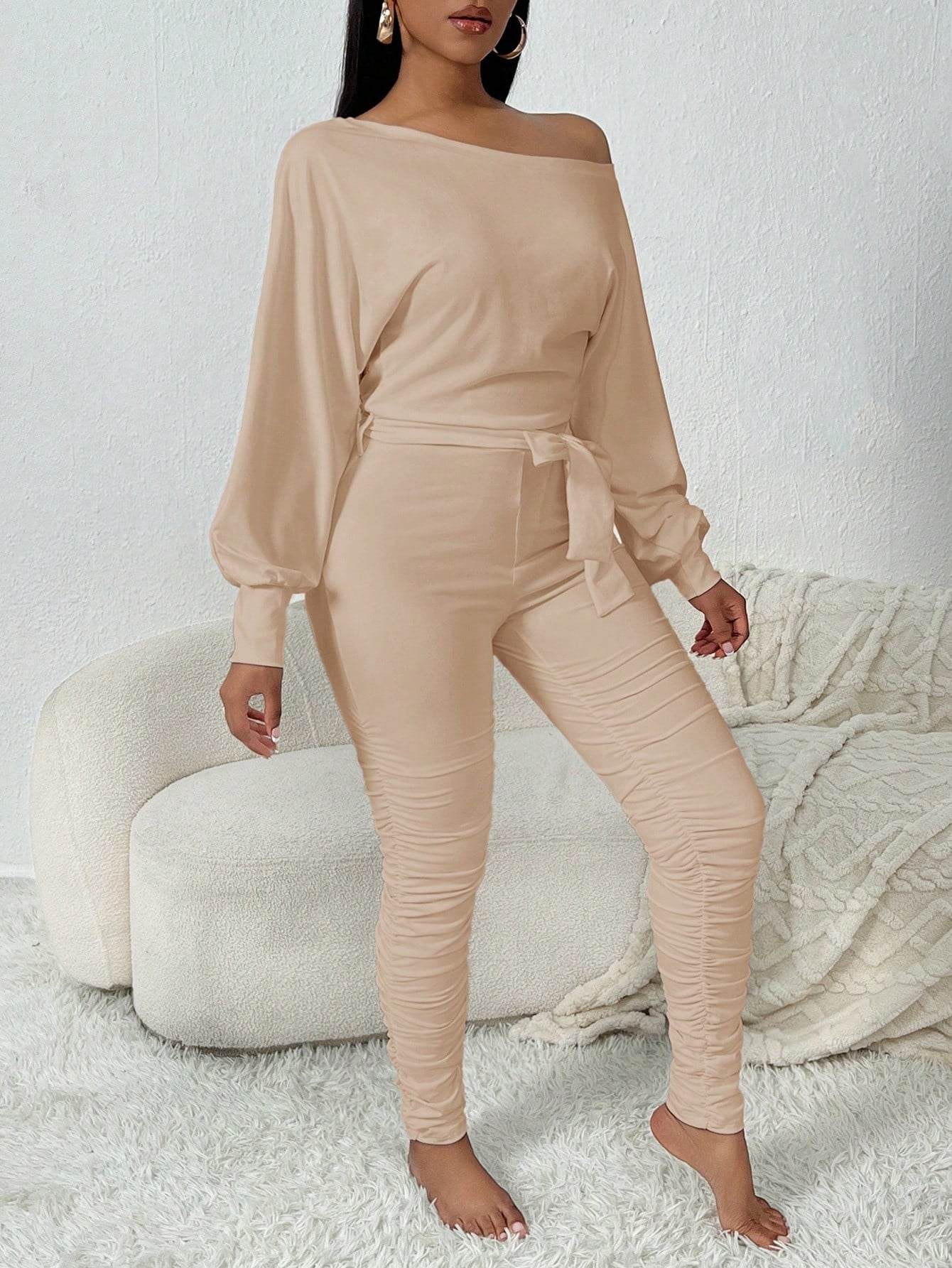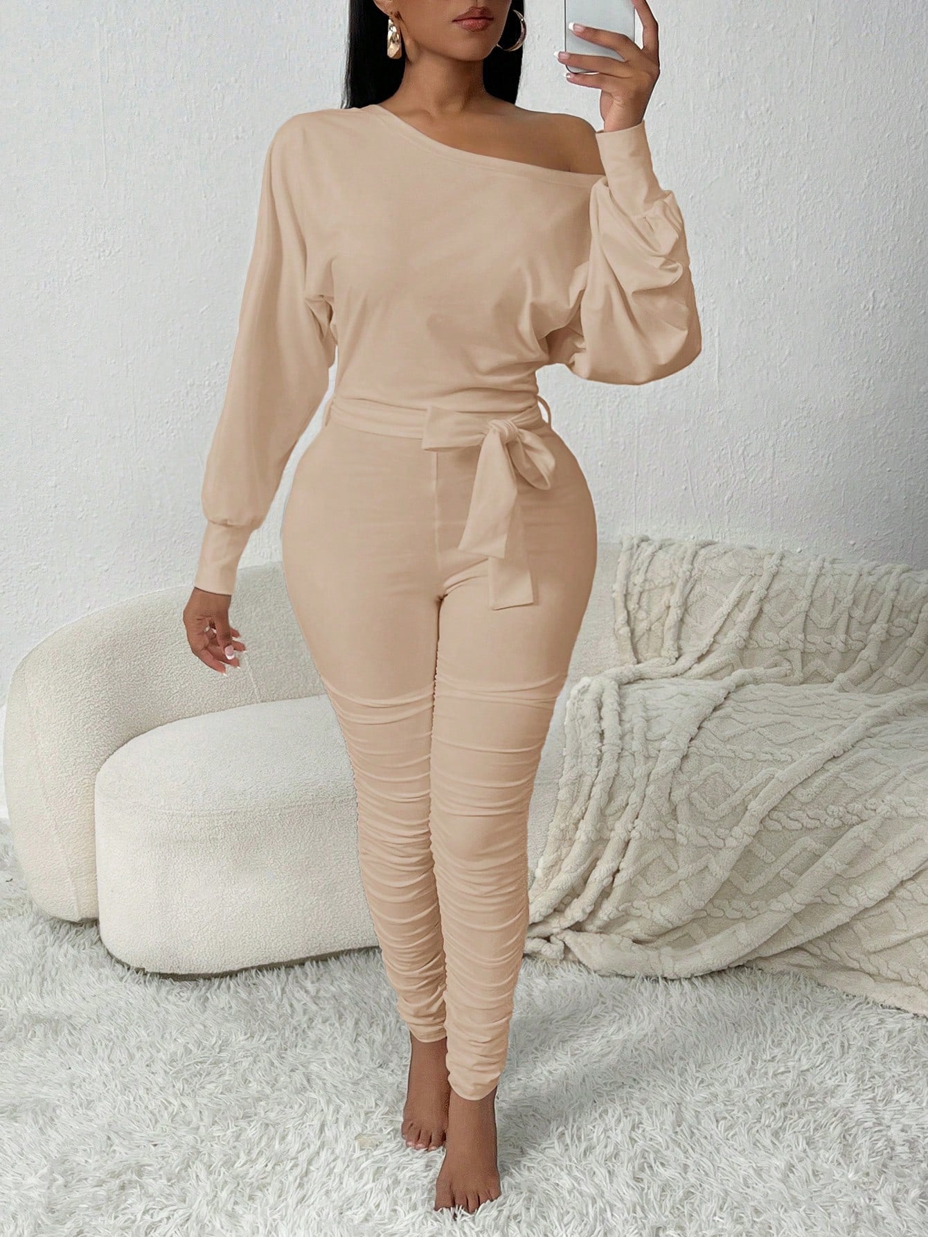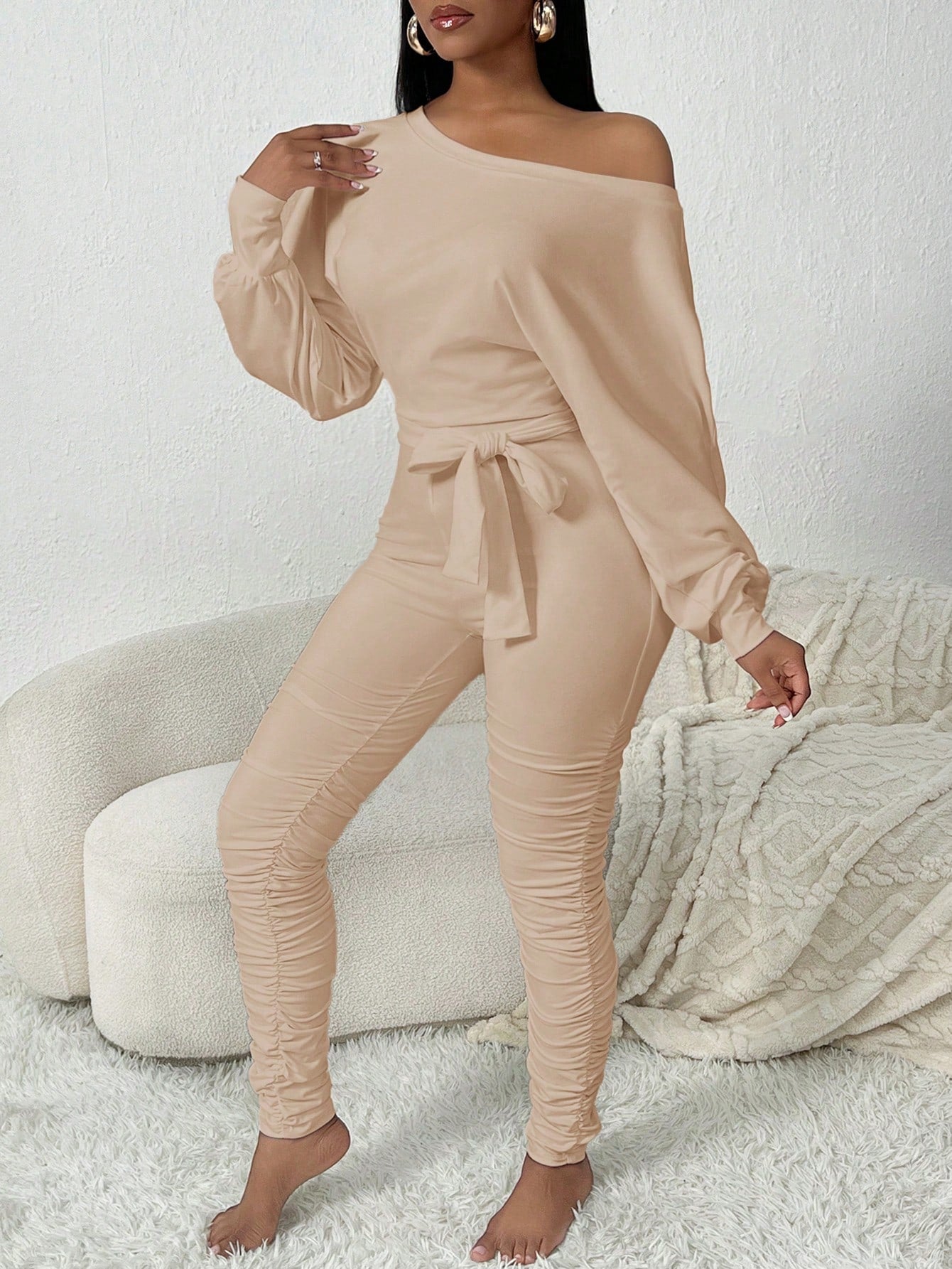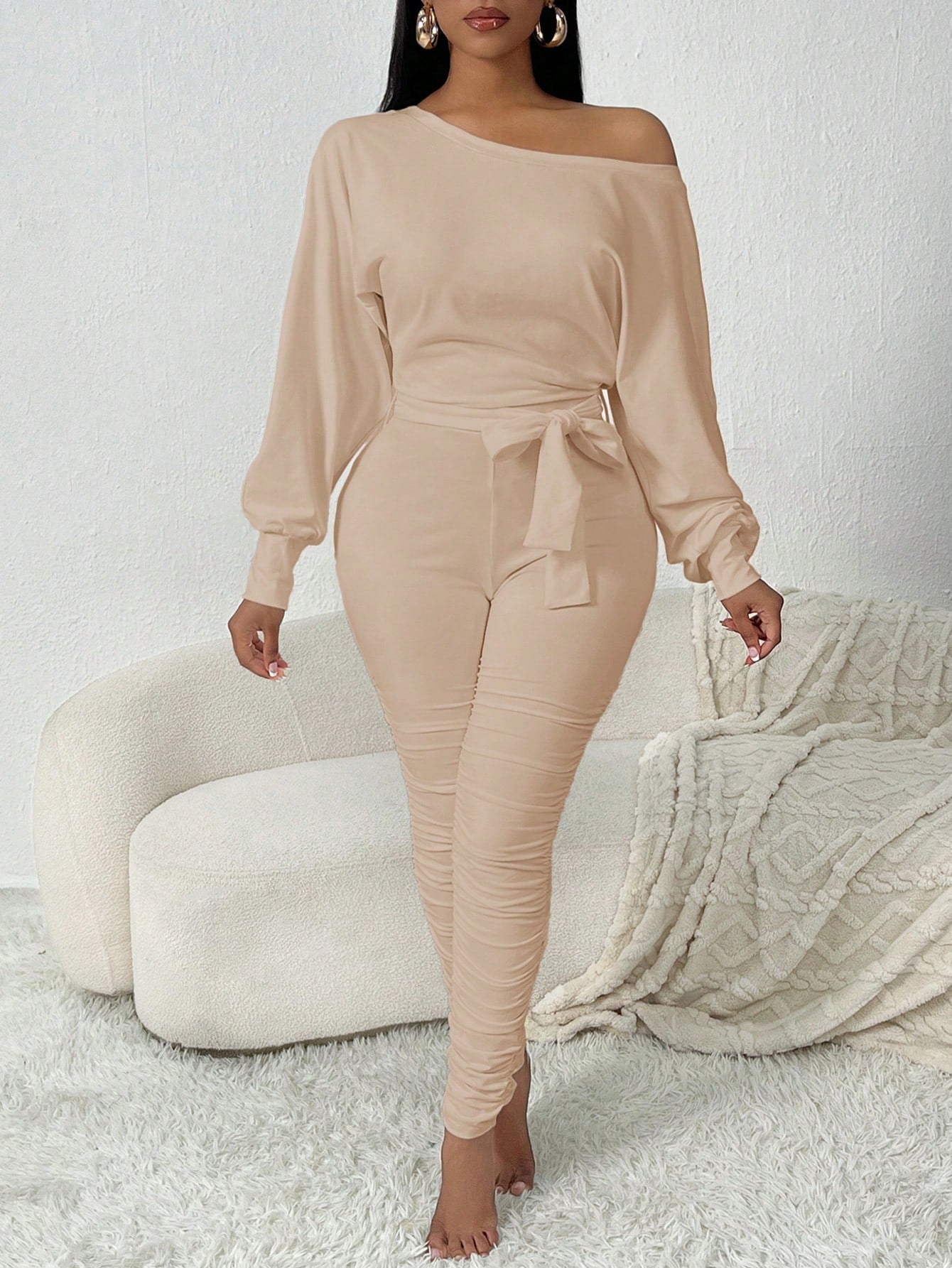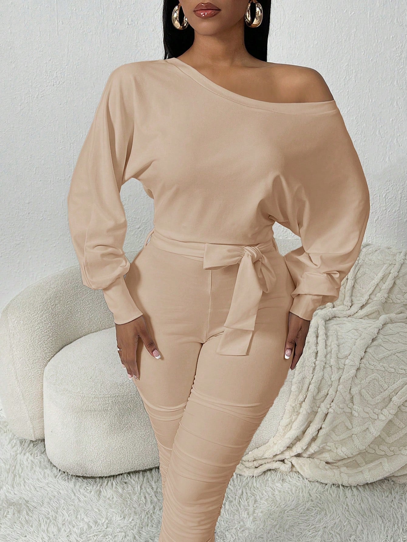 SXY Oblique Shoulder Cozy White Jumpsuit
