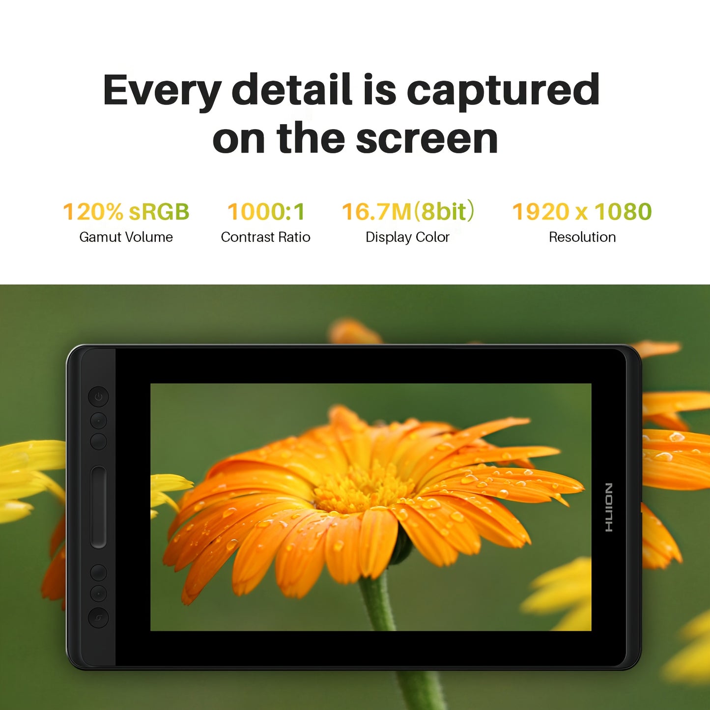 Tablette de Dessin HUION KAMVAS Pro 13, Tablette d'Art Numérique Entièrement Laminiée avec Support de Tilt, Stylus Sans Batterie à 8192 Pressions de Stylo, Tablette Graphique de 13.3 pouces avec Support Réglable, Support de Tablette