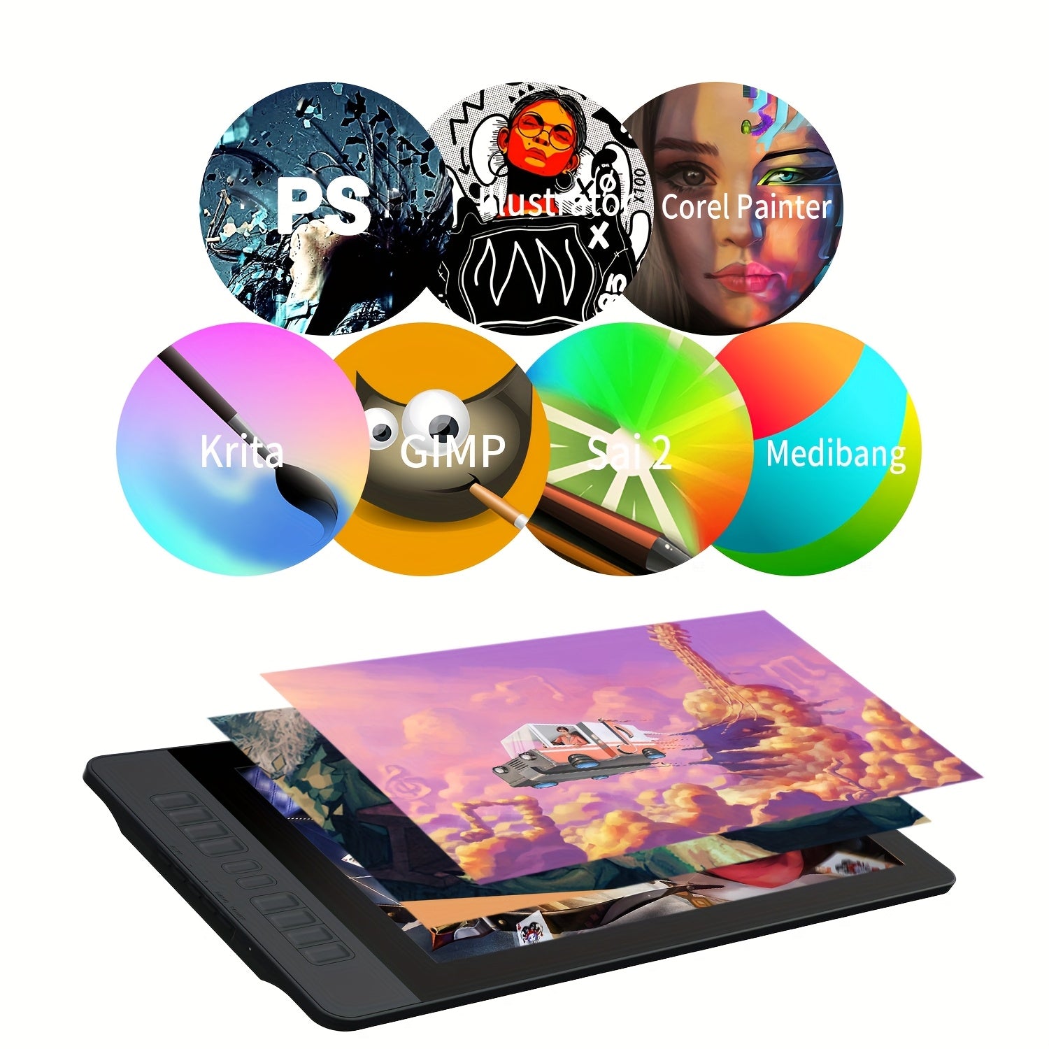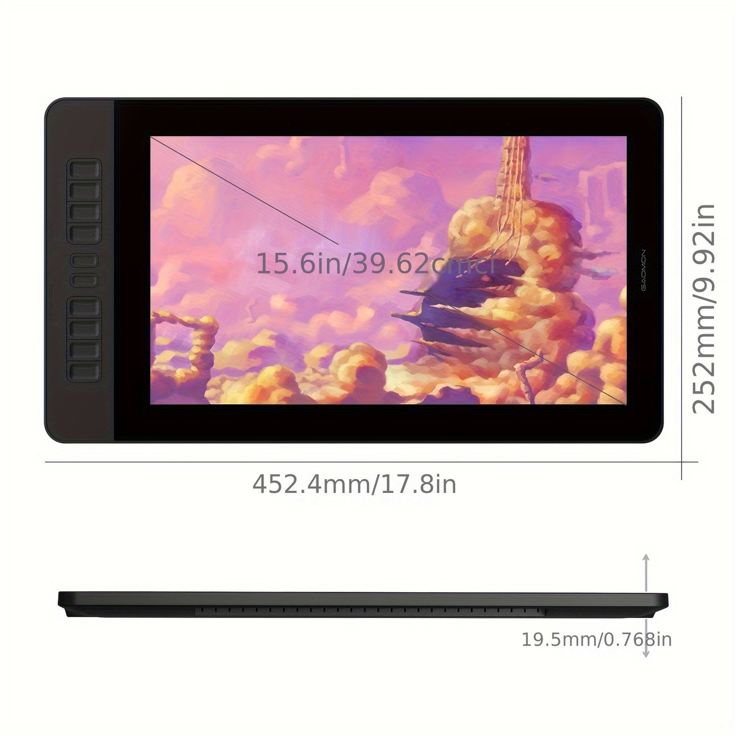 Tablette graphique GAOMON PD1561 avec écran 15.6 pouces Full HD IPS, moniteur de dessin avec 8192 niveaux de sensibilité à l'inclinaison, stylet sans pile et 10 touches de raccourci, tablette graphique pour Mac et PC Windows.
