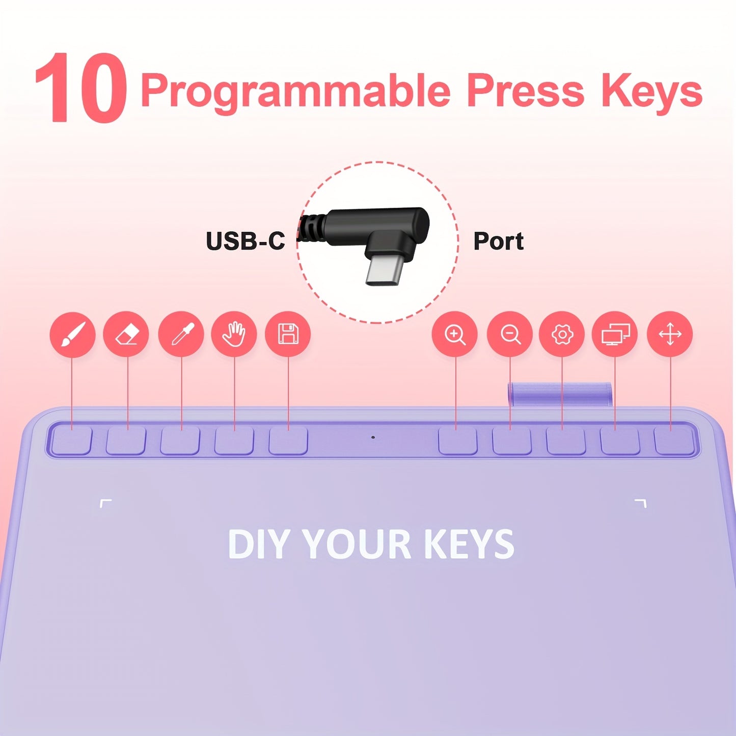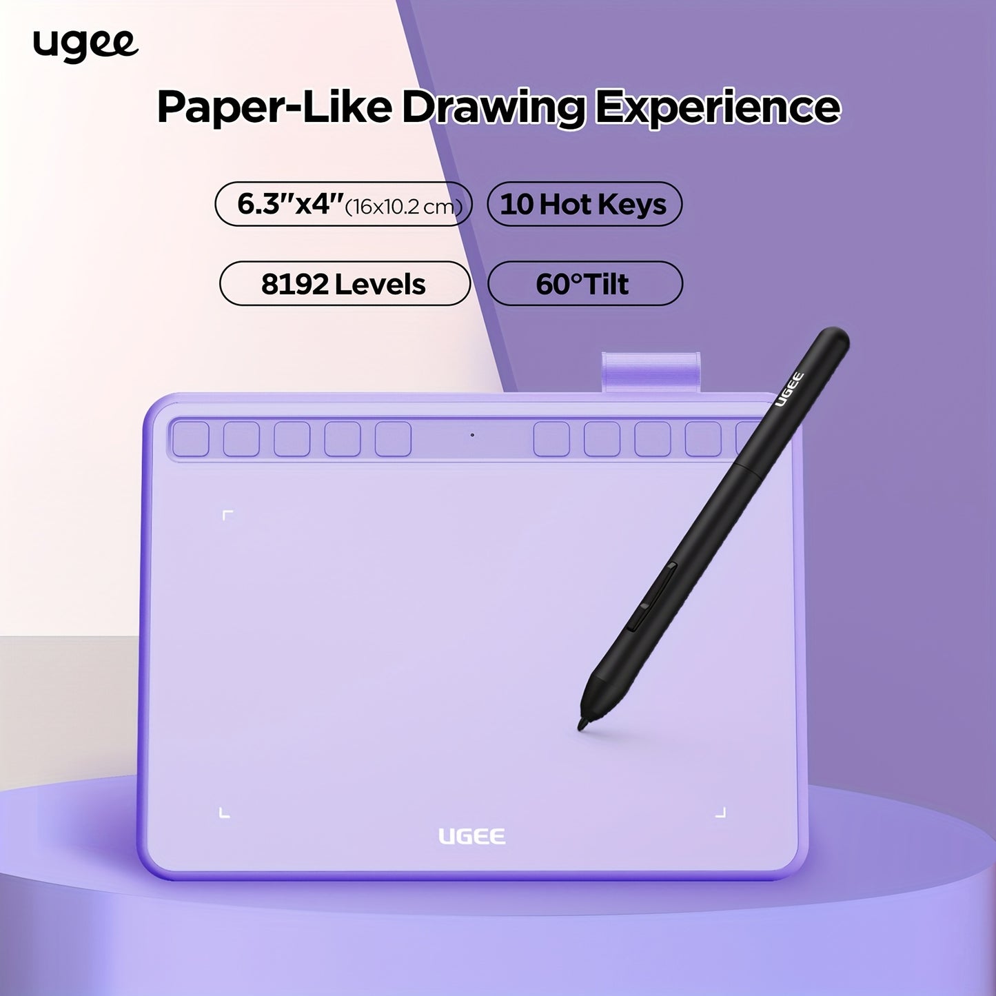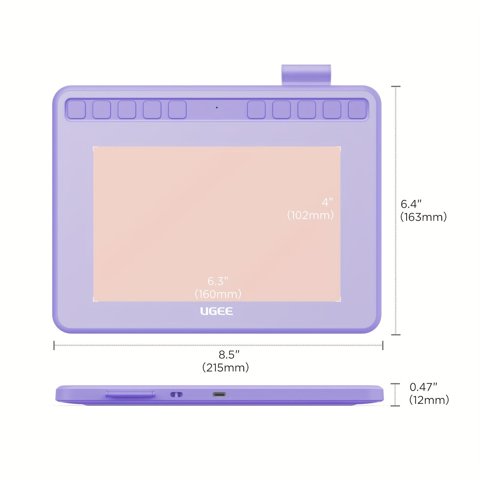 Tablette graphique UGEE S640 Violette, une tablette d'écriture électronique compatible avec Linux, Mac, Windows PC et Android OSU, mesurant 6,3 x 4 pouces.