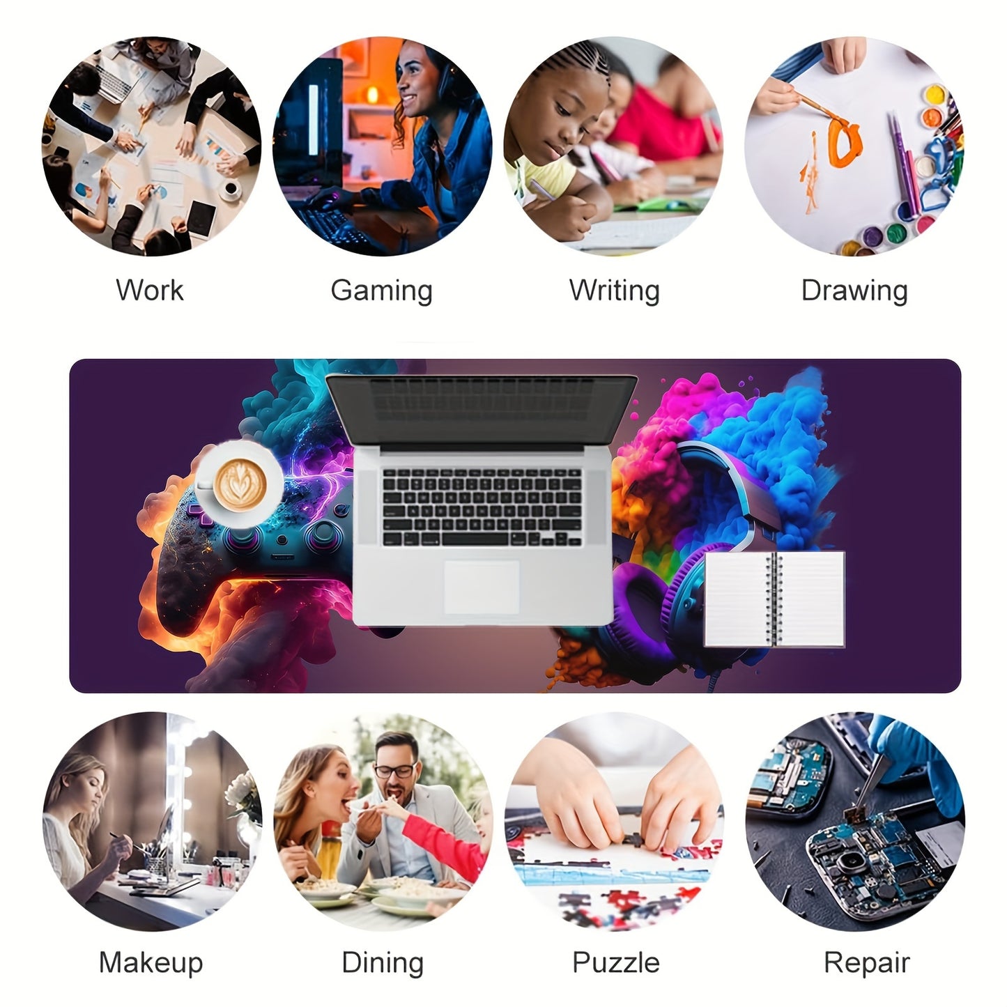 Tapis de souris de jeu extra large FoBianJie avec design manette de jeu et casque - Tapis de bureau en silicone antidérapant, bords cousus anti-effilochage, tapis de clavier et souris XL étendu pour la décoration de la maison/bureau