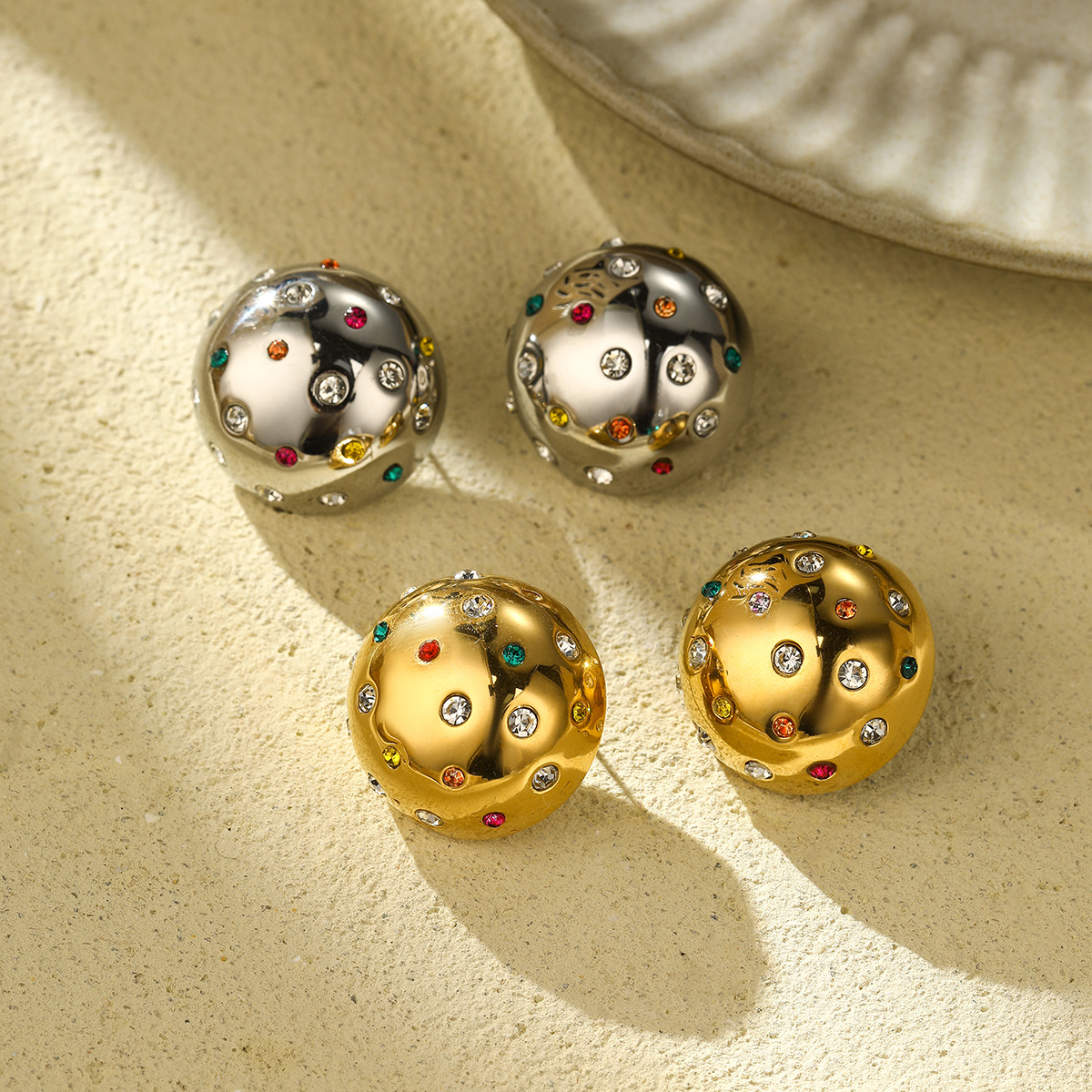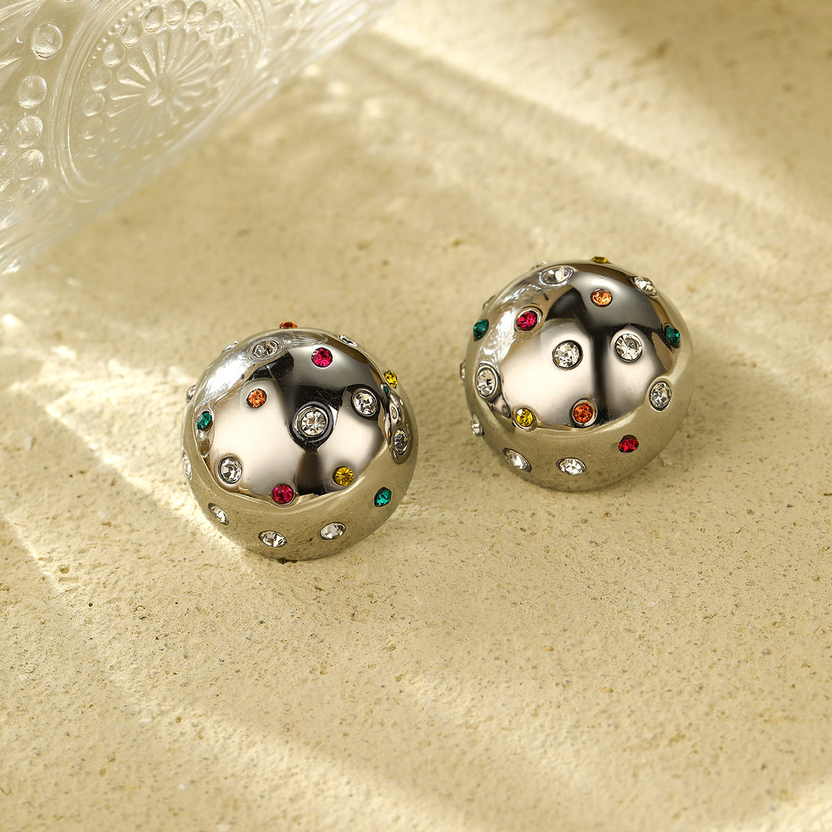 Temperamental Minority Personality Super Earrings Stainless Steel Color Zircon round High Grade Earrings