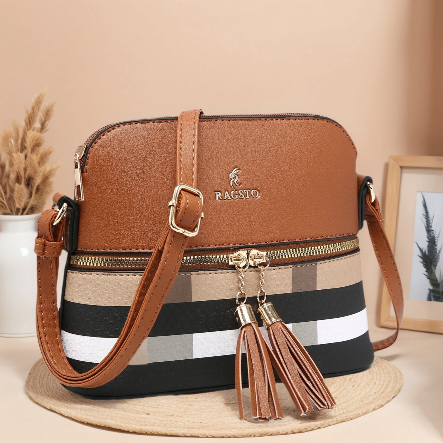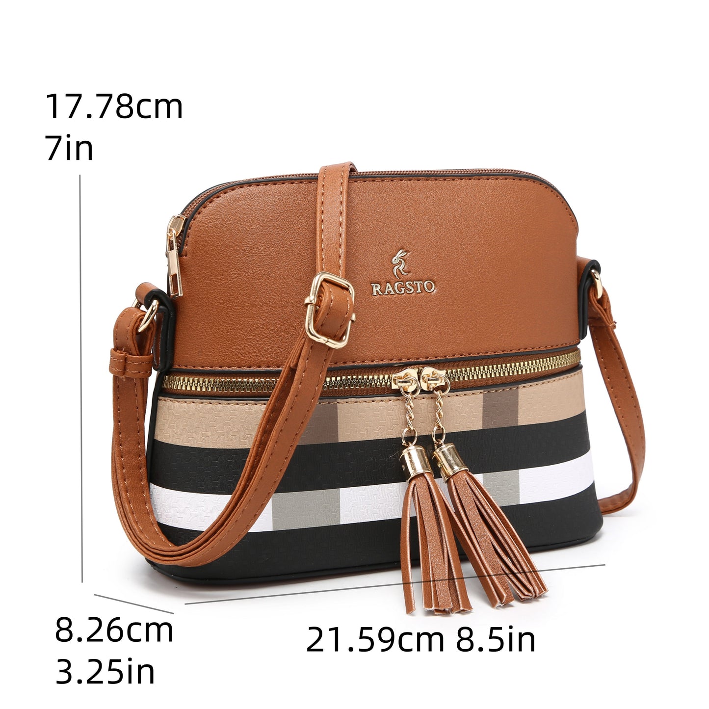 TEPILTE Lightweight Medium Dome Crossbody with Tassel Plaid Pattern Fashion Retro Shoulder Bag Purse for Daily Casual Use