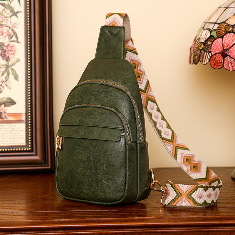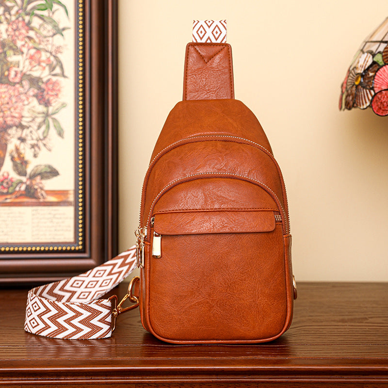 Textured Chest Bag Faux Leather Women Chest Bag One Shoulder Crossbody Simple Stylish Casual Motorcycle Bag Women