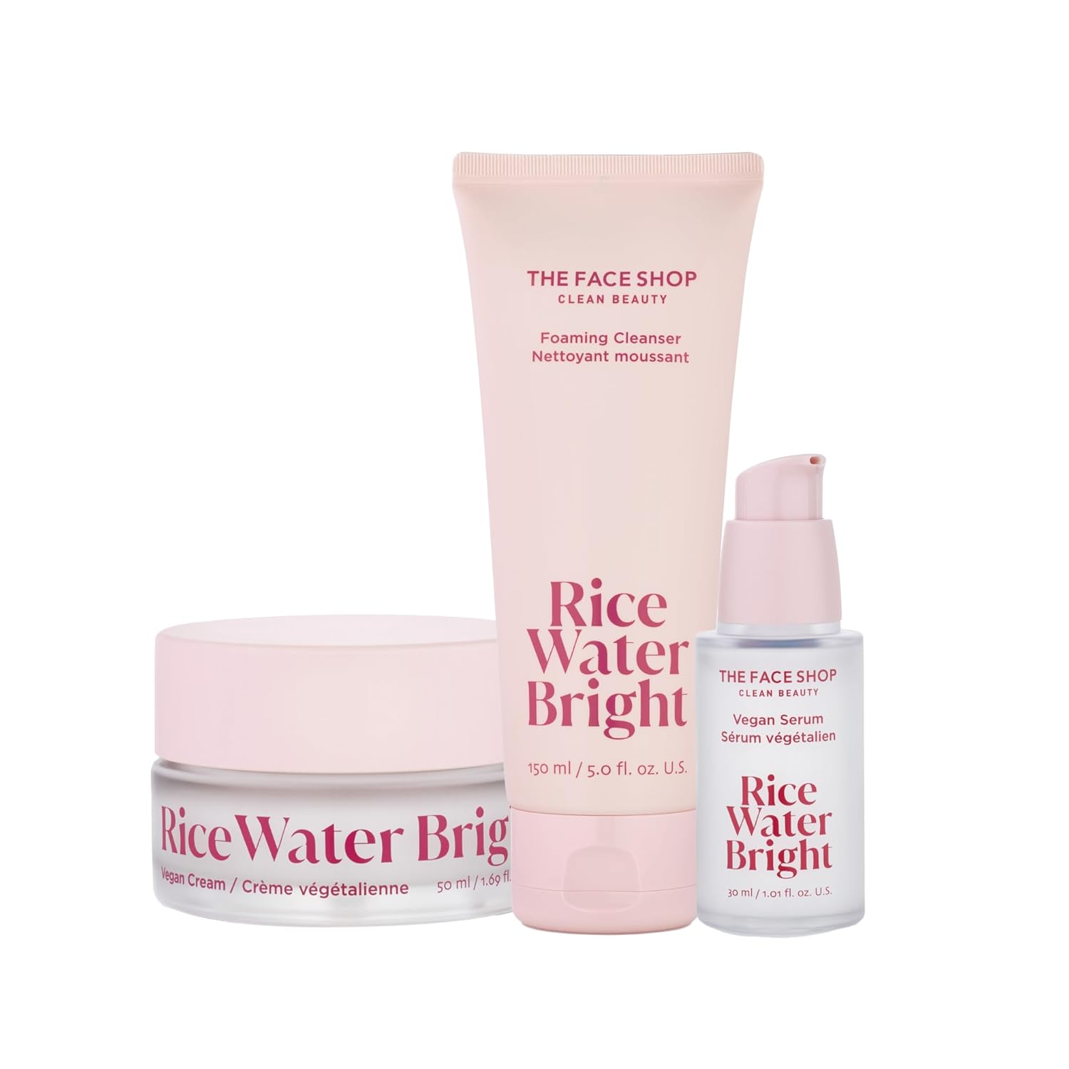 The Face Shop Rice Water Bright Foaming Facial Cleanser with Ceramide, Gentle Face Wash for Hydrating & Moisturizing, Vegan Face Cleanser, Makeup Remover