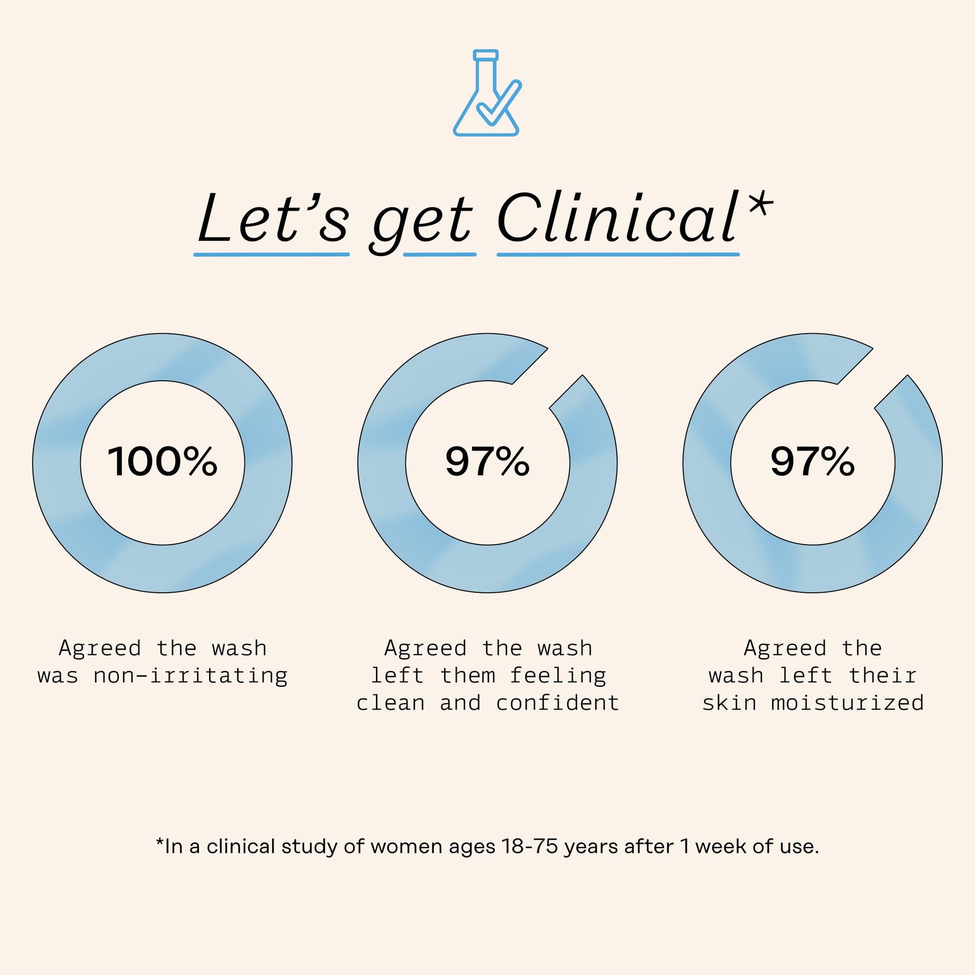 - Plant-derived foaming feminine wash clinically tested and shown to hydrate, cleanse and minimize odor