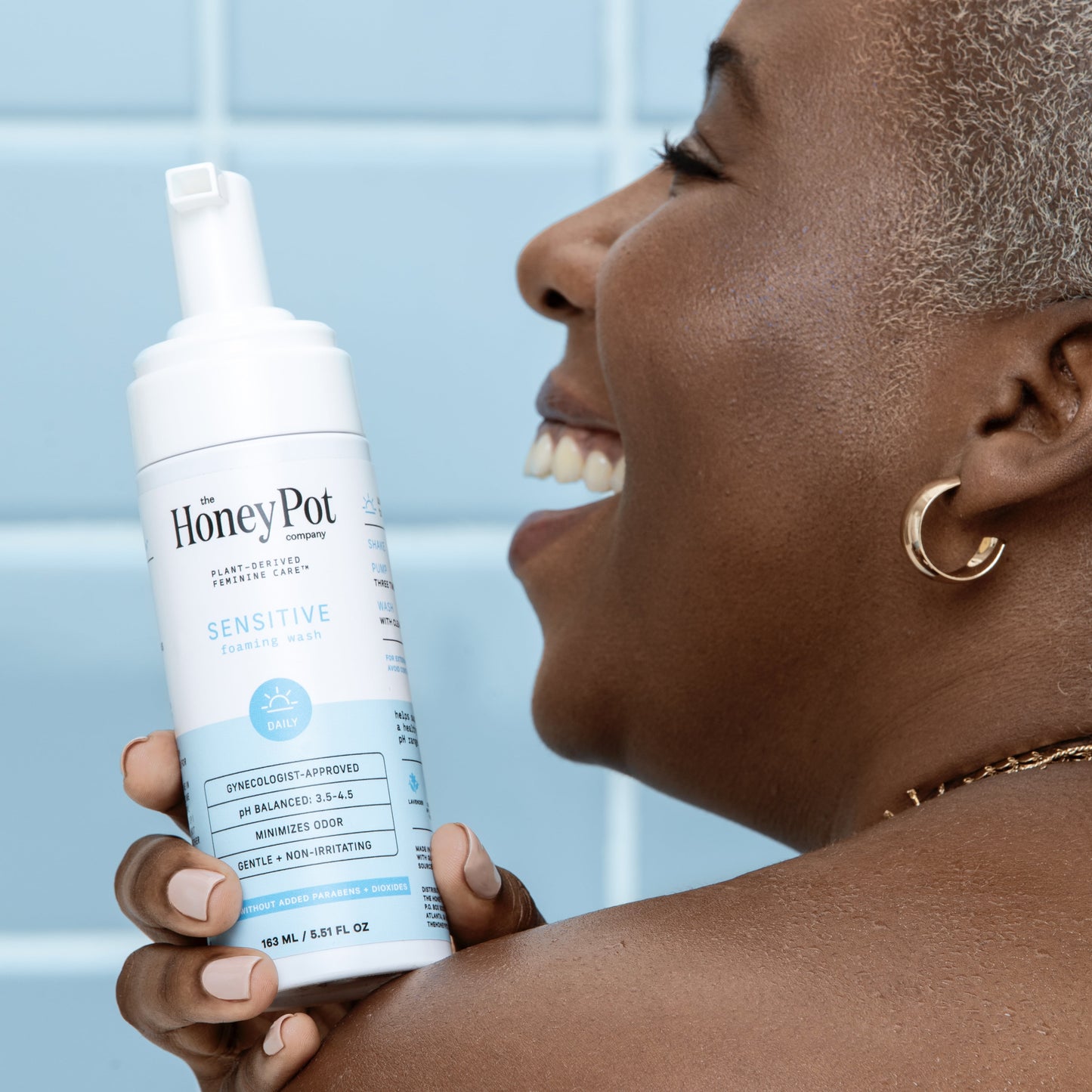 Use our daily Sensitive Feminine Foaming Wash to balance your pH, boost moisture and soothe while gently cleansing your most delicate parts. The Honey Pot's community favorite washes are science backed, dermatologist-approved, hypoallergenic, kind to and safe for skin. Clinically tested and shown to minimize odor, cleanse, hydrate and refresh, this Sensitive Foaming Wash supports intimate skin health.