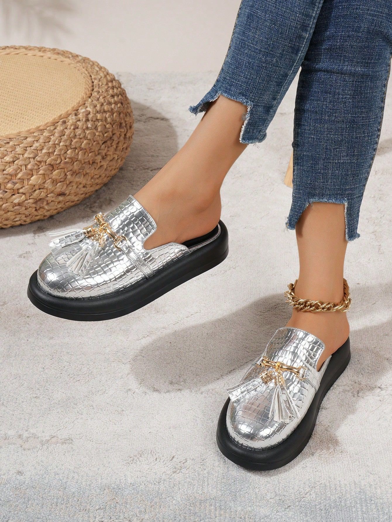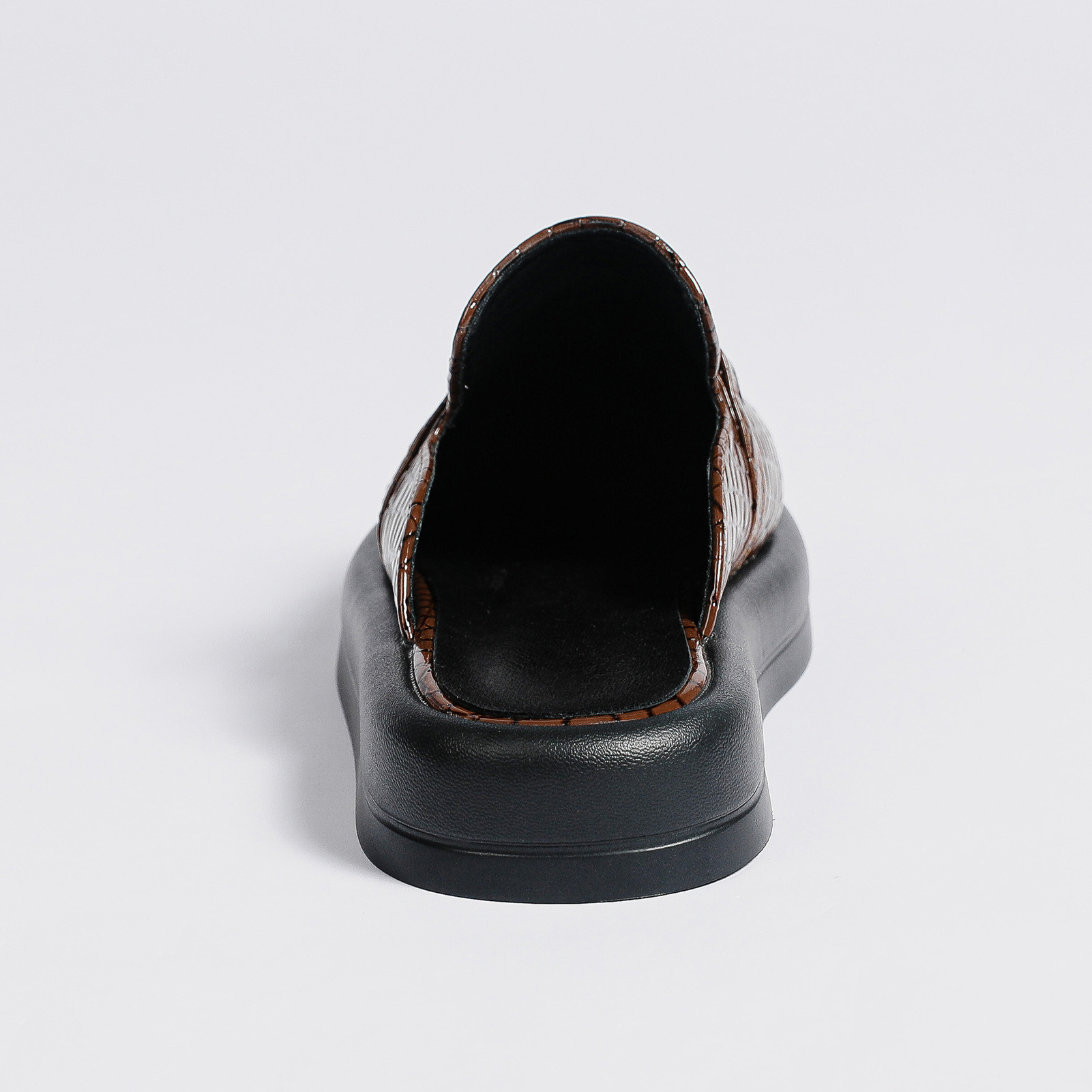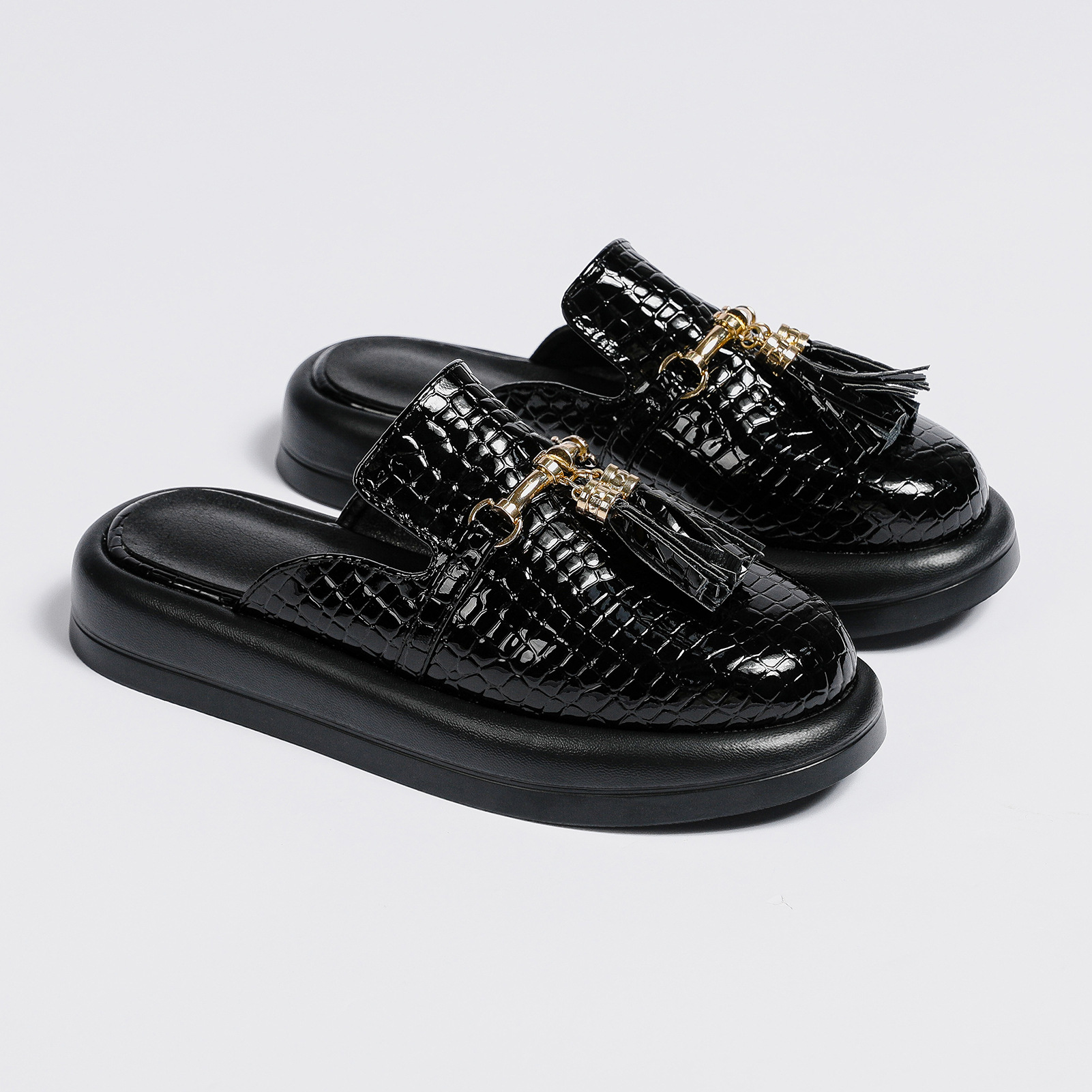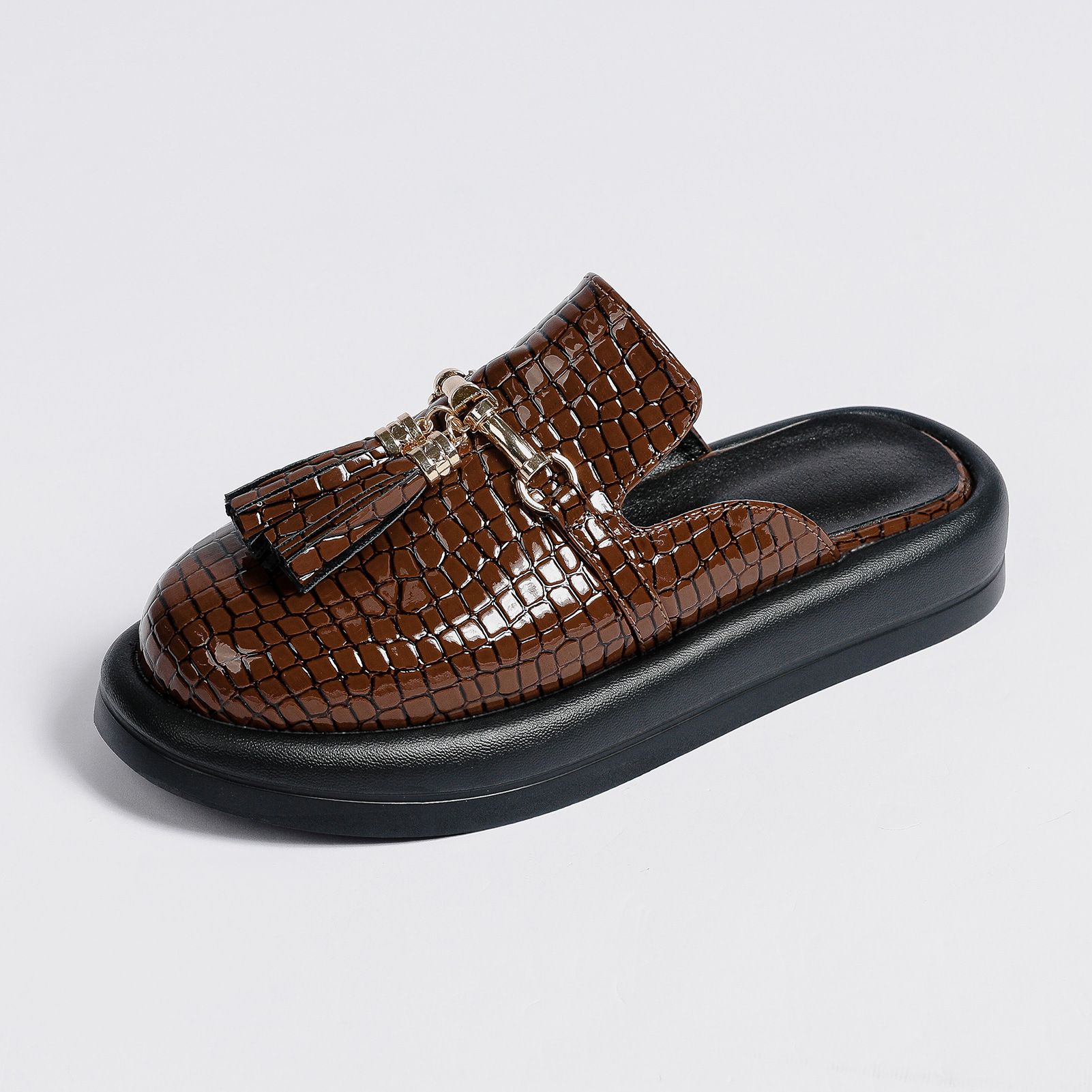 Thick Bottom Metal Buckle Muller Half Slippers Spring Autumn plus Size Stone Pattern Sandals Women