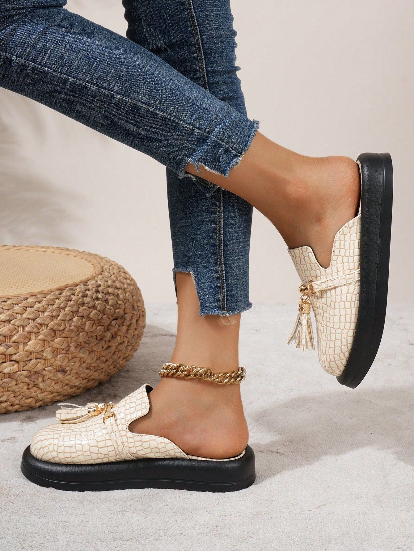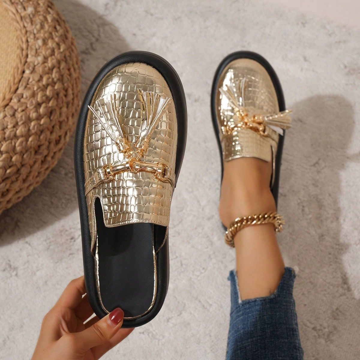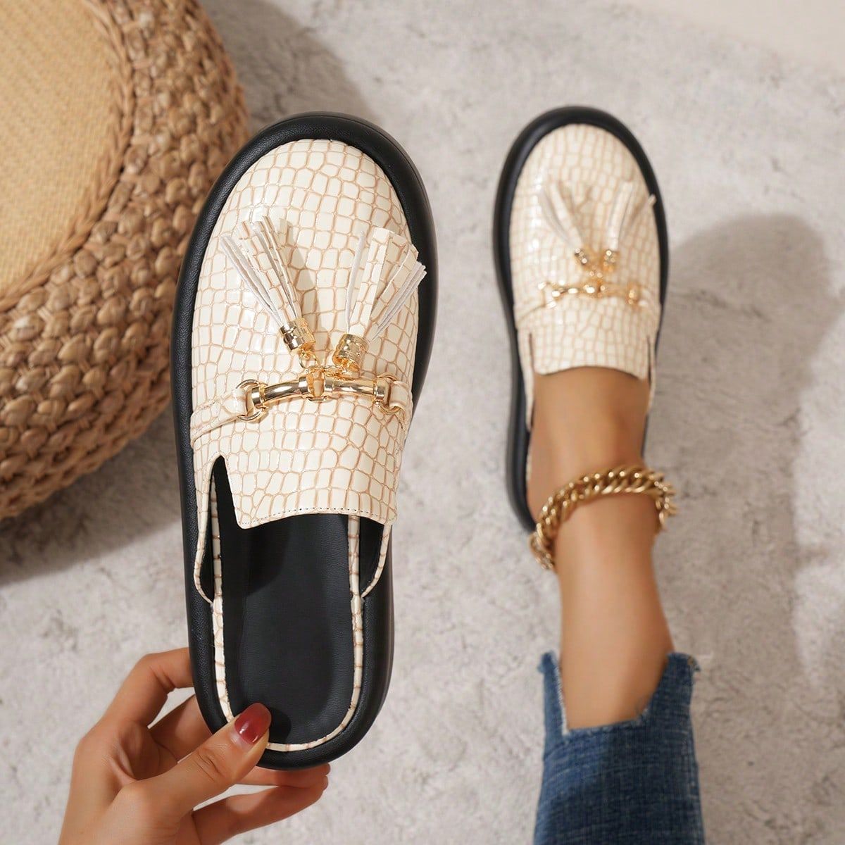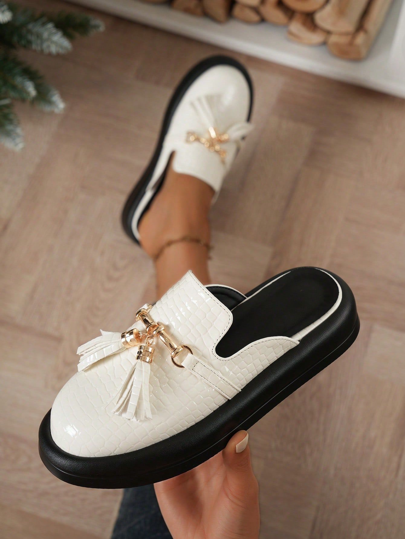 Thick Bottom Metal Buckle Muller Half Slippers Spring Autumn plus Size Stone Pattern Sandals Women