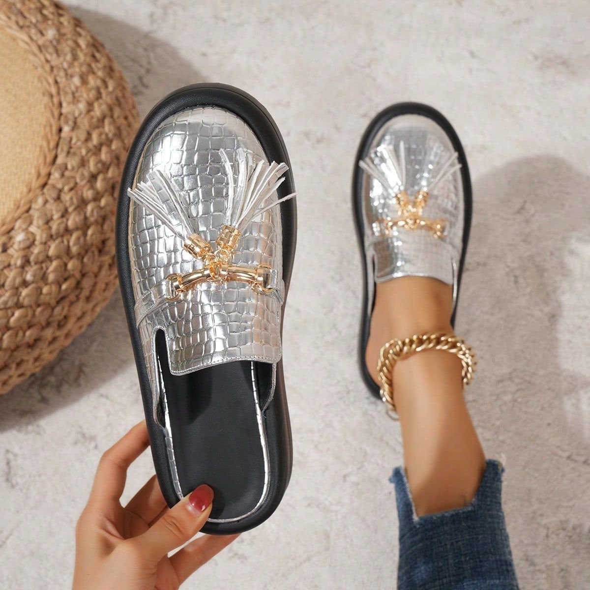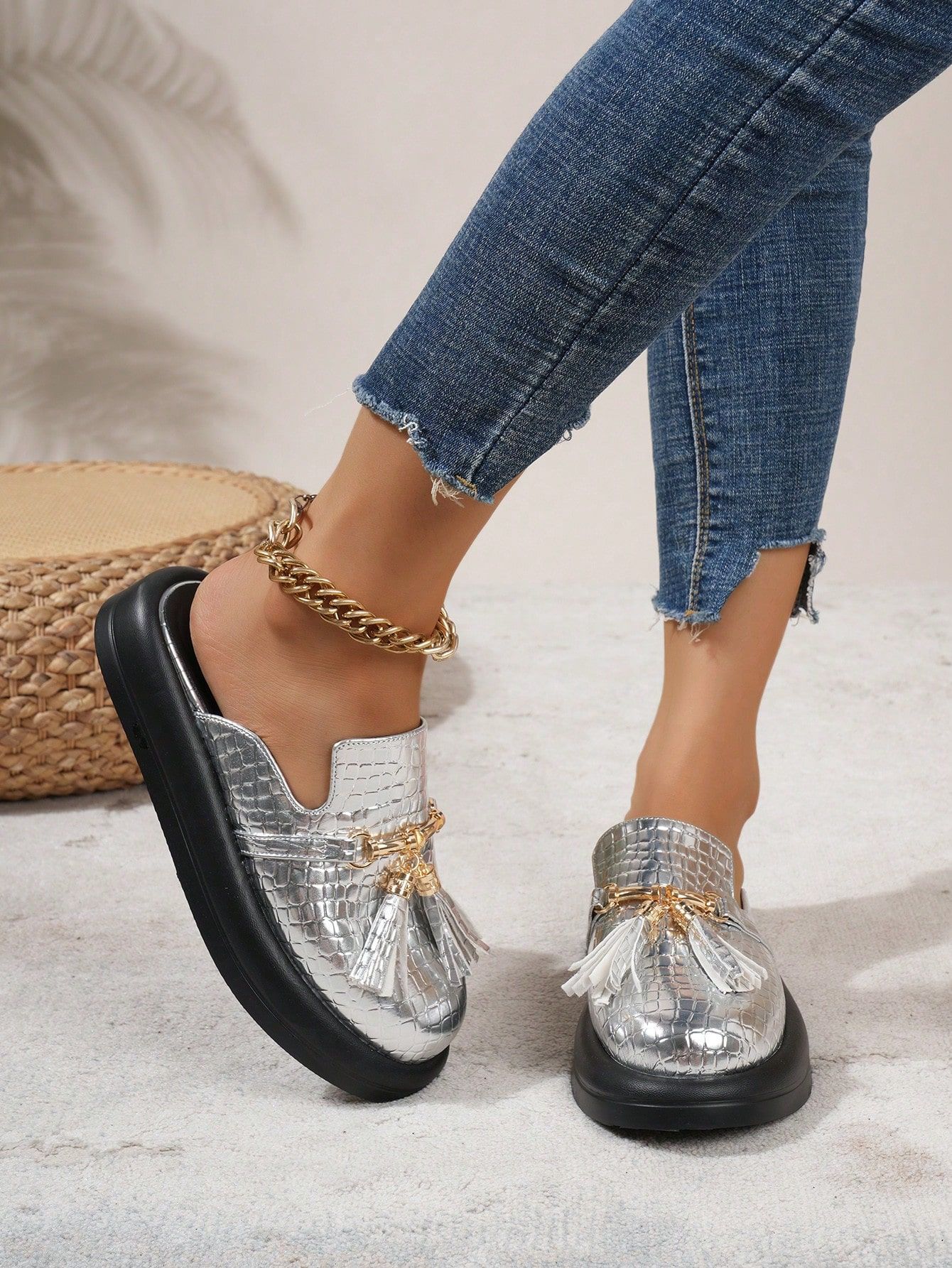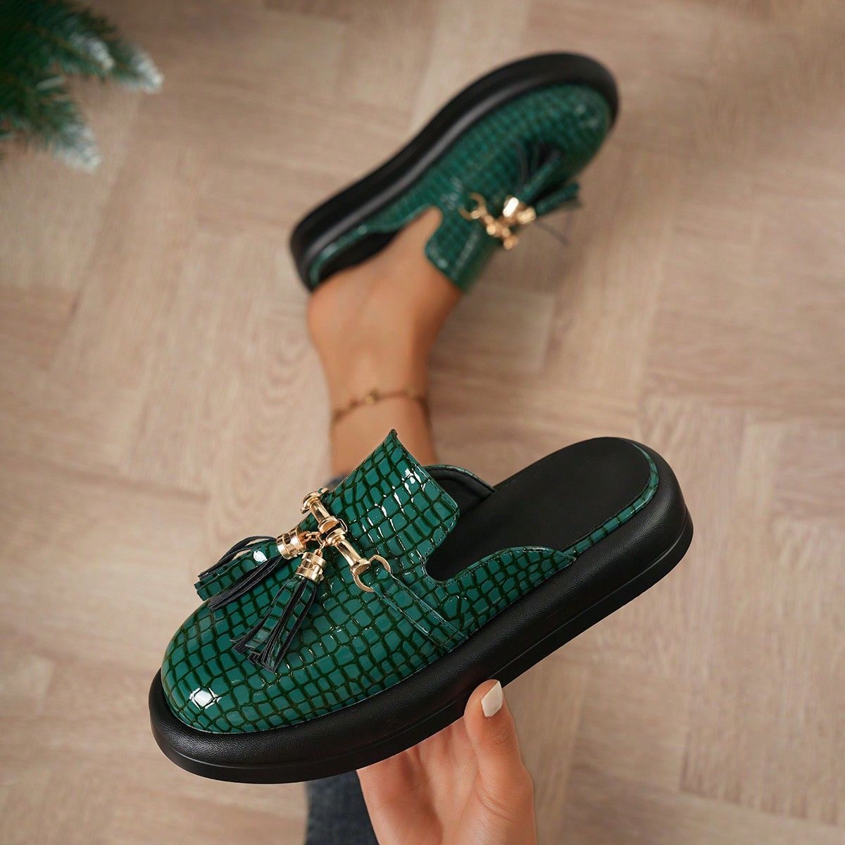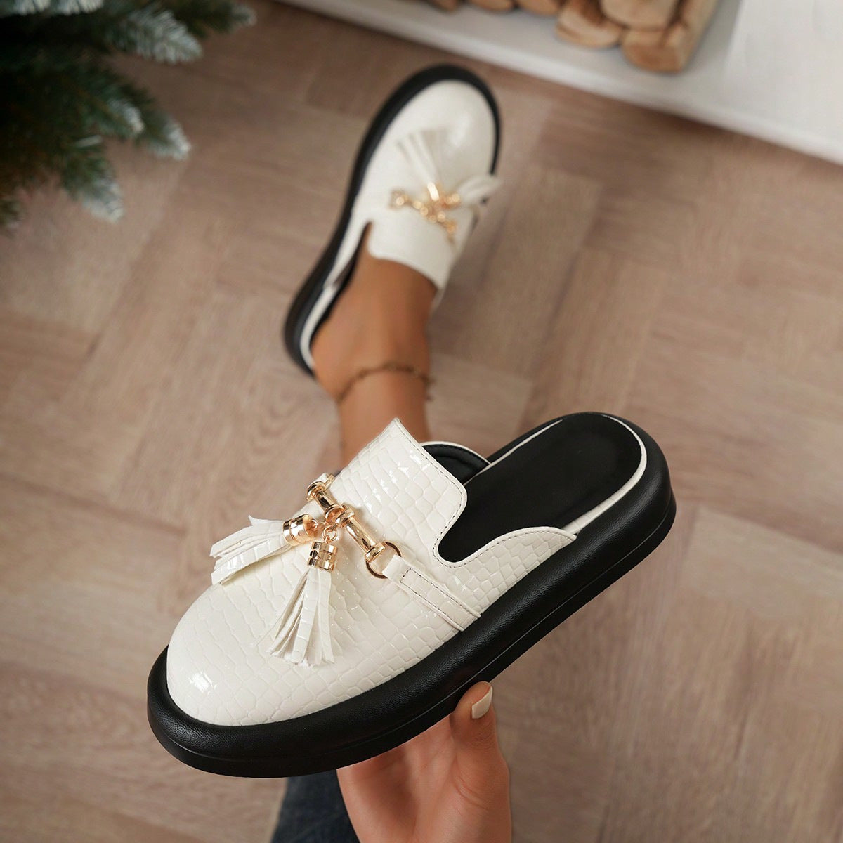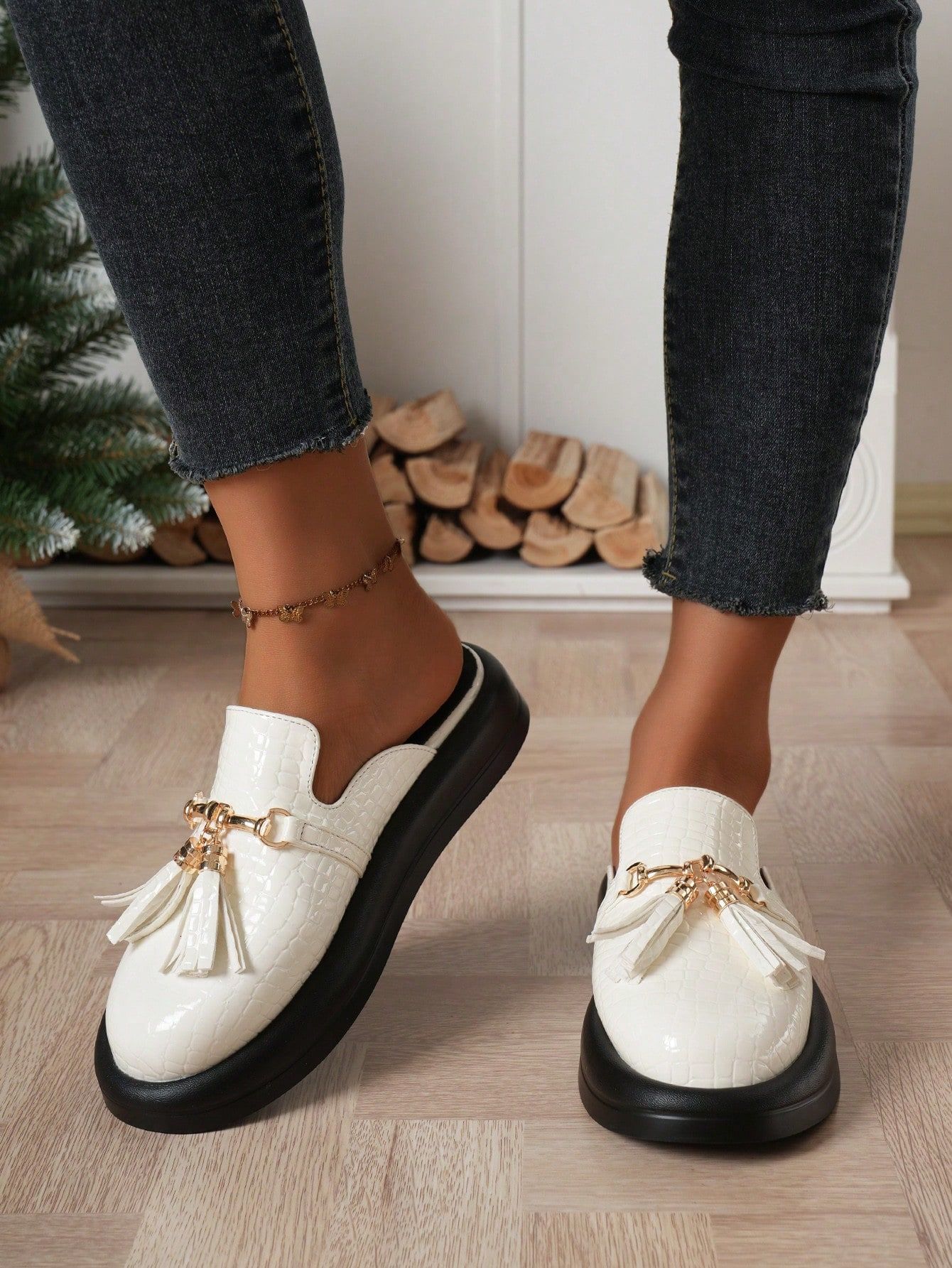 Thick Bottom Metal Buckle Muller Half Slippers Spring Autumn plus Size Stone Pattern Sandals Women
