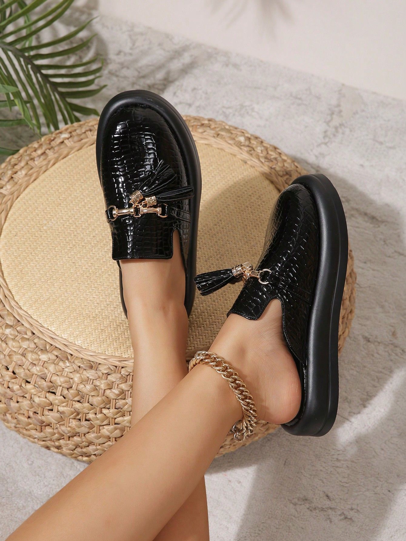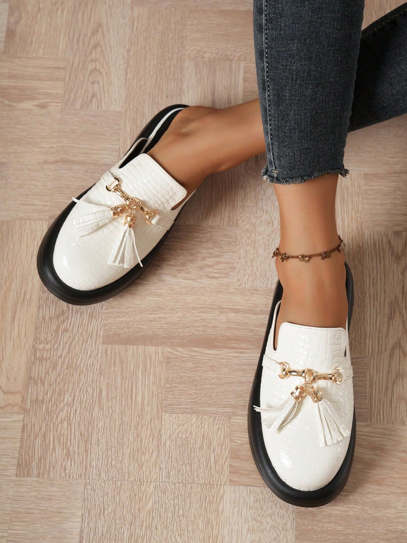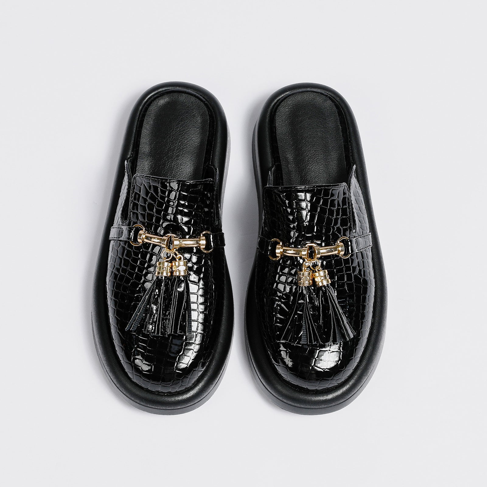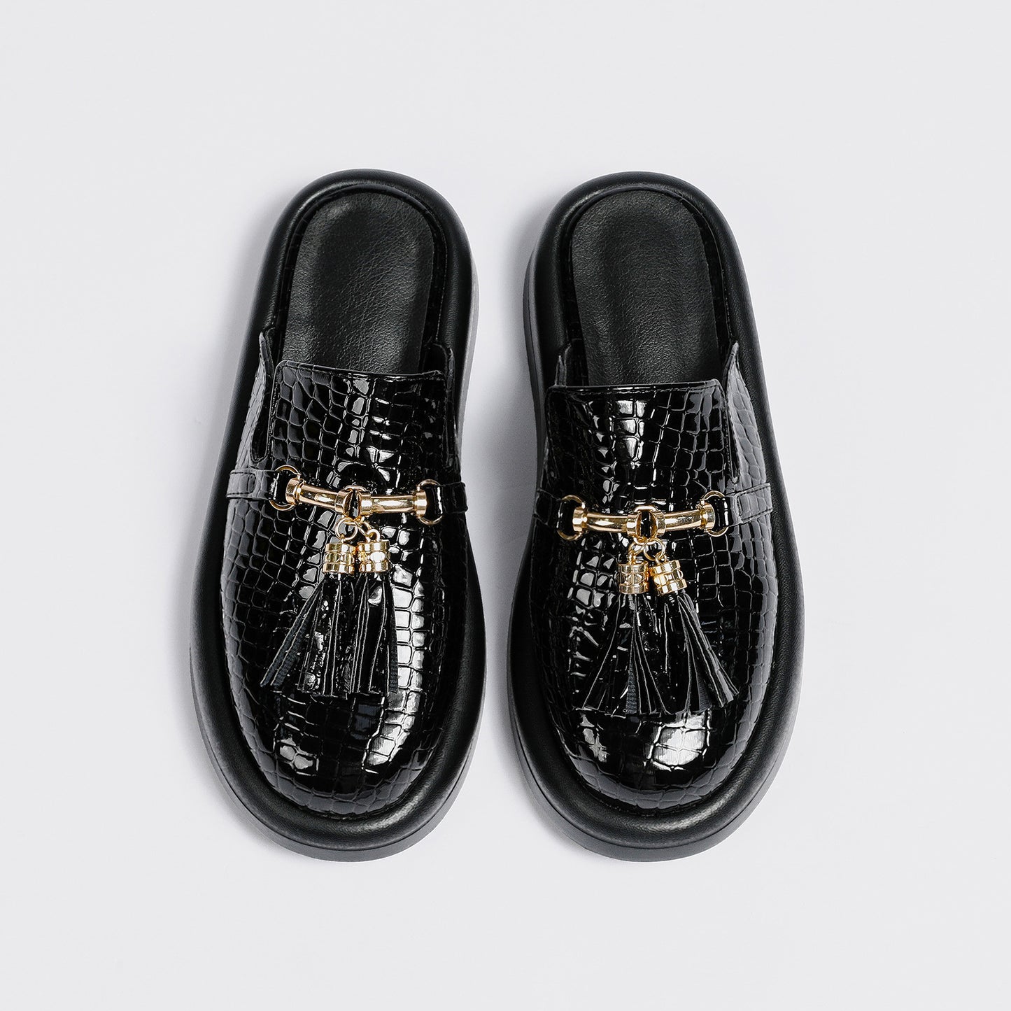 Thick Bottom Metal Buckle Muller Half Slippers Spring Autumn plus Size Stone Pattern Sandals Women