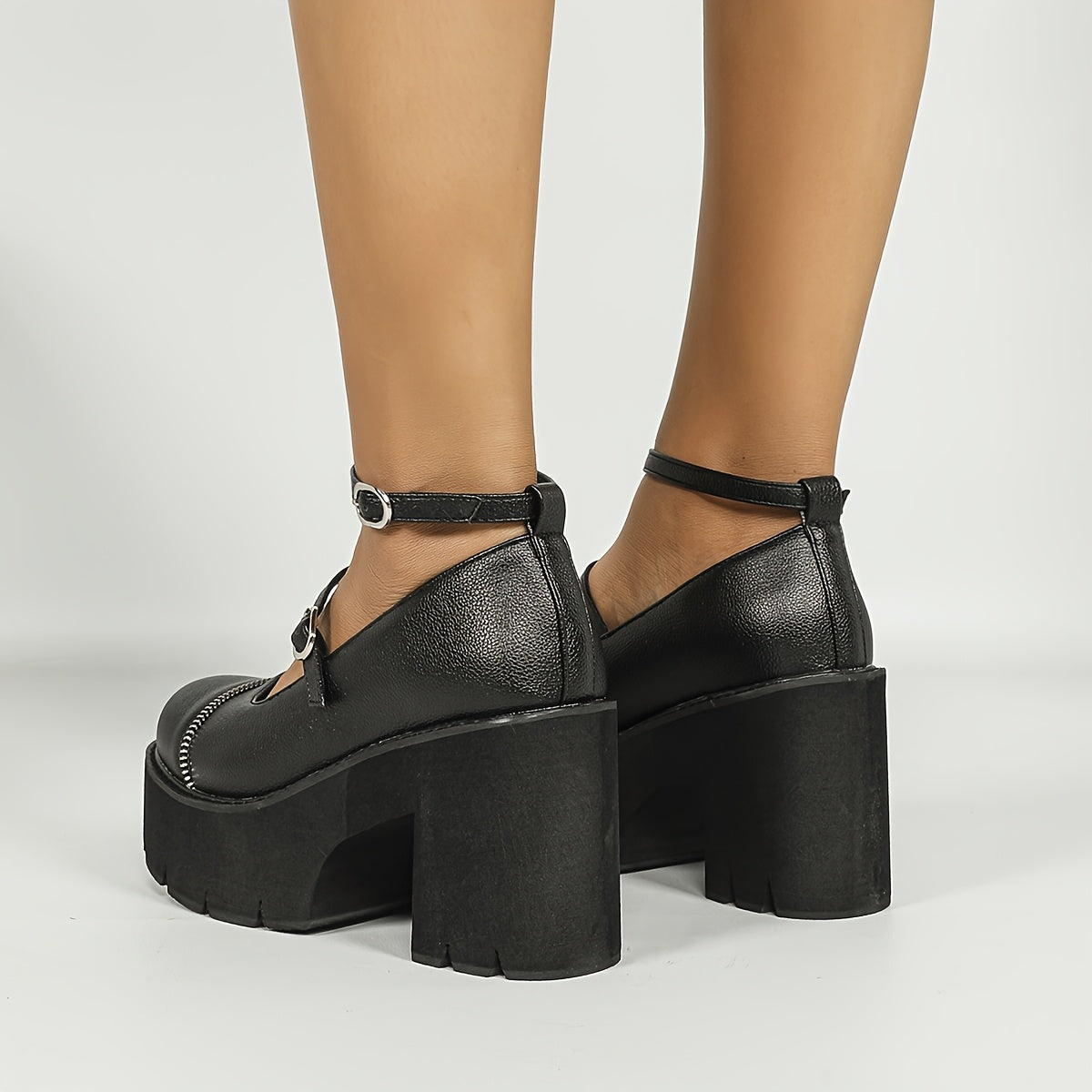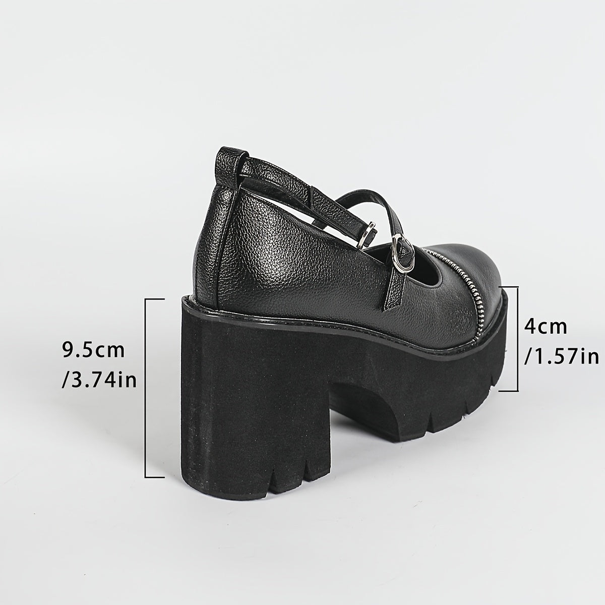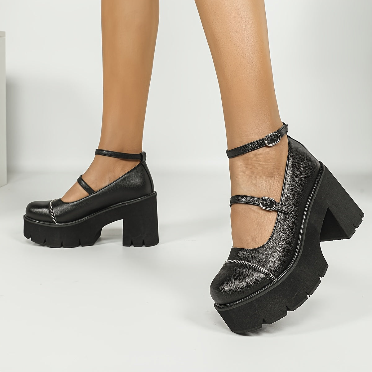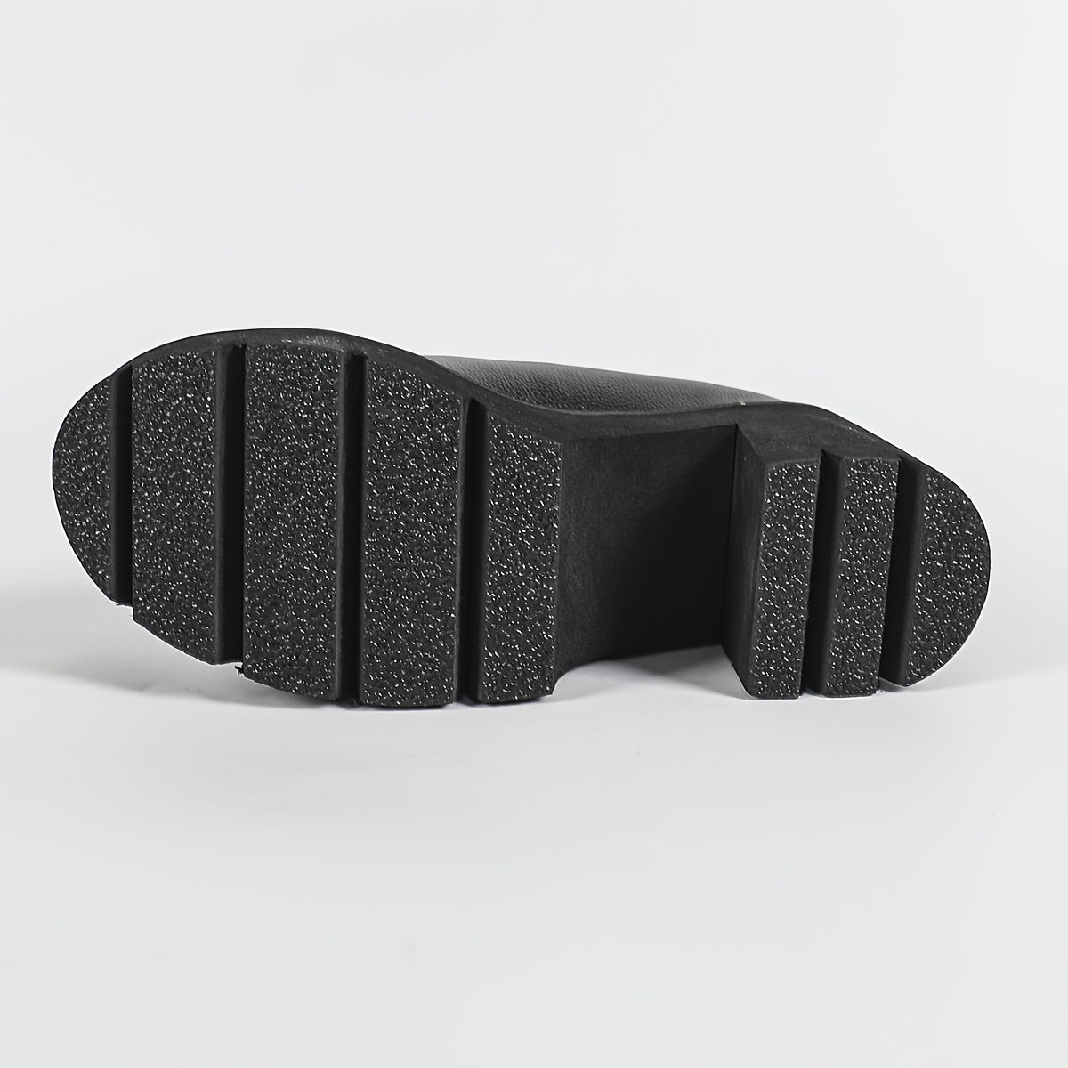 [Thick Sole Faux Cover Pumps] Stylish High Heels with Solid Color, Comfortable Non-Slip, Round Toe, Thick Sole, Faux Cover Upper, Rubber Outsole, Autumn Winter Pumps