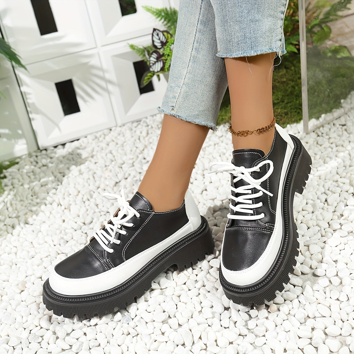 [Thick-Soled Faux Leather Shoes] 2025 New Style Thick-Soled Faux Leather Women's Fashionable Versatile Shoes