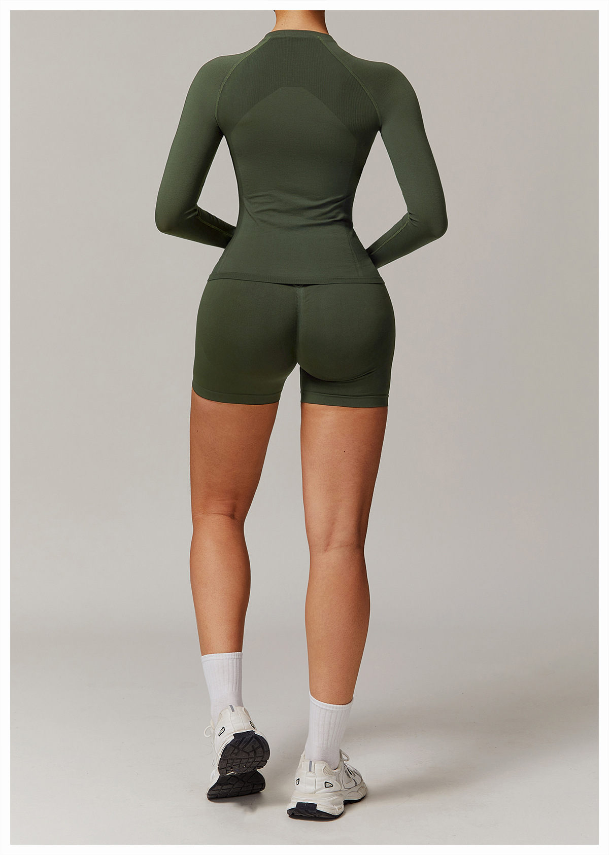 Threaded Tight Seamless Long Sleeve Yoga T shirt Quick Drying Workout Clothes Women Running Sport Long Sleeve Top