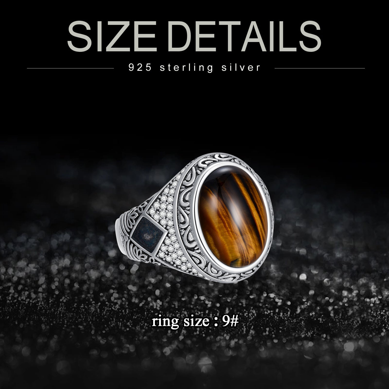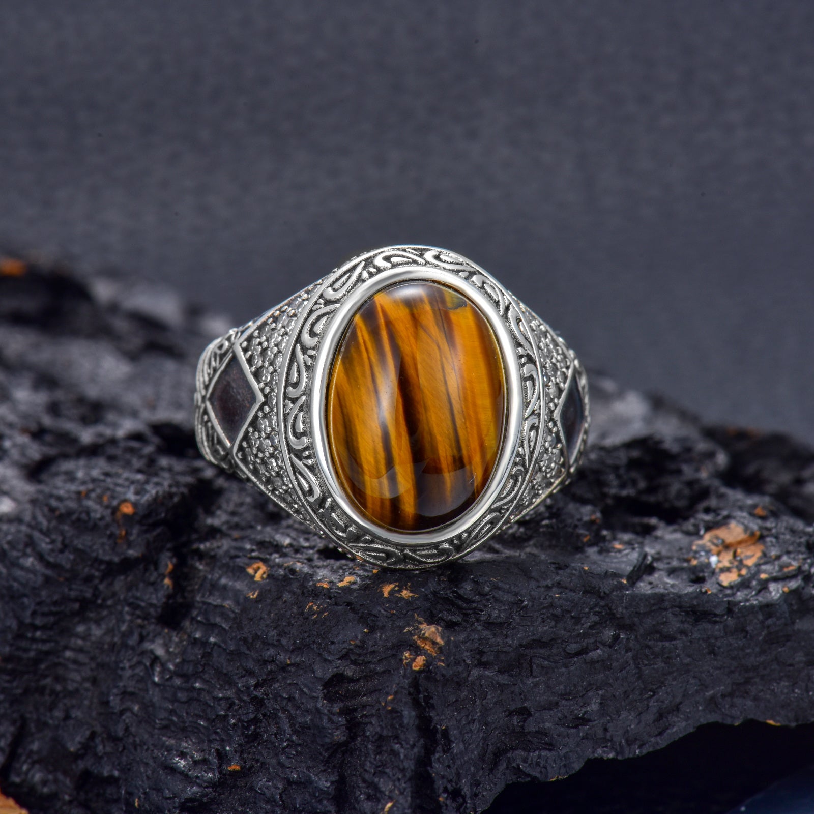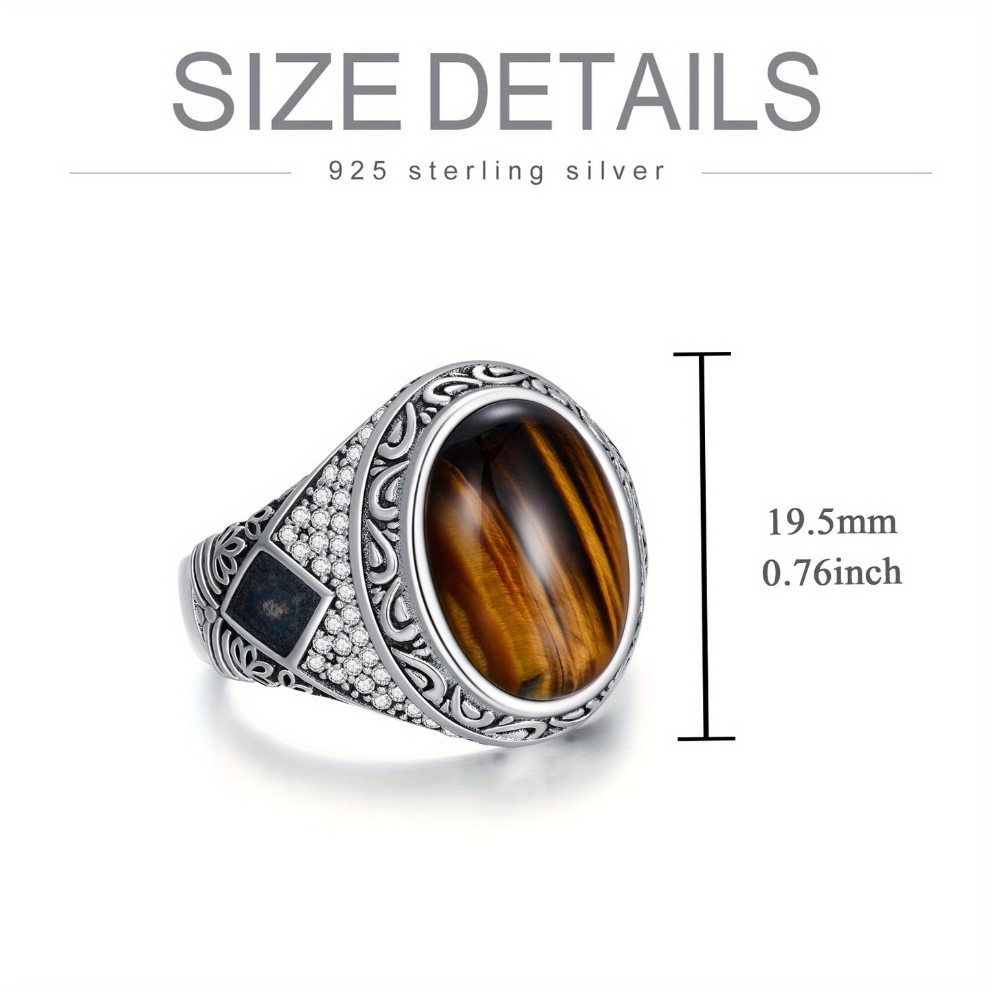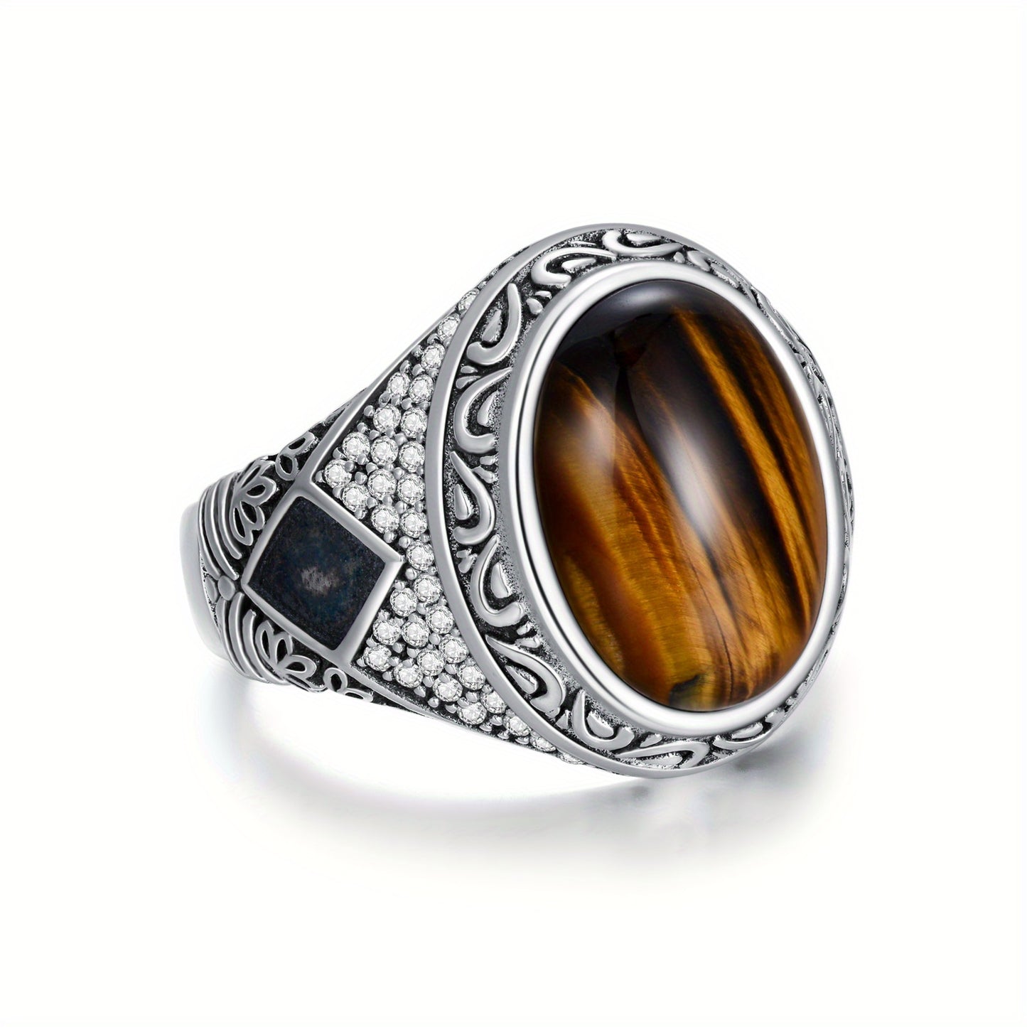 Tiger Eye Ring for Men Sterling 925 Silver Plated Vintage Retro Ring for Men