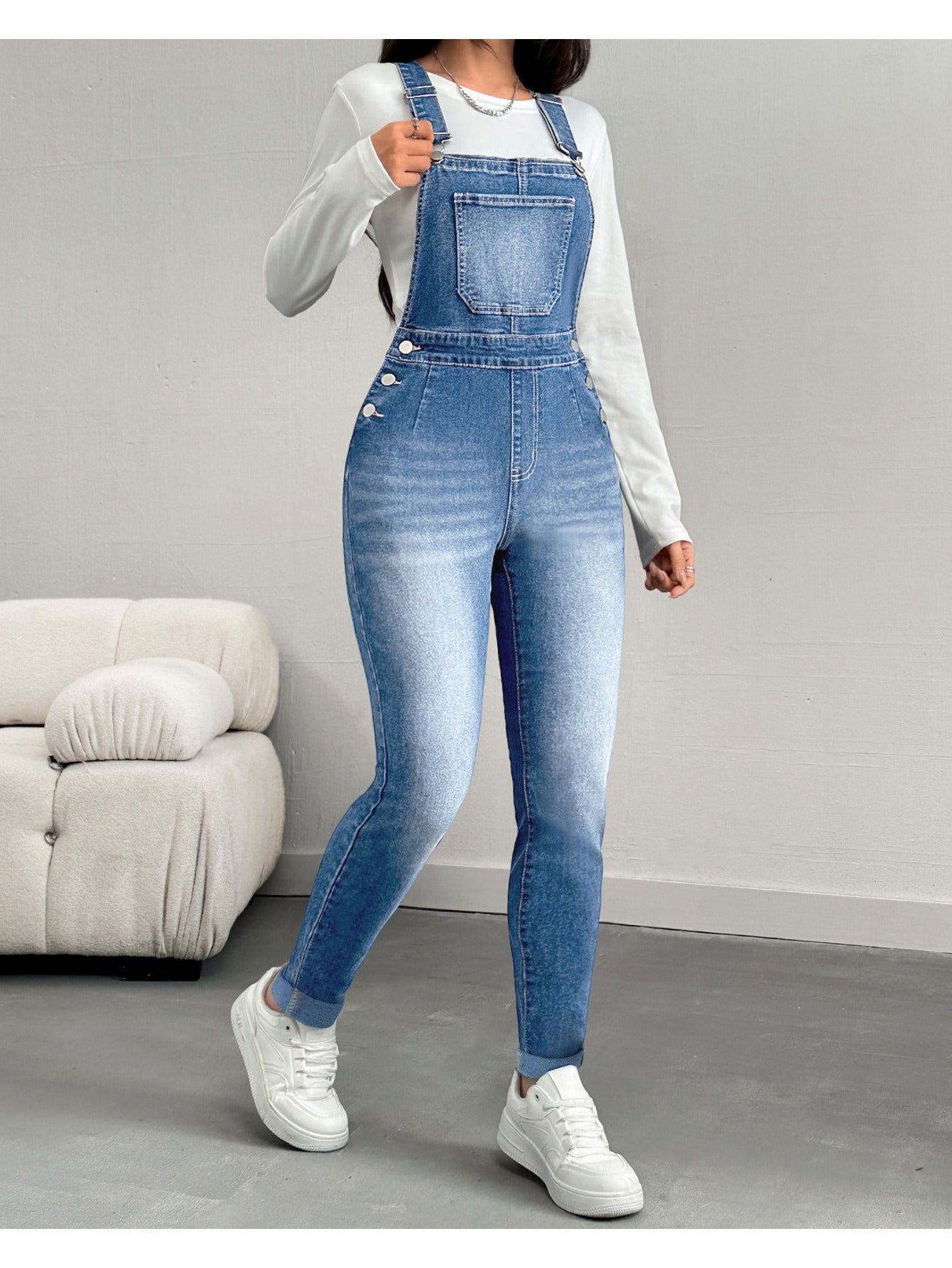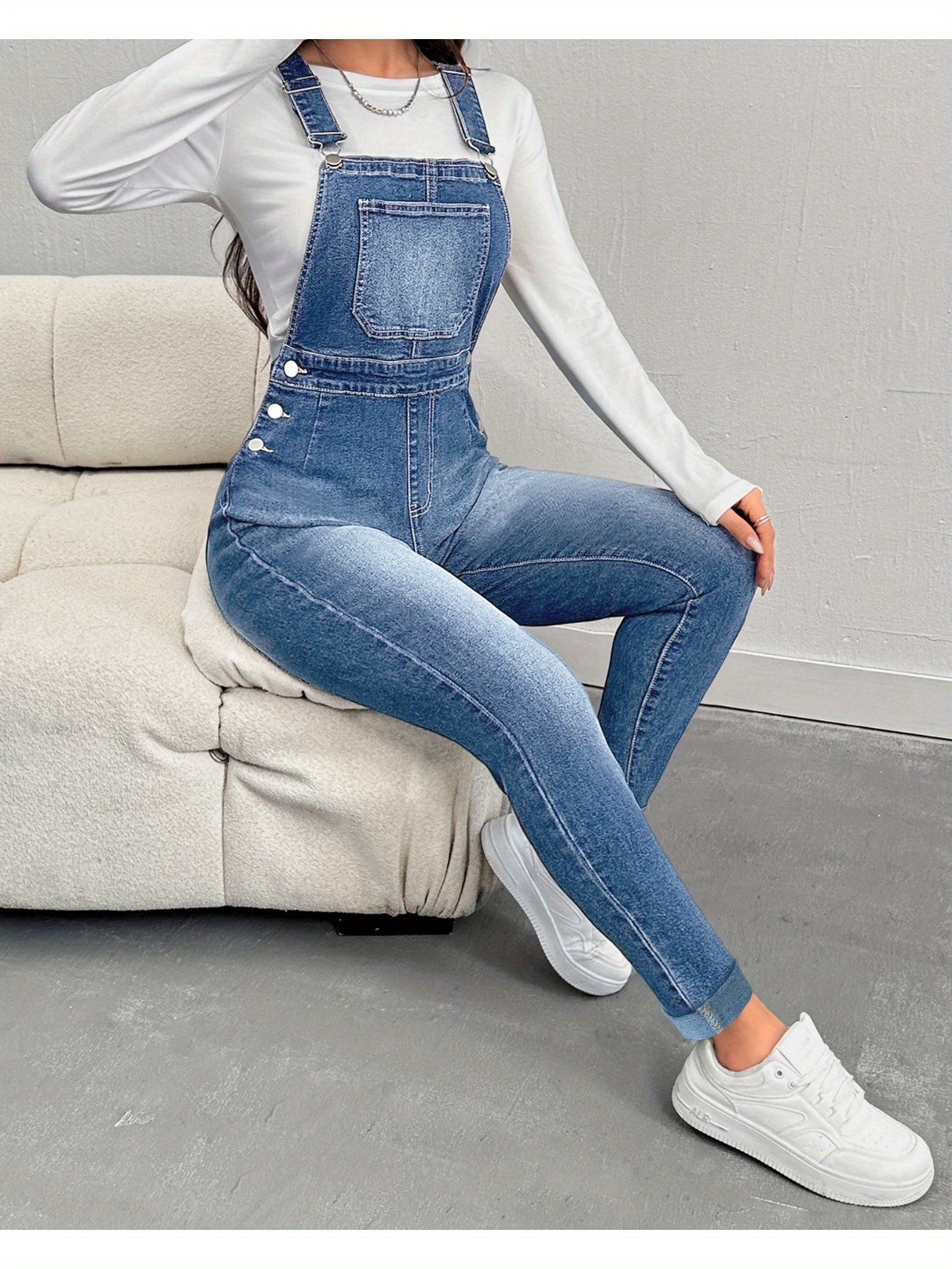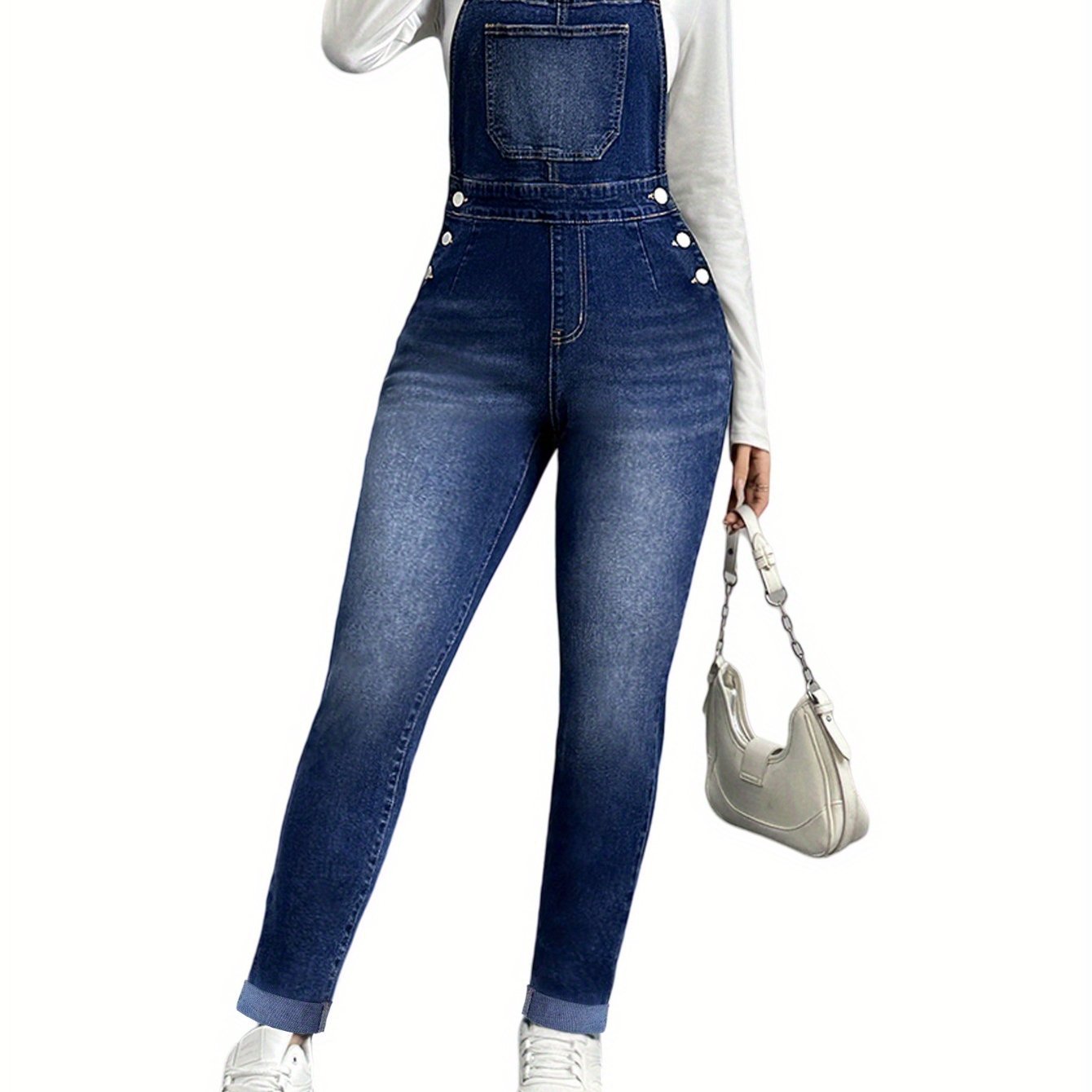 Tight Overalls for Women Classic Adjustable Straps Stretchy Denim Overalls Jeans Pants Skinny Tapered Jeans Overalls