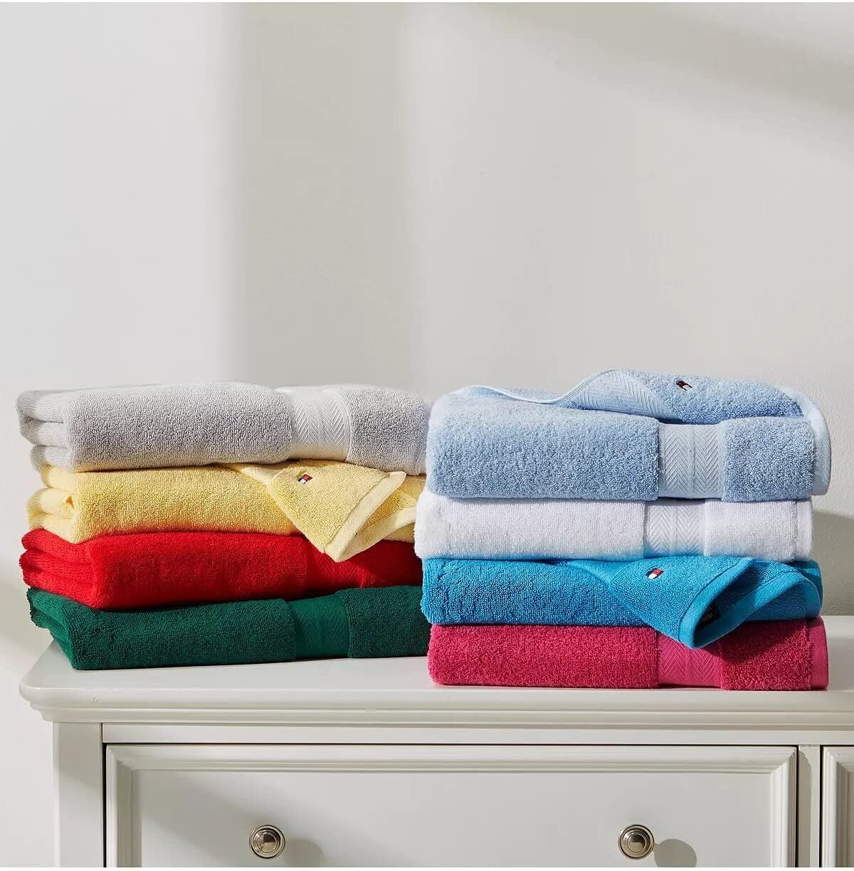 Tommy hilfiger is the purveyor of classic, American cool Style since 1985, delivering modern twist on tradition for the entire family. Woven with high quality 100% cotton that makes the Bath towels absorbent, soft, and fluffy. These towels fluff up after the first wash, which allows you to feel spa grandeur in the comfort of your own home. The double-stitched hem and natural weave guarantee durability and strength.