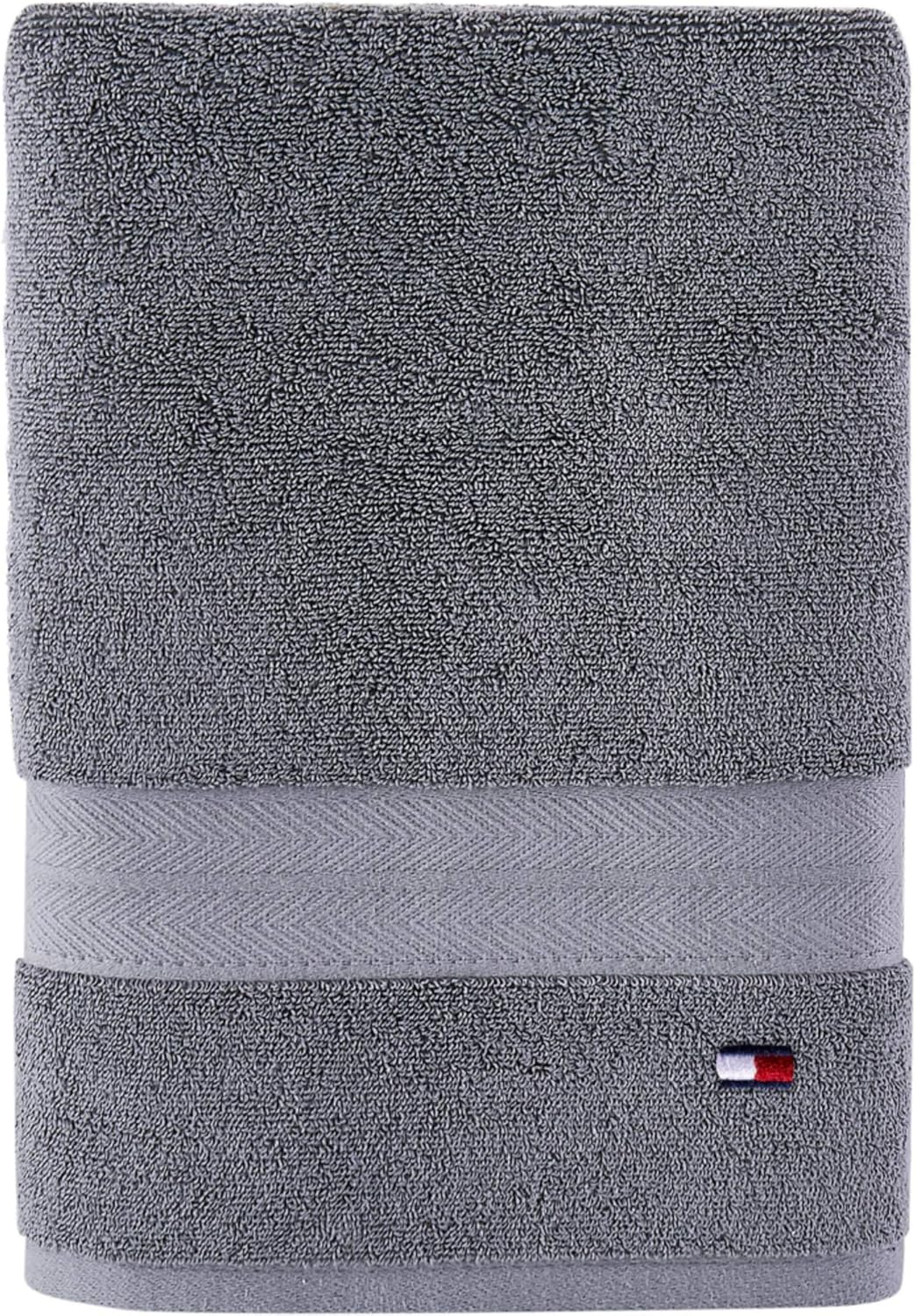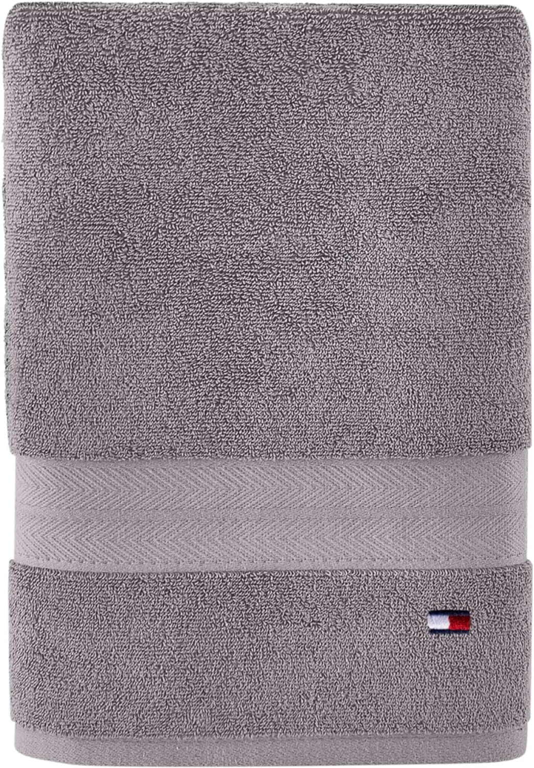 Tommy Hilfiger Modern American Solid Bath Towel, 30 X 54 Inches, 100% Cotton 574 GSM (Steel Grey)