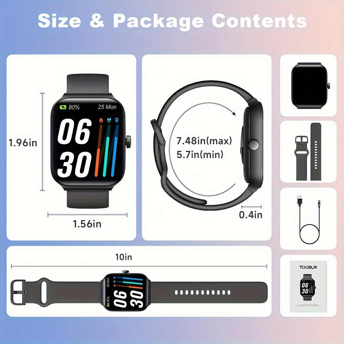 TOOBUR Smartwatch ( Answer/Make Call ), 1.95" Smartwatch For Women Men, 100+ Sport Modes, Fitness Activity Tracker Pedometer, Smart Watches For Android, IPhone, Gift For Family