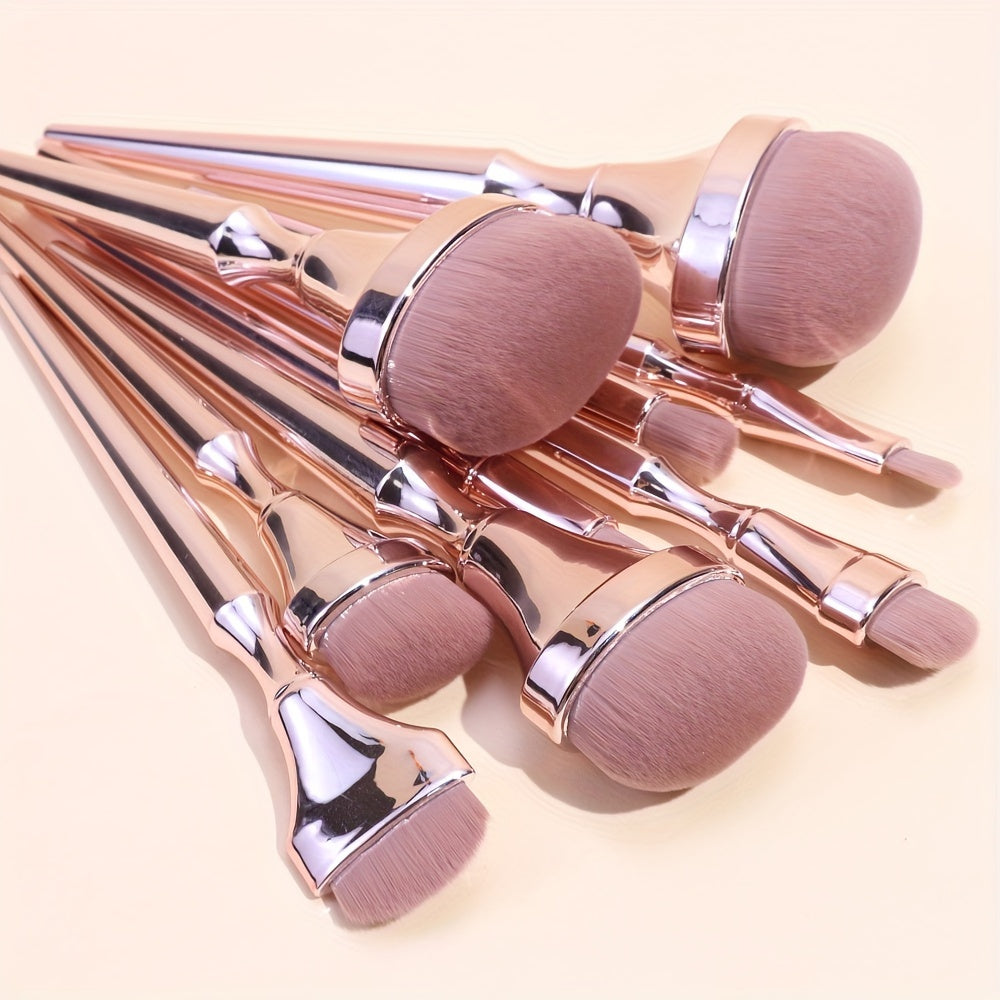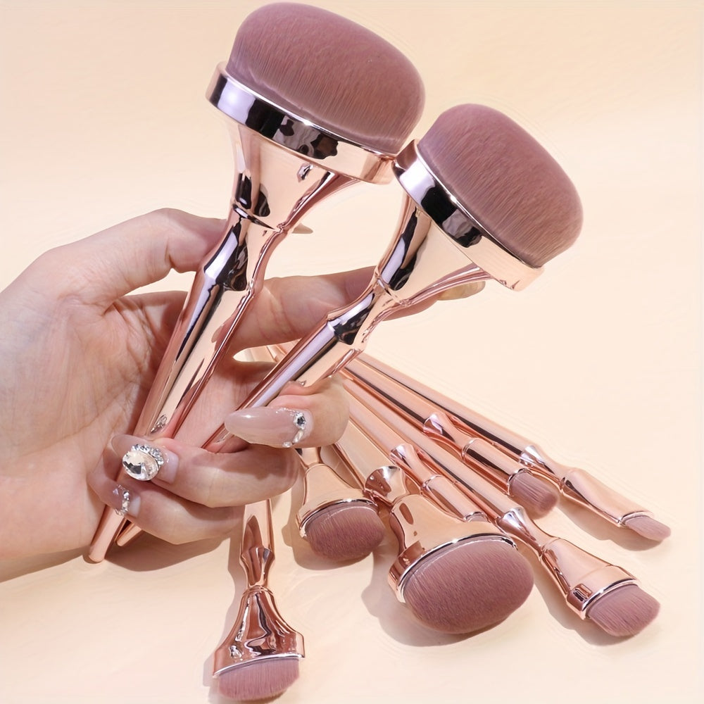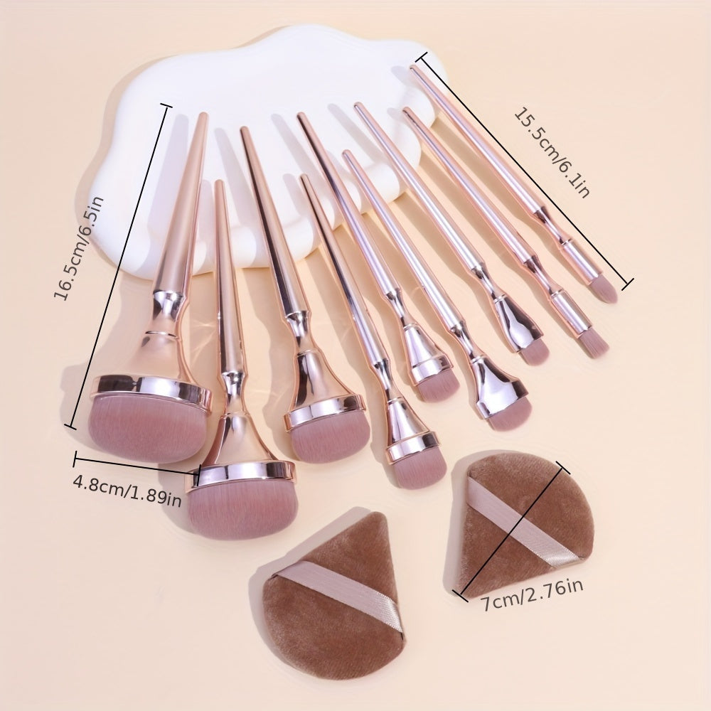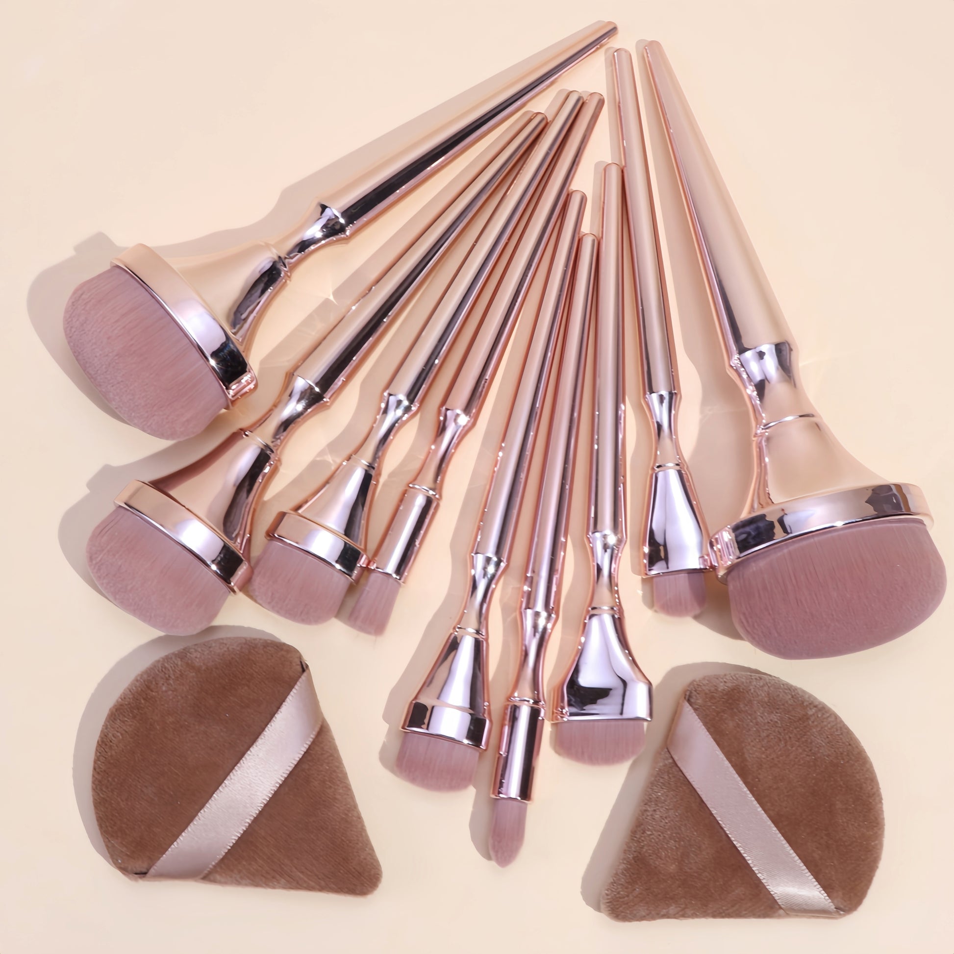 [Toothbrush Type Makeup Brush Set] 9pcs Toothbrush Type Makeup Brush Set - High-end Electroplated Handle Beauty Tools - Complete Makeup Brush Loose Powder Brush Blush Brush Eyeshadow Brush + 2 Powder Puffs