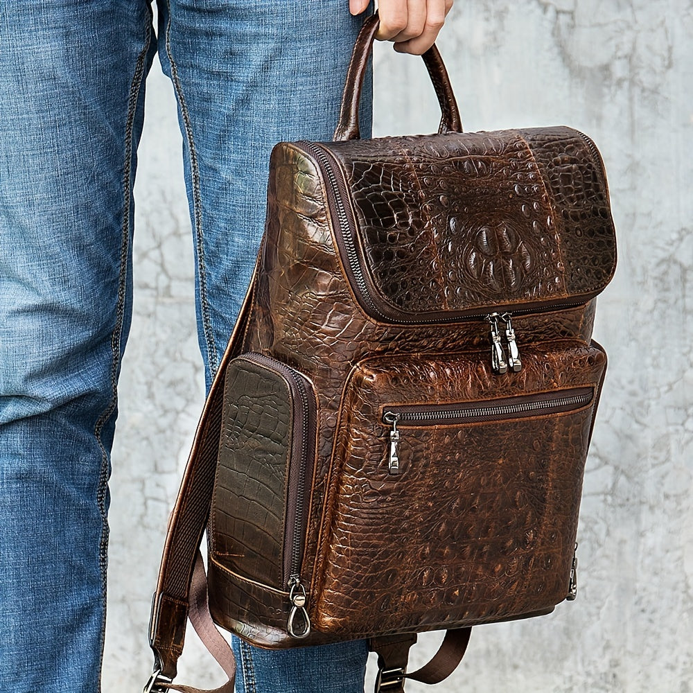Top Layer Cowhide Backpack Bag, Men's Large Capacity Business Casual Outdoor Genuine Leather Computer Travel Bag