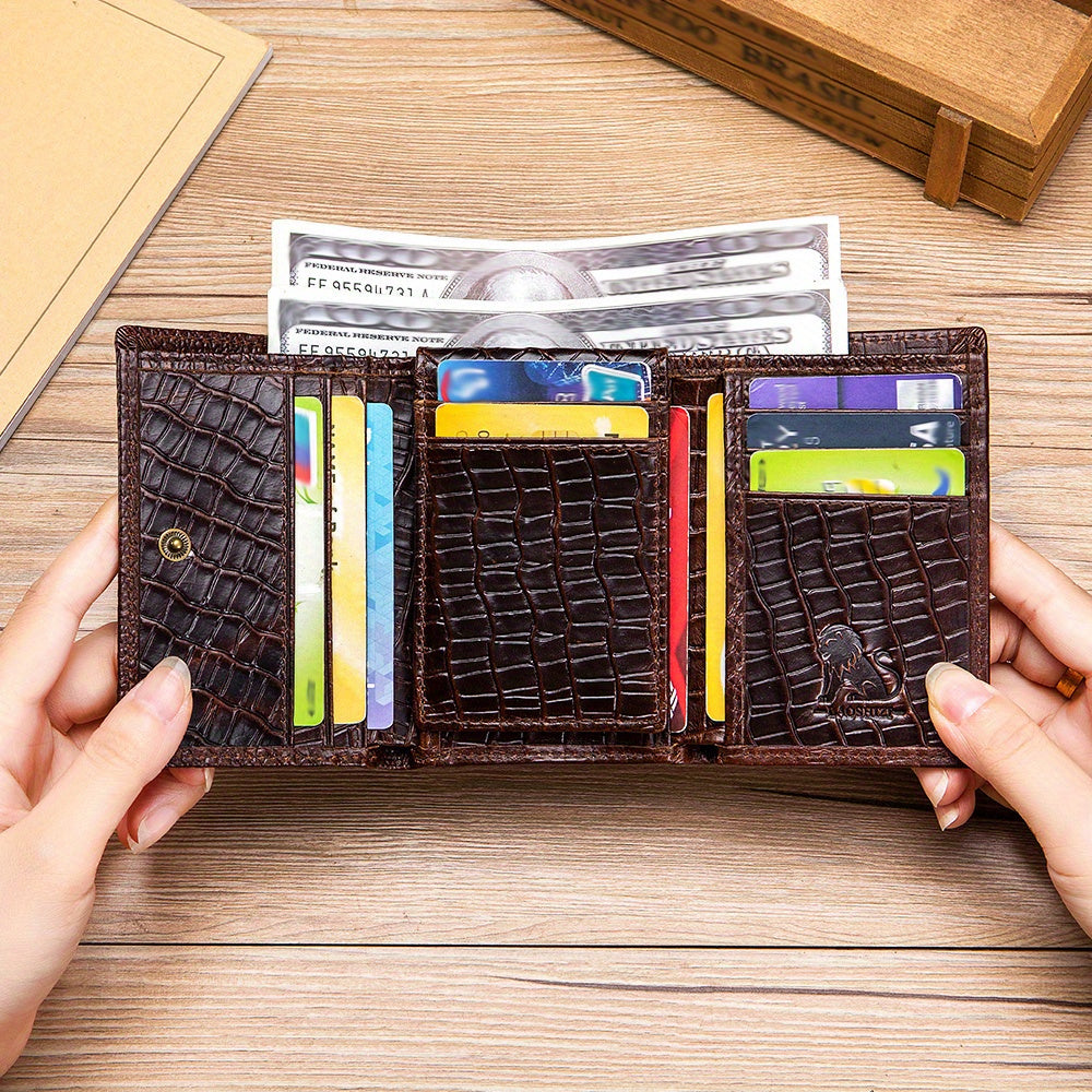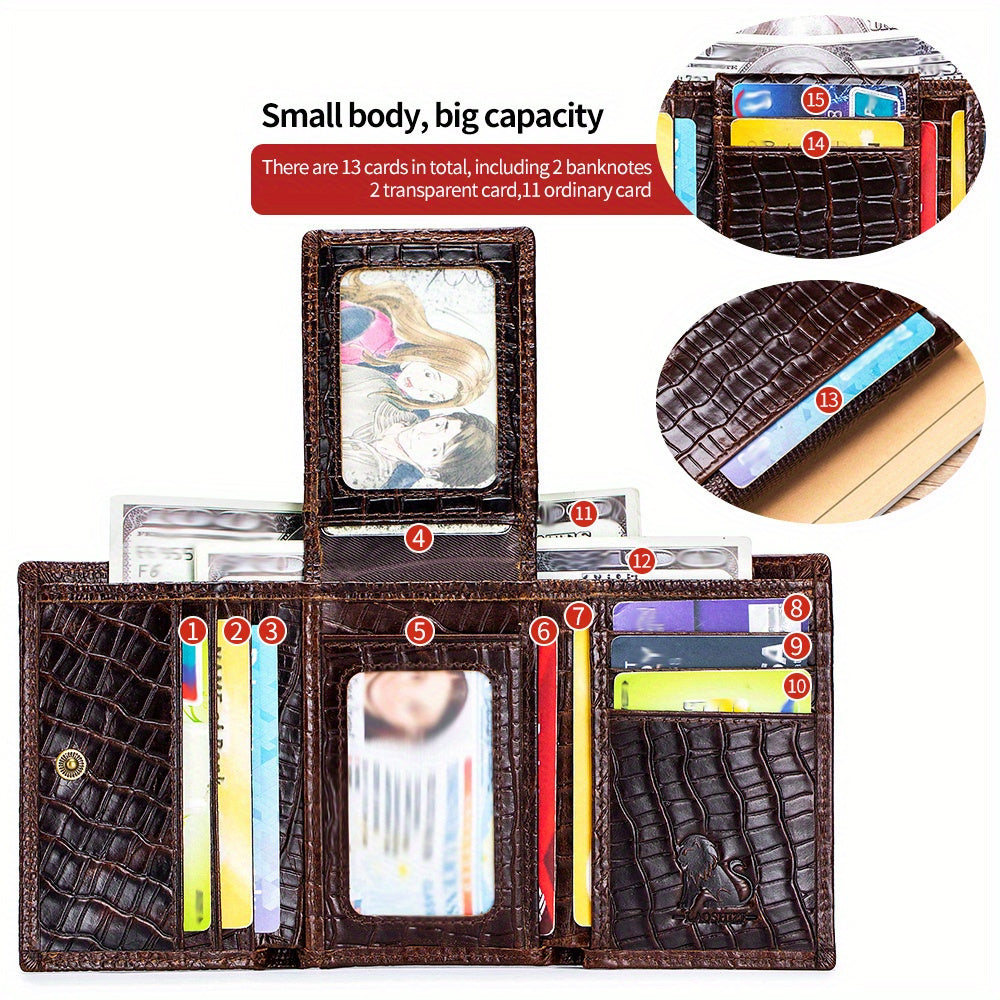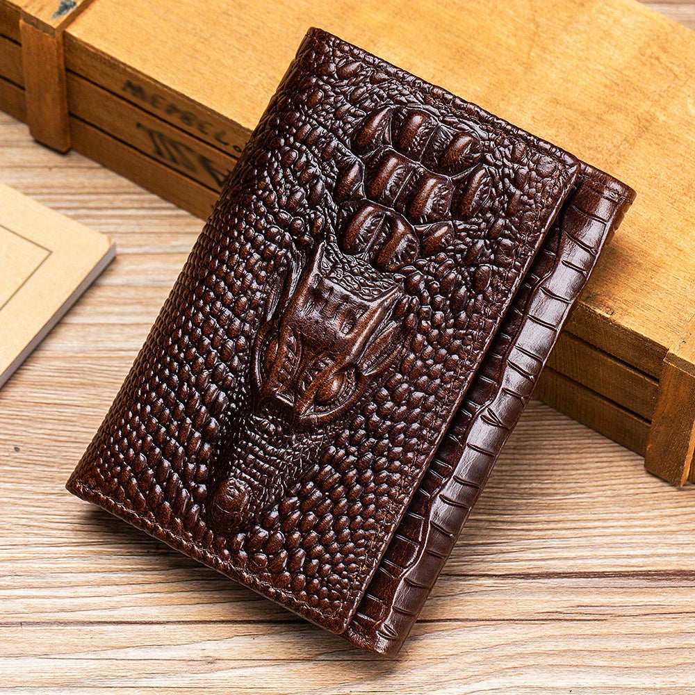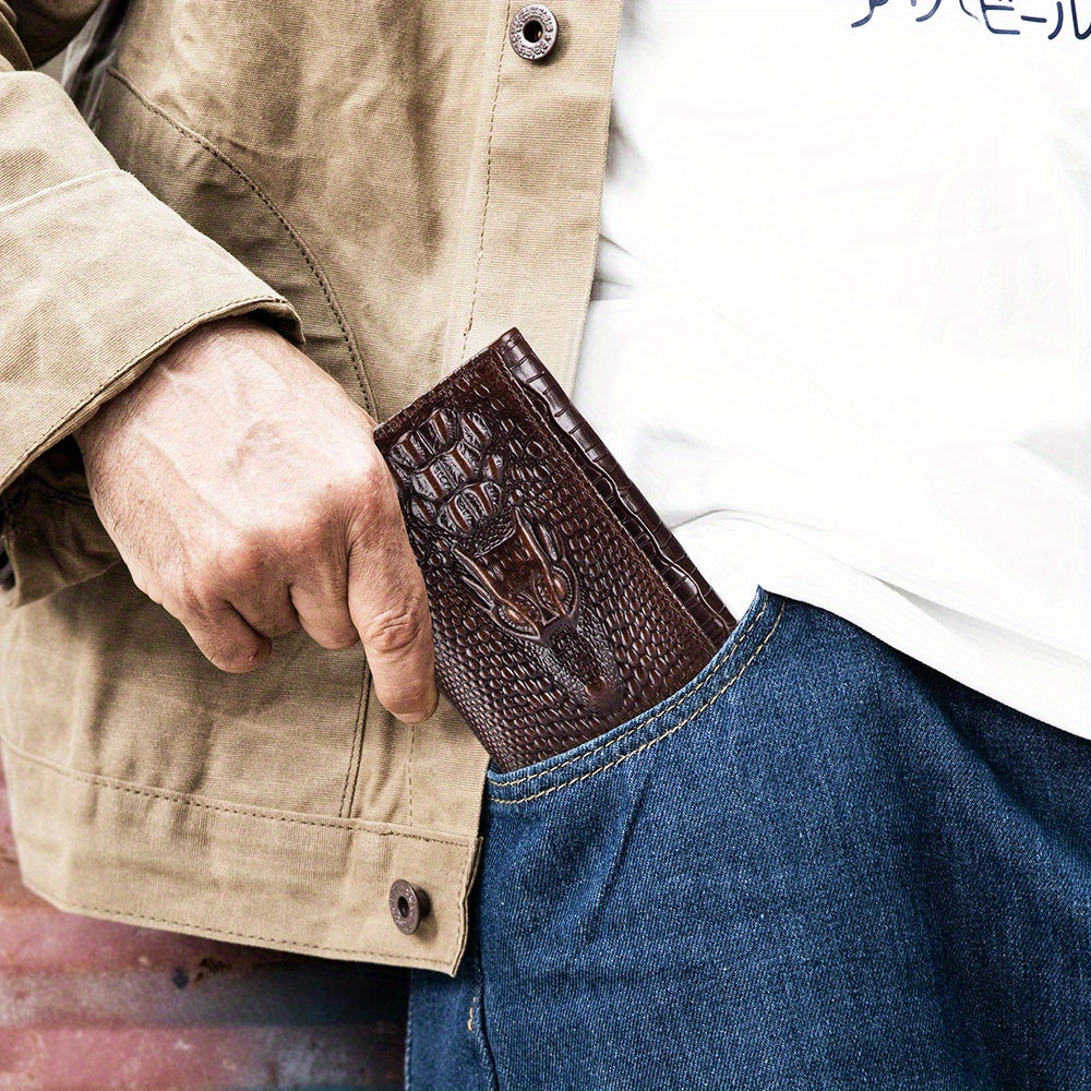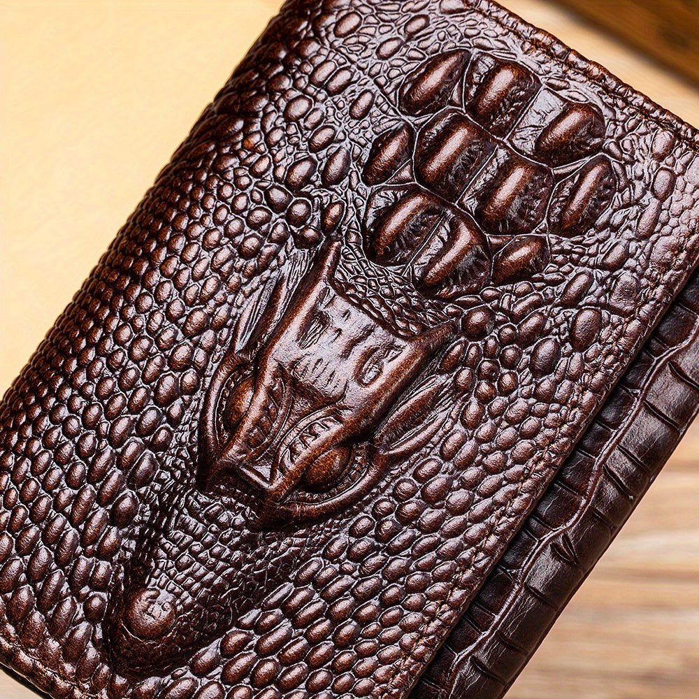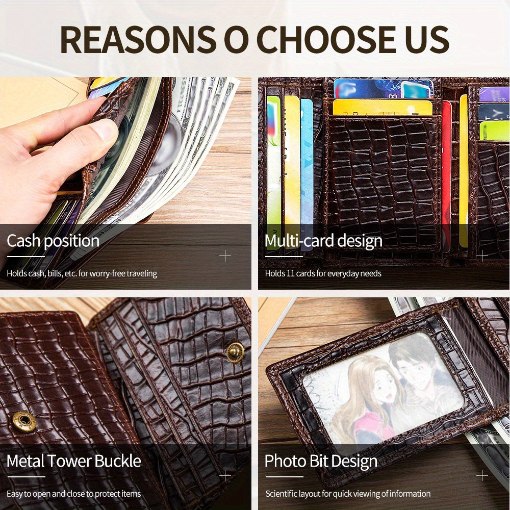 Top layer cowhide material, crocodile embossed only for style design, top layer cowhide Men's wallet, short leather multi-card bag, cowhide Men's Anti theft brush wallet, crocodile pattern wallet three-fold bag, suitable for Valentine's Day, Father's Day,