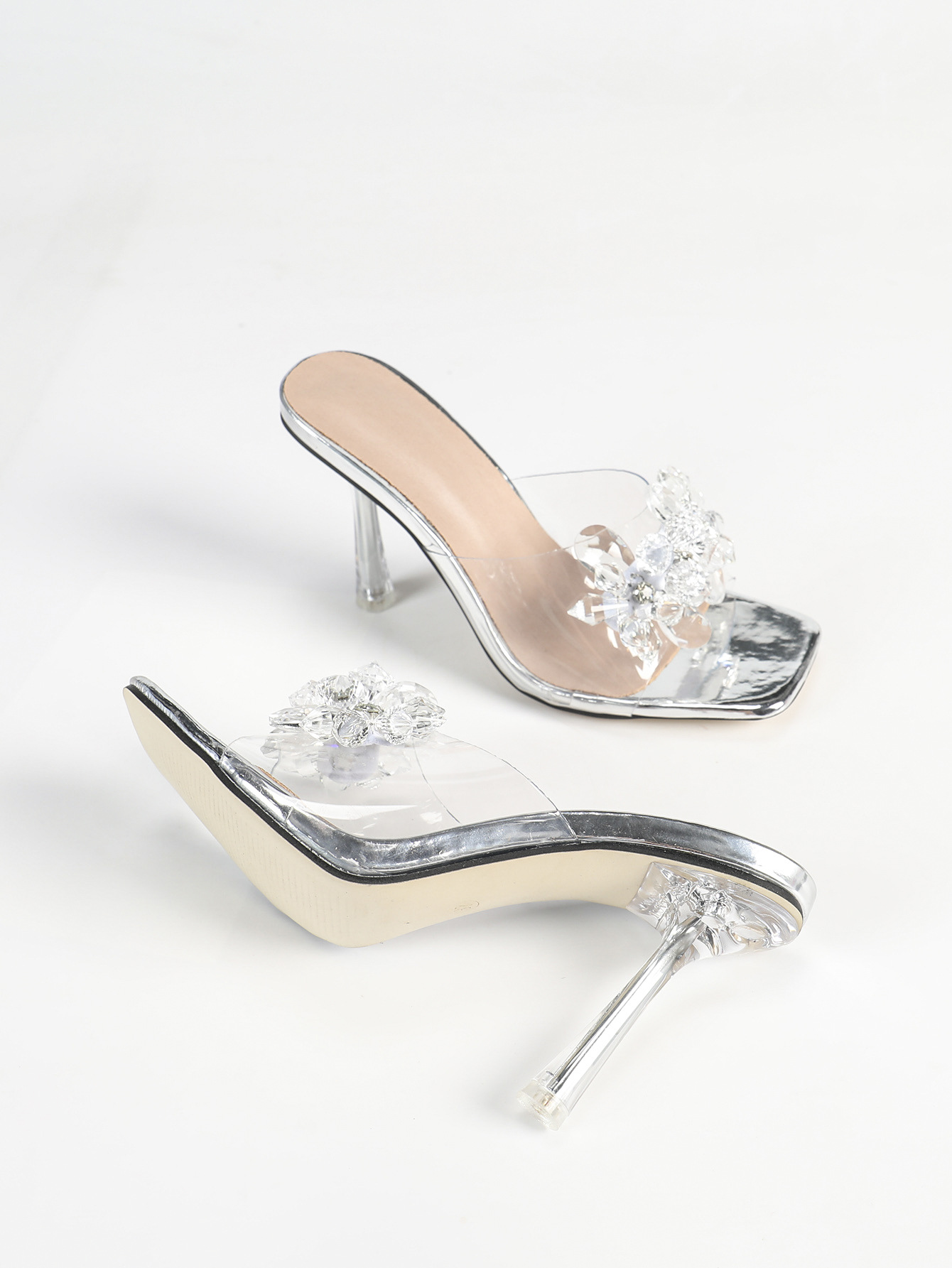 Transparent Ankle Strap Sexy Open Toe Stiletto Heel Slippers Rhinestone Outdoor Cocktail Wine Glass Heel