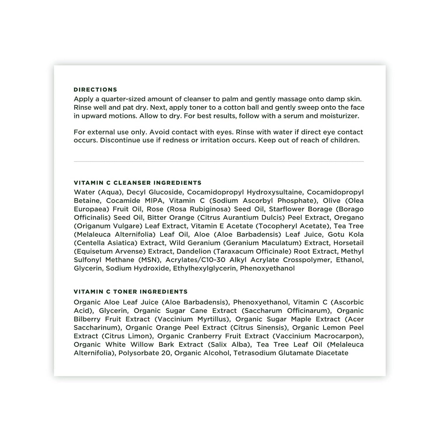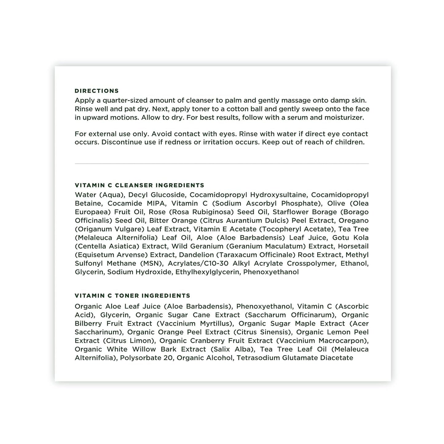 Tree of Life Beauty Vitamin C Brightening Duo, Facial Toner for Minimizing Pores & Facial Cleanser for Gentle Deep Cleaning with Organic Aloe, Clean Dermatologist-Tested Skin Care, 2 X 4 Fl Oz