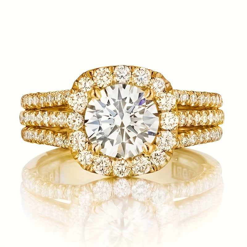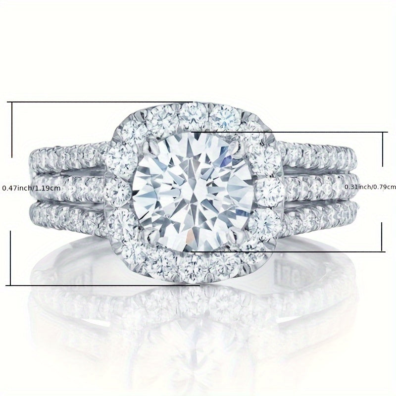 Trendy 4 Prong Setting Synthetic Zirconia Side Micro Pave 3 Row Synthetic Zirconia Rings for Women Engagement/wedding/party Jewelry