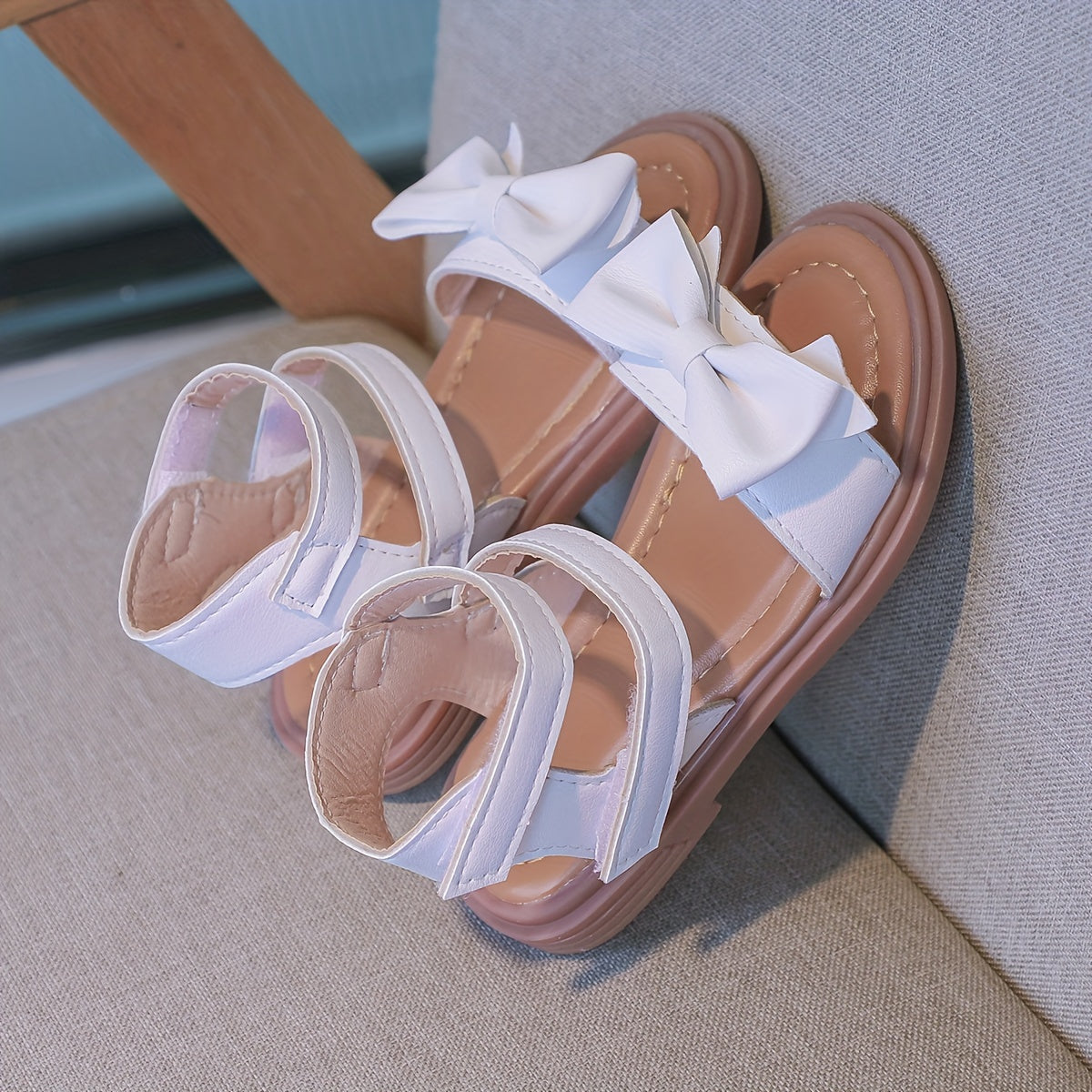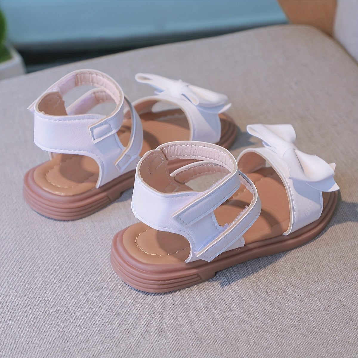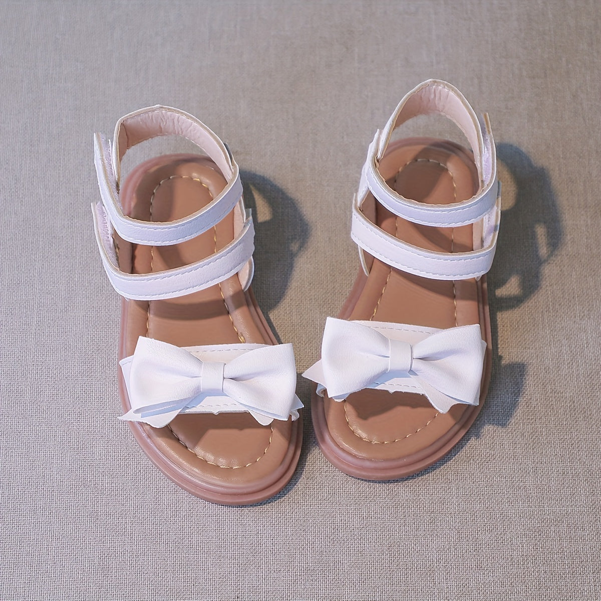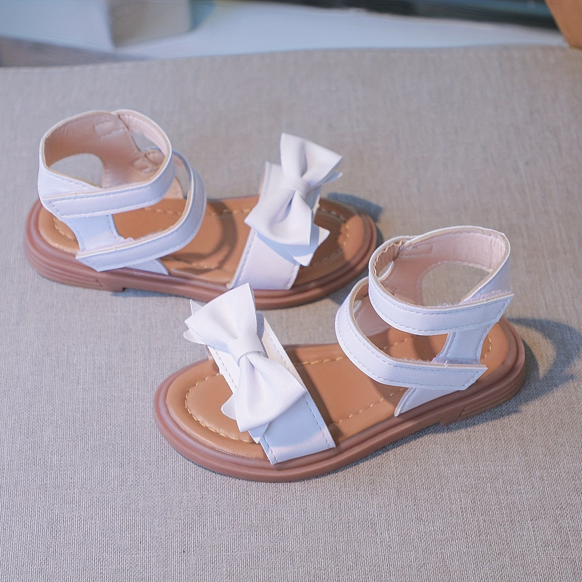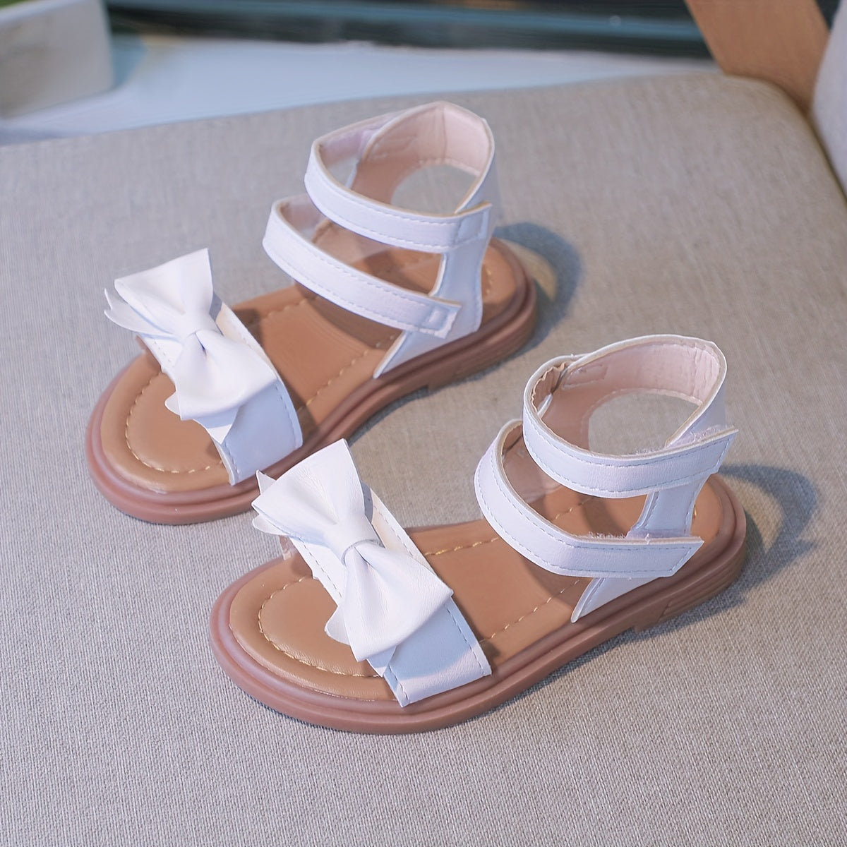 Trendy Cute Bowknot Solid Color Open Toe Sandals For Girls, Breathable Non-slip Sandals For Summer