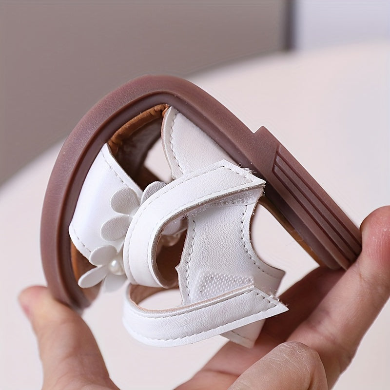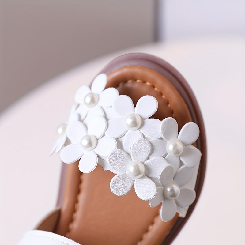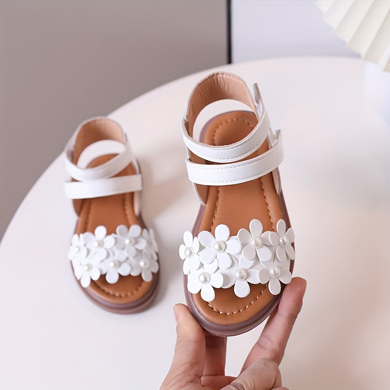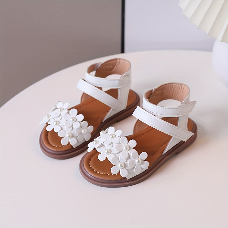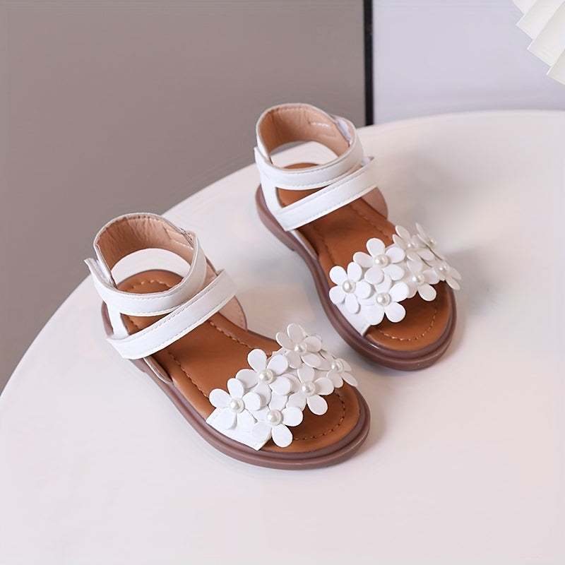 Trendy Cute Flower Solid Color Open Toe Sandals For Girls, Breathable Lightweight Sandals For Summer