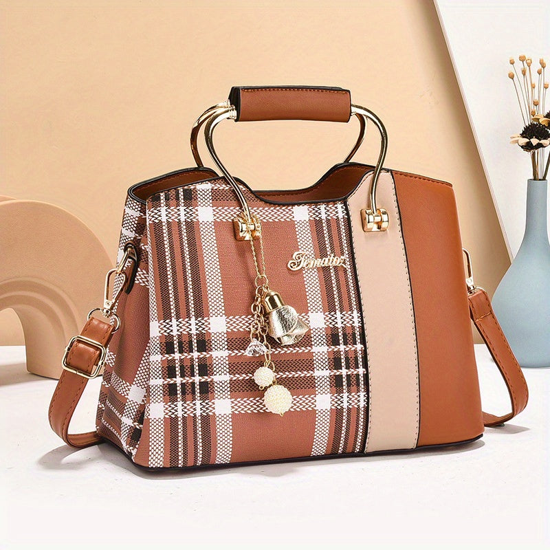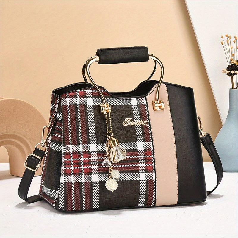 Trendy Large Capacity Women'S Shoulder Bag - Stylish Black & White Checkered Design, Synthetic, Open Top, Machine Washable, Perfect for Everyday Use, Crossbody Purse