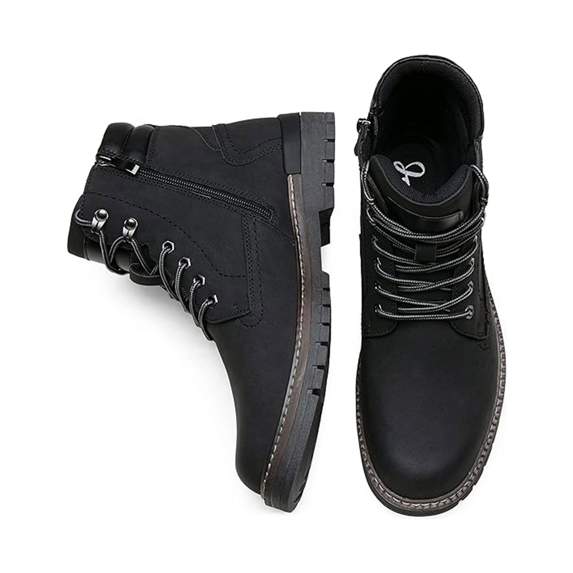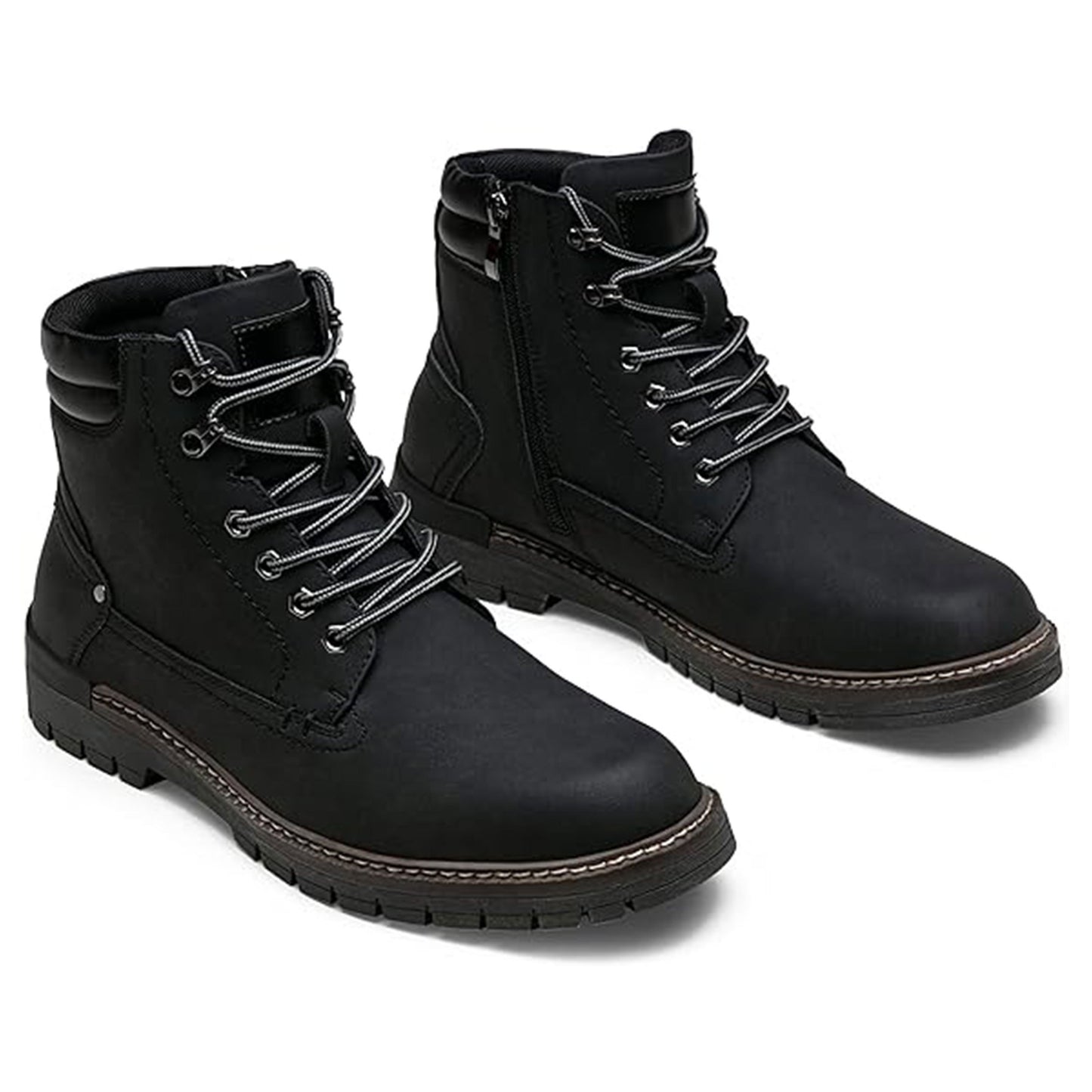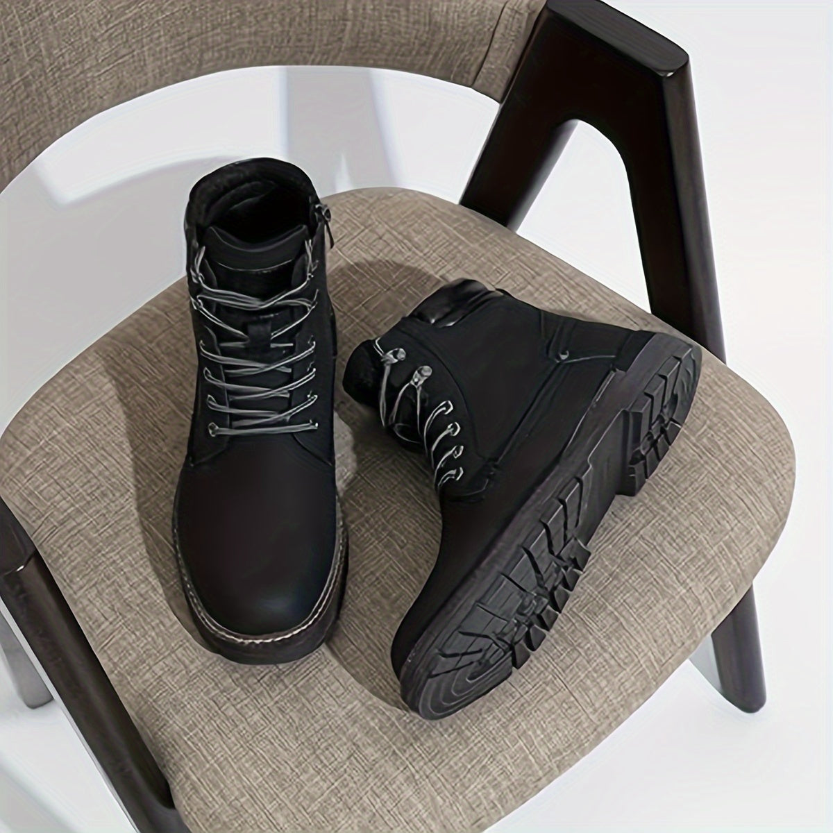 Trendy Men's Solid Color Lace Up Ankle Boots, Chukka Boots With Side Zipper, Casual Outdoor Sports Style Durable Footwear For Hiking Camping