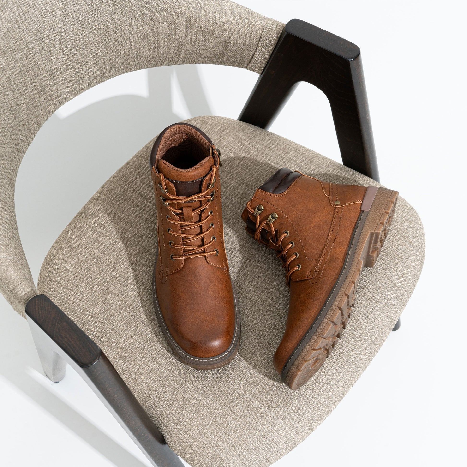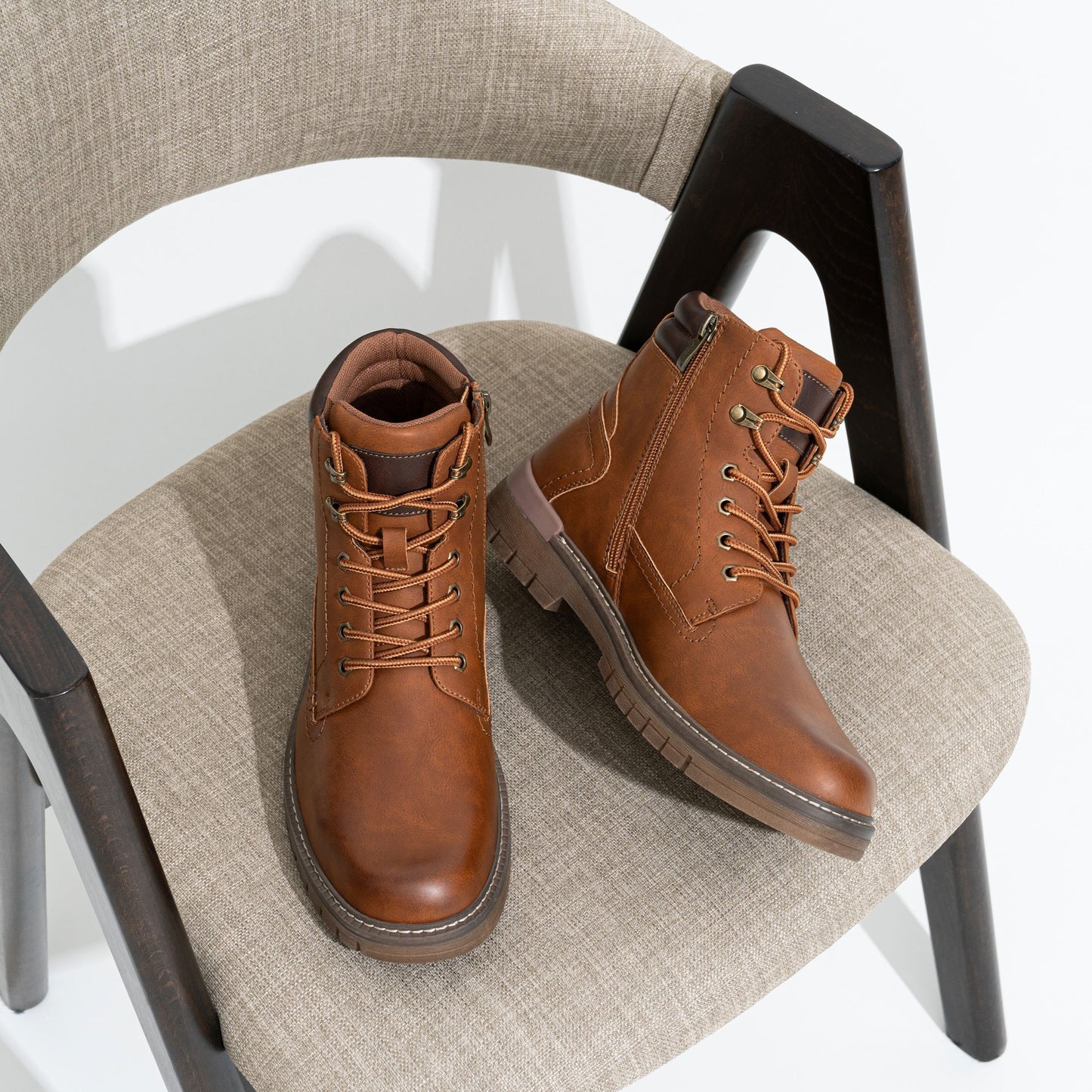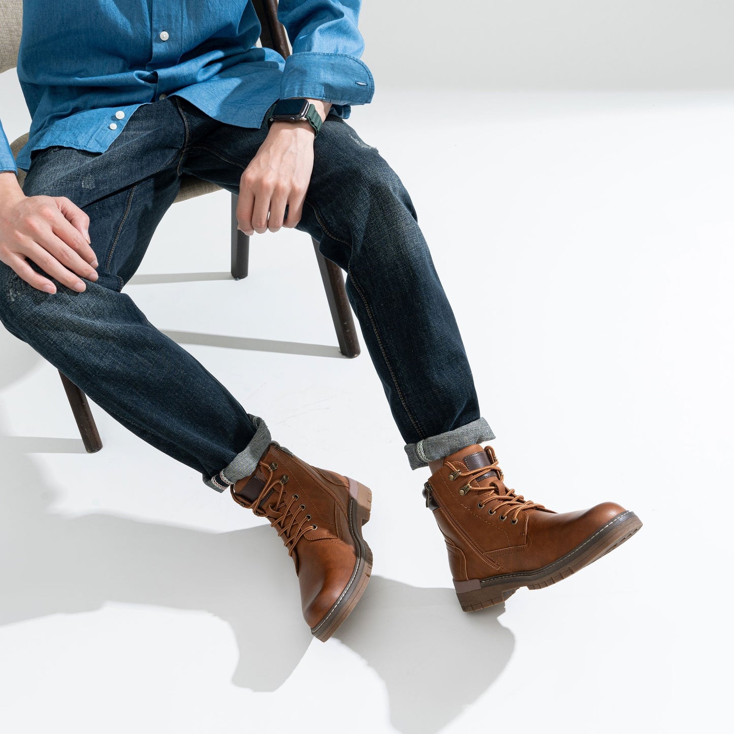 Trendy Men's Solid Color Lace Up Ankle Boots, Chukka Boots With Side Zipper, Casual Outdoor Sports Style Durable Footwear For Hiking Camping