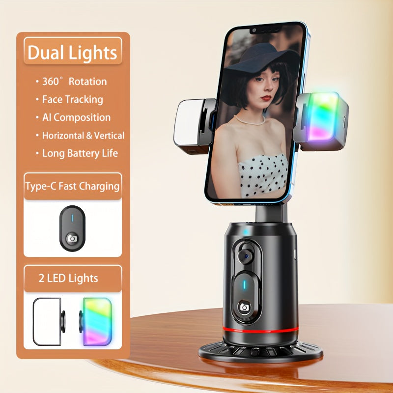 Trépied de suivi automatique du visage - Support de téléphone à rotation 360° sans suivi automatique d'application, support de caméra de téléphone avec télécommande et contrôle gestuel, support de prise de vue intelligent rechargeable pour enregistrement