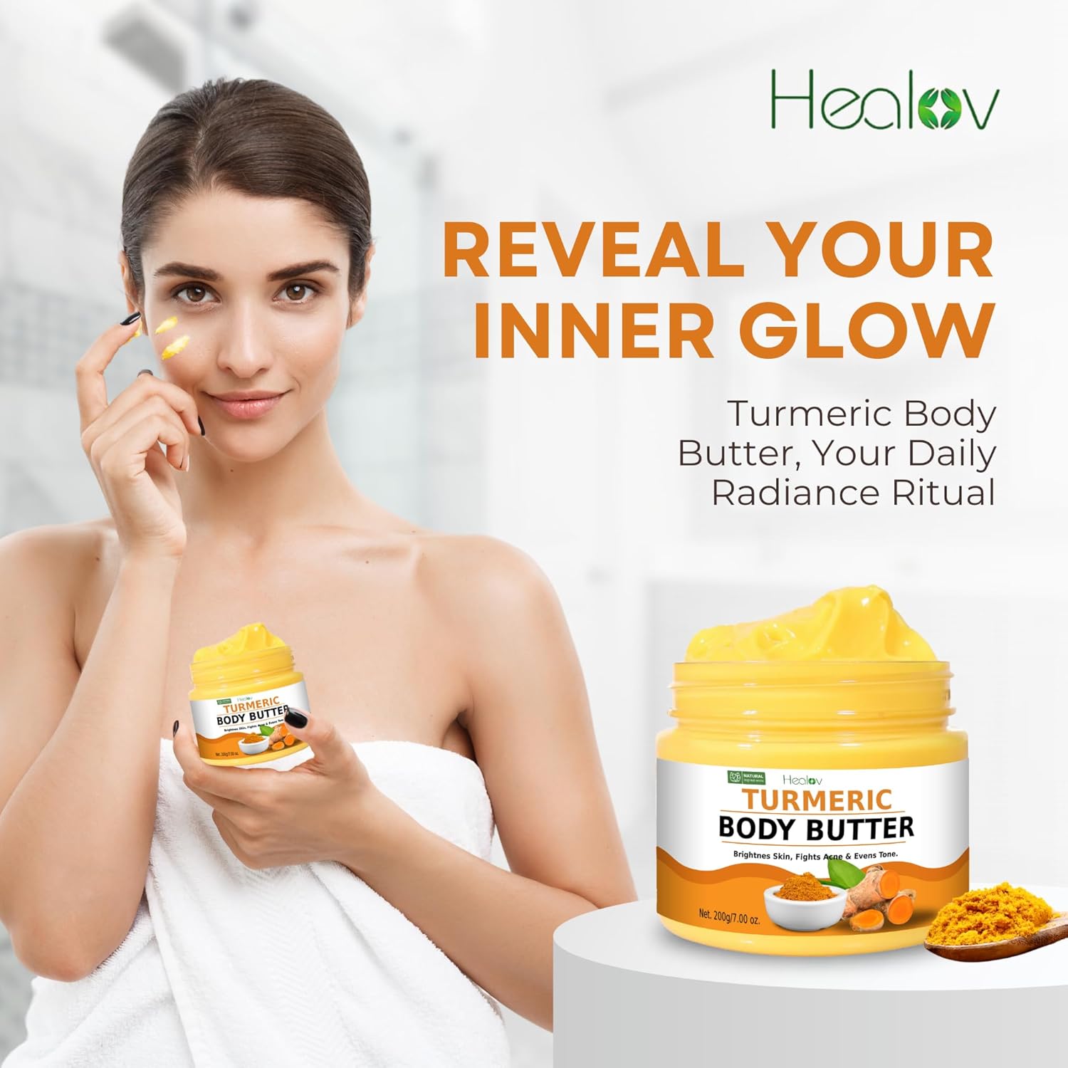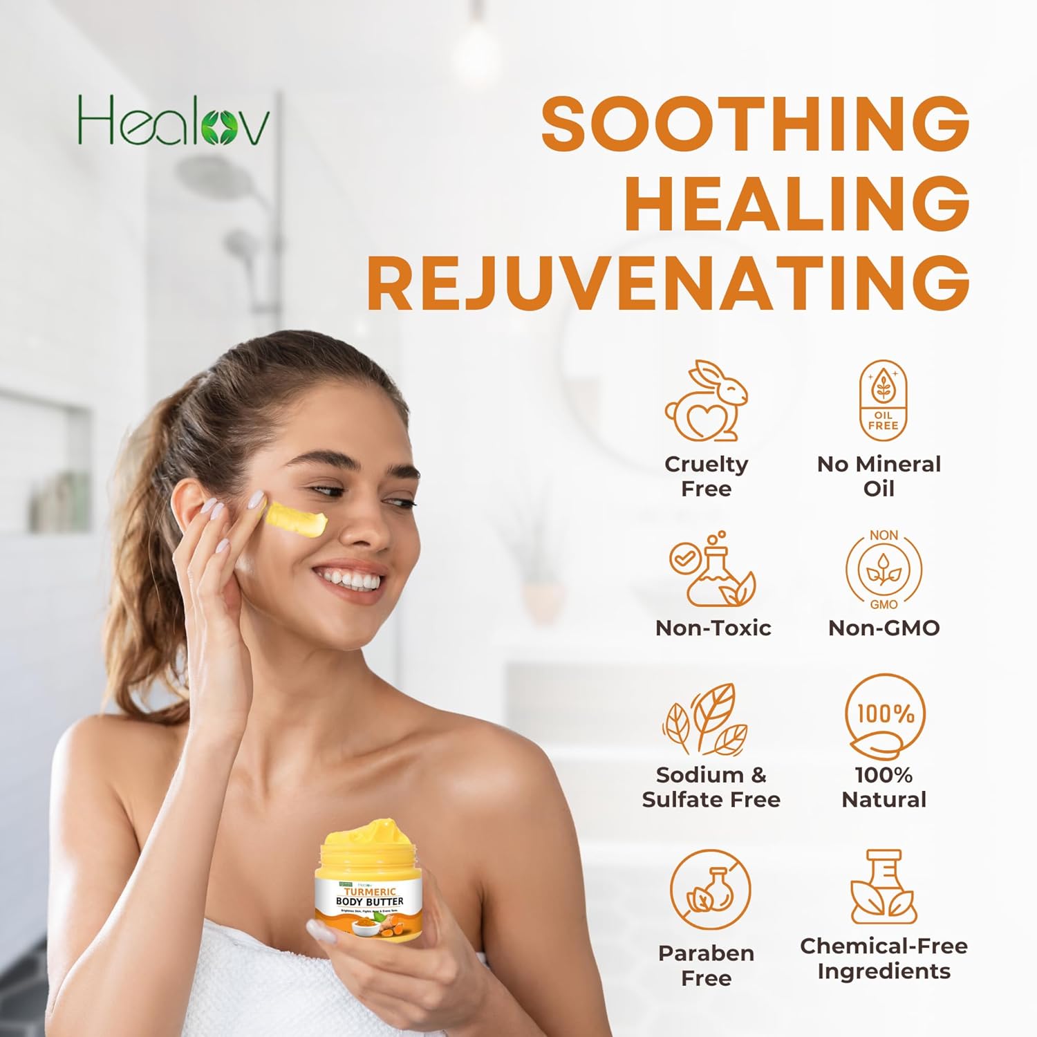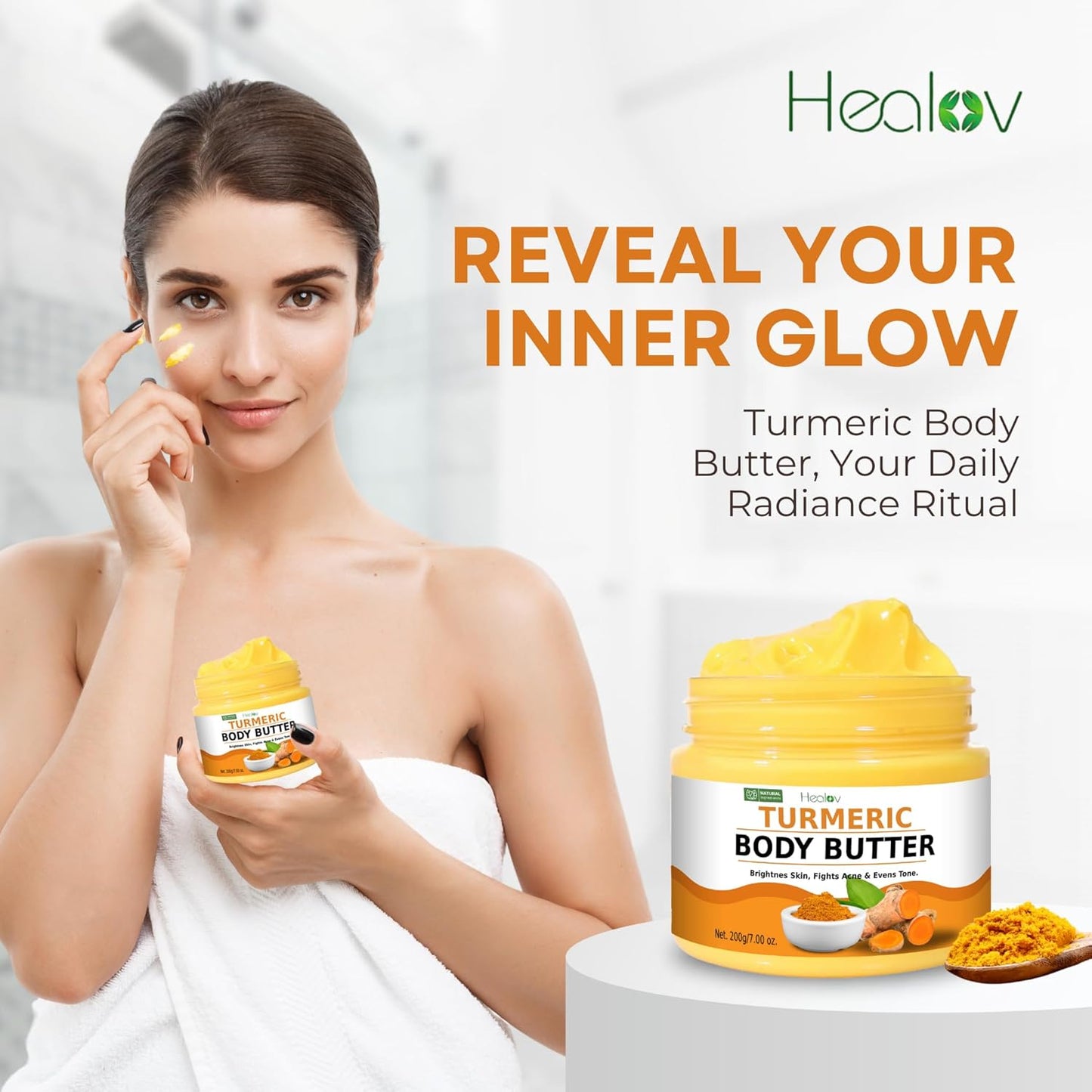 FOR FACE & BODY CLEANSING: Whether used as a hyperpigmentation cream or a skin-brightening body lotion, our raw turmeric whipped body butter offers dual-action benefits for both face and body, promoting clean and bright skin.