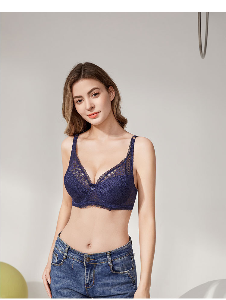 Underwear Adjustable Thin Big Breast Show Little Gather Ladies Lace Steel Ring Bra
