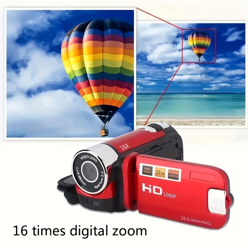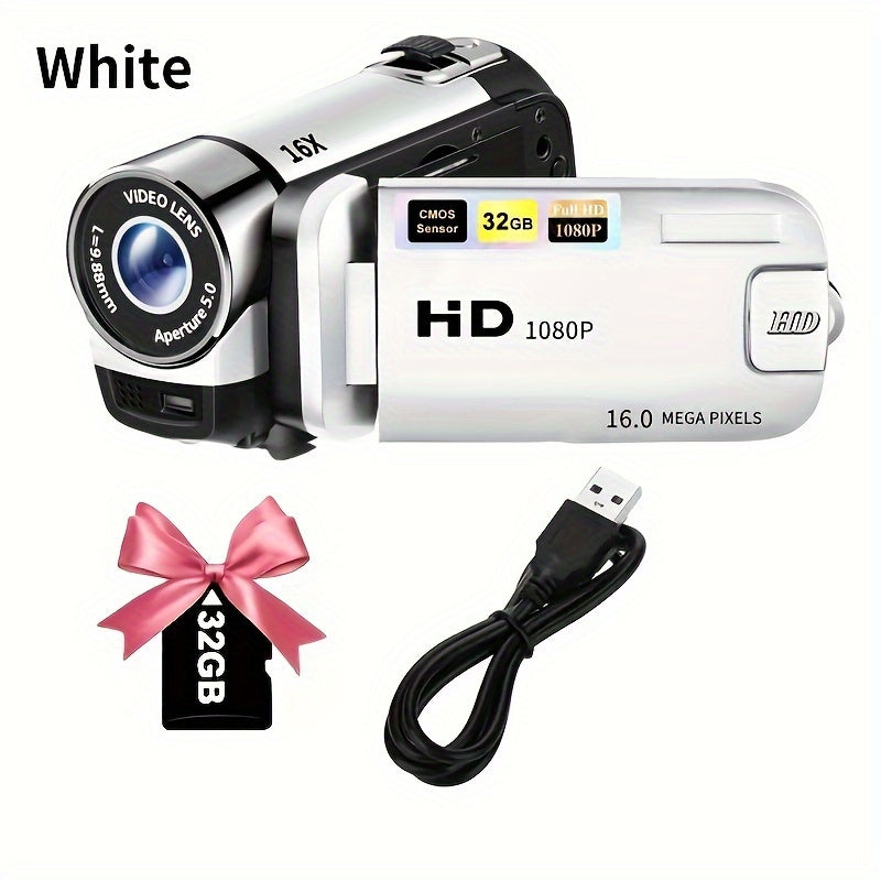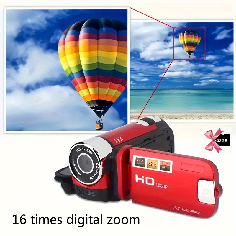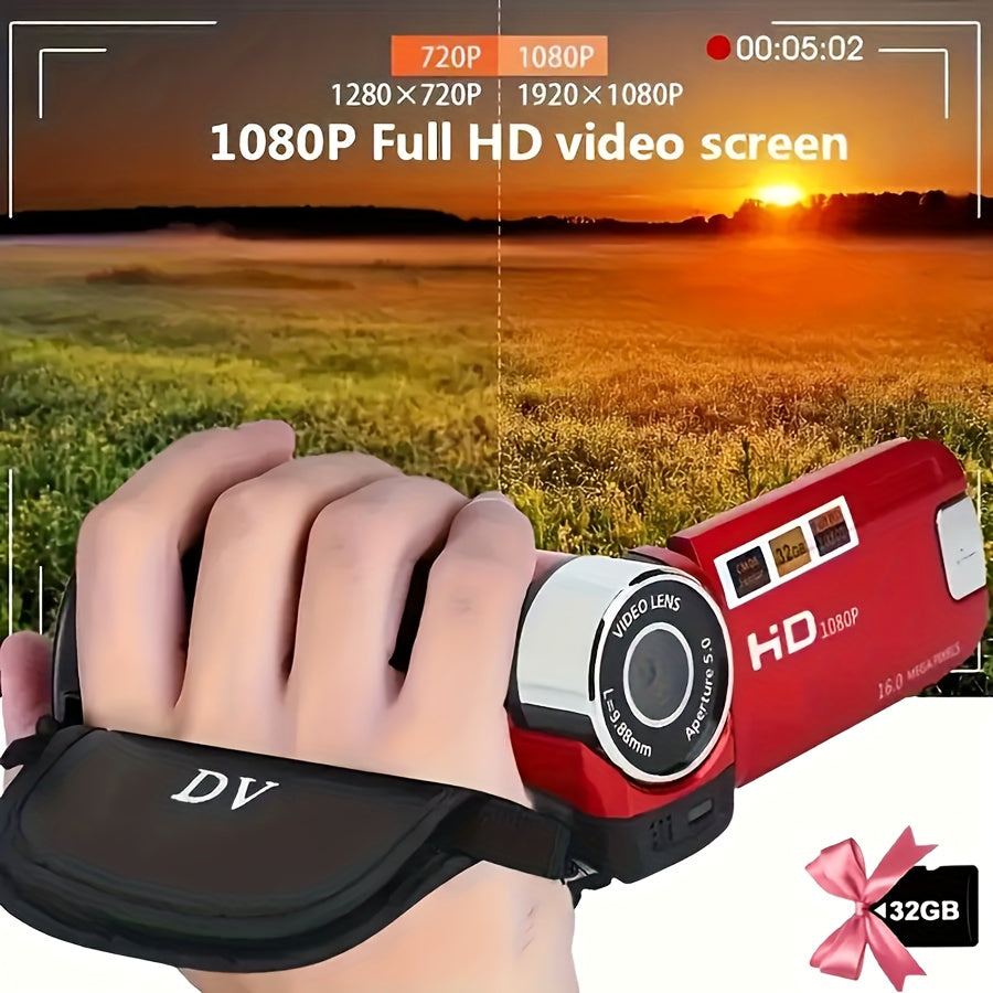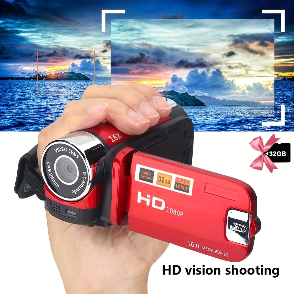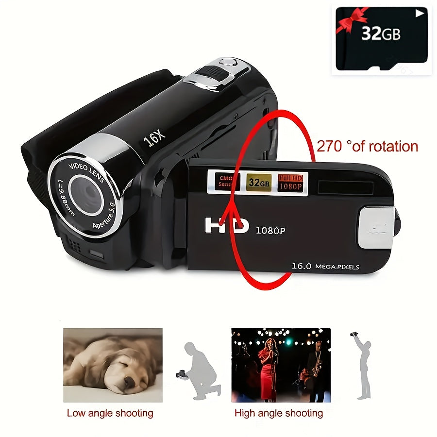 Une caméra avec un écran LED rotatif à 270°, équipée d'une carte mémoire de 32 Go, d'un zoom numérique 16x, d'un écran de 2.4 pouces, d'une nouvelle caméra grand angle haute définition, d'un caméscope portable, adapté à l'enregistrement à domicile et en e