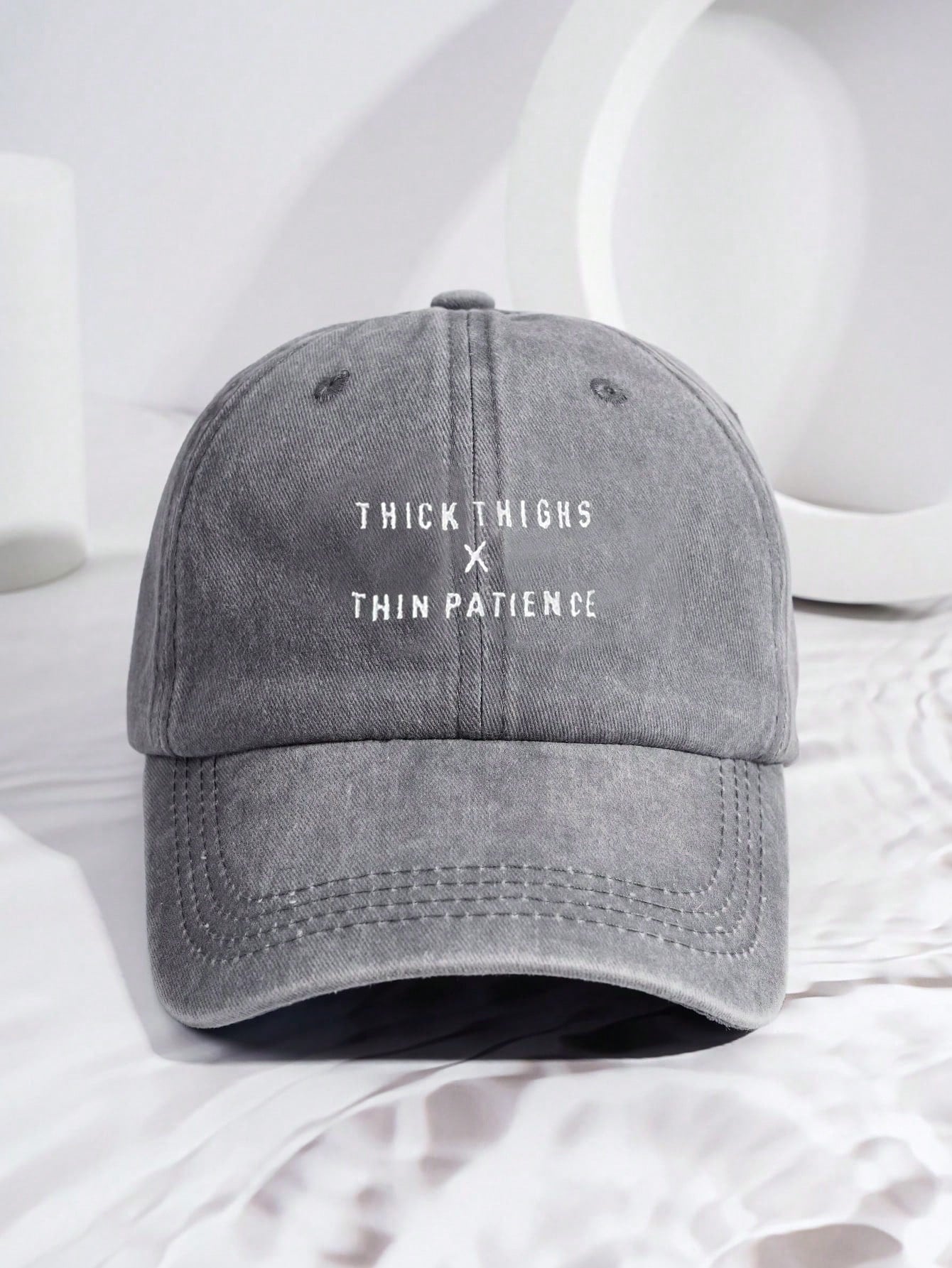 Unisex Embroidered 'THICK THIGHSxTHIN PATIENCE' Washed Baseball Cap, Outdoor Adjustable Leisure Hat