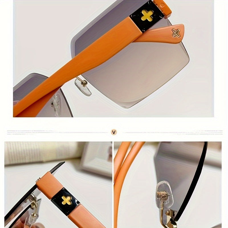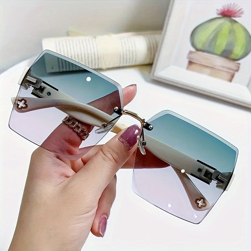 Unisex Fashion Rimless Geometric Sunglasses, Oversized One-Piece Street Style Sunshades, Trendy Travel Eyewear, UV Protection