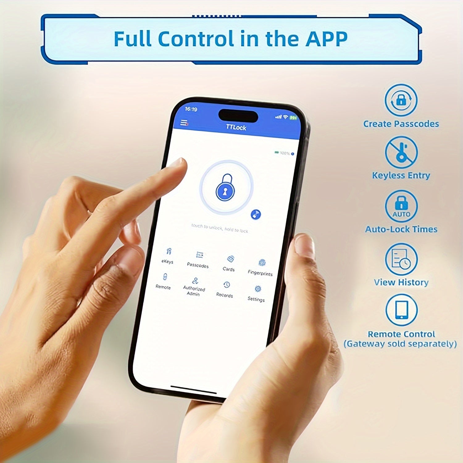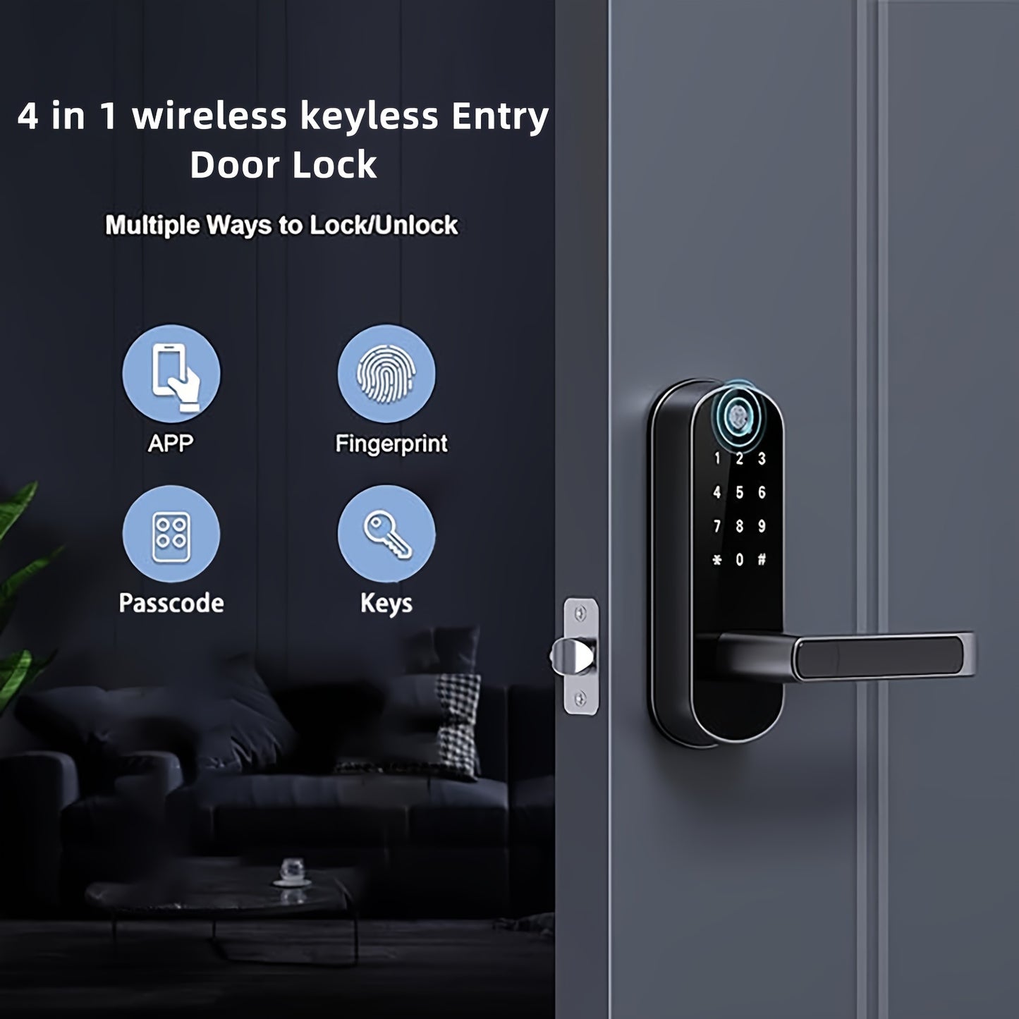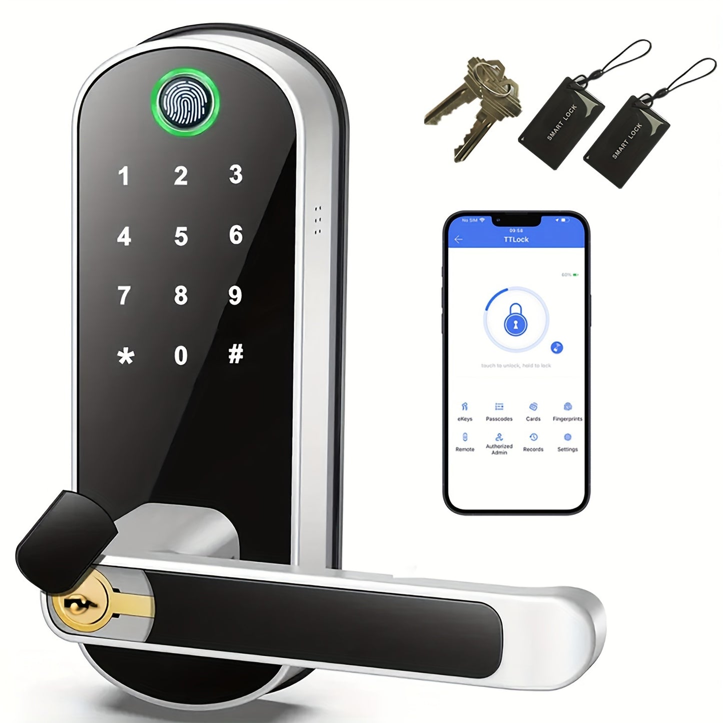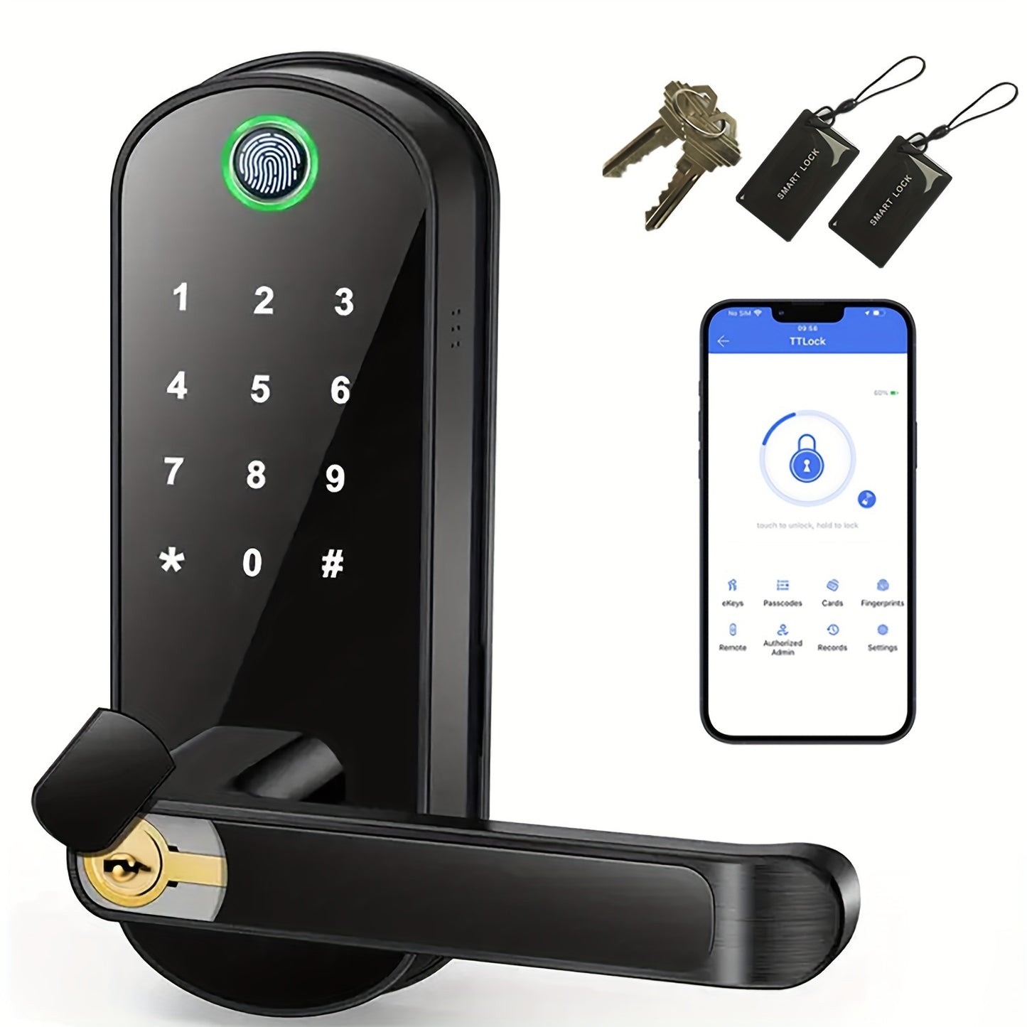 [URK Smart Lock] URK Smart Door Lock | Keyless Entry Metal Gate Lock with Fingerprint, Touchscreen Keypad, Wireless App Control, Varnished Finish, American Standard Body, Battery Powered (Excludes Battery)