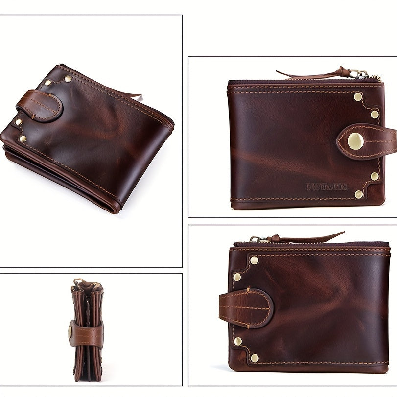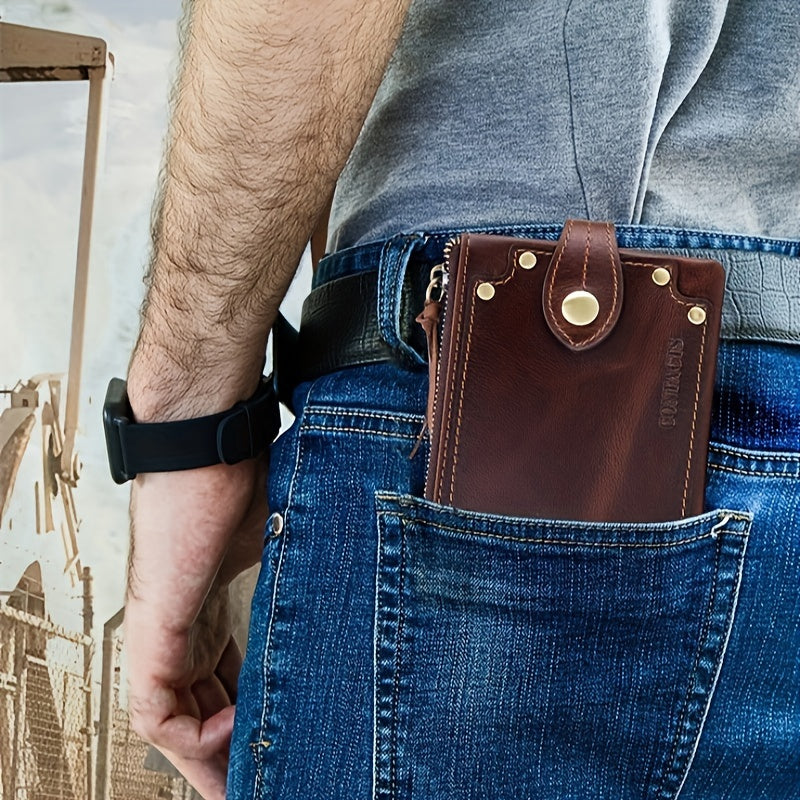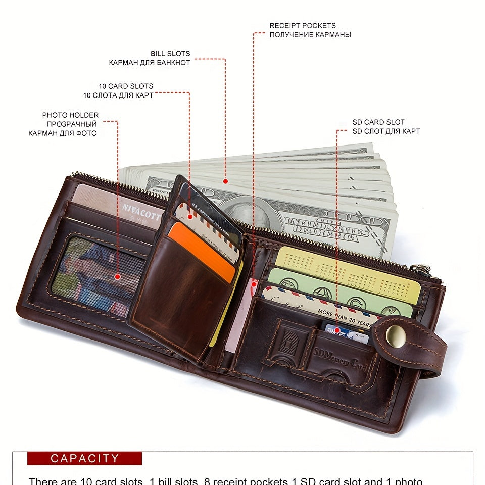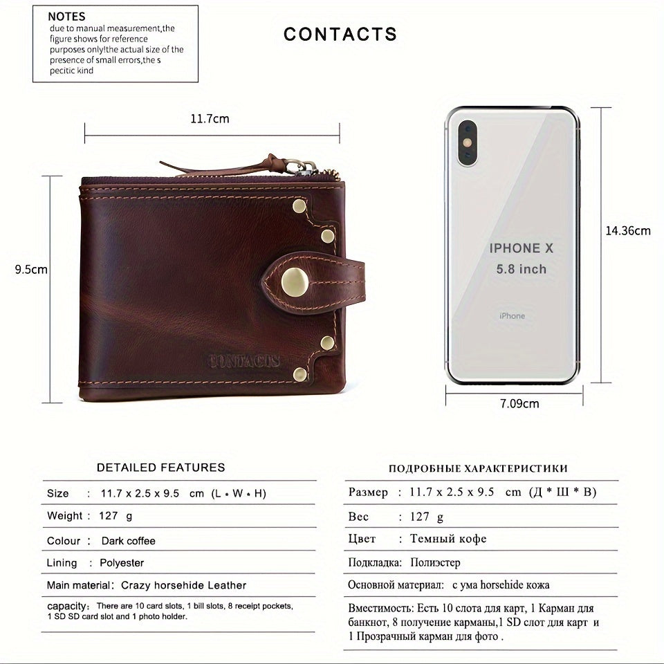 US Stock Men Leather Short Wallet 10 Credit Card Holder Receipt Pocket SIM SD Slot