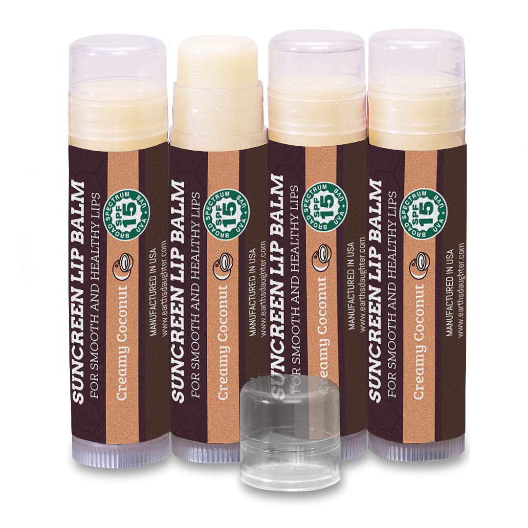 USDA Organic Lip Balm 6-Pack by Earth's Daughter - Fruit Flavors, Beeswax, Coconut Oil, Vitamin E - Best Lip Repair Chapstick for Dry Cracked Lips - Moisturizing Lip Care