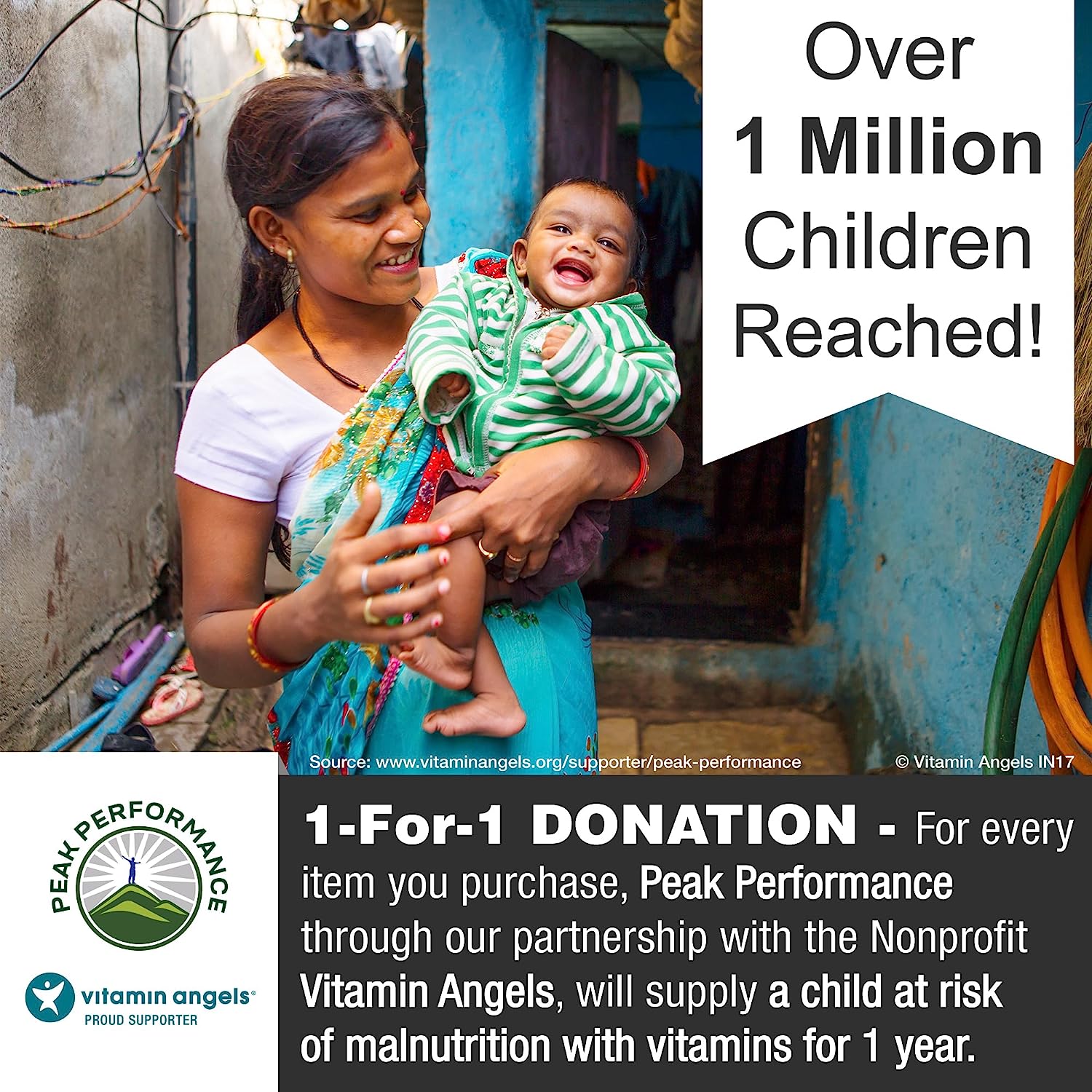 Over 1 Million Customers + 1-for-1 Donation To Vitamin Angels. Peak Performance is celebrating over 1 Million customers and we are also very proud of our 1-for-1 donation match program. For every unit you purchase, through our partnership with the nonprofit Vitamin Angels, we will supply a child at risk of malnutrition with vitamins for 1 year! To date, we've supplied over 1 Million children with life changing Vitamins- So thank you for helping us continue this great cause!