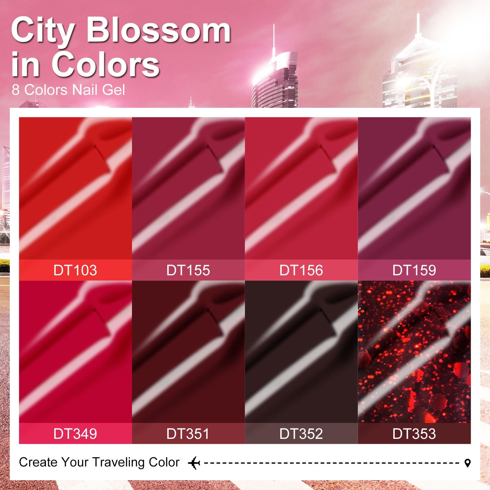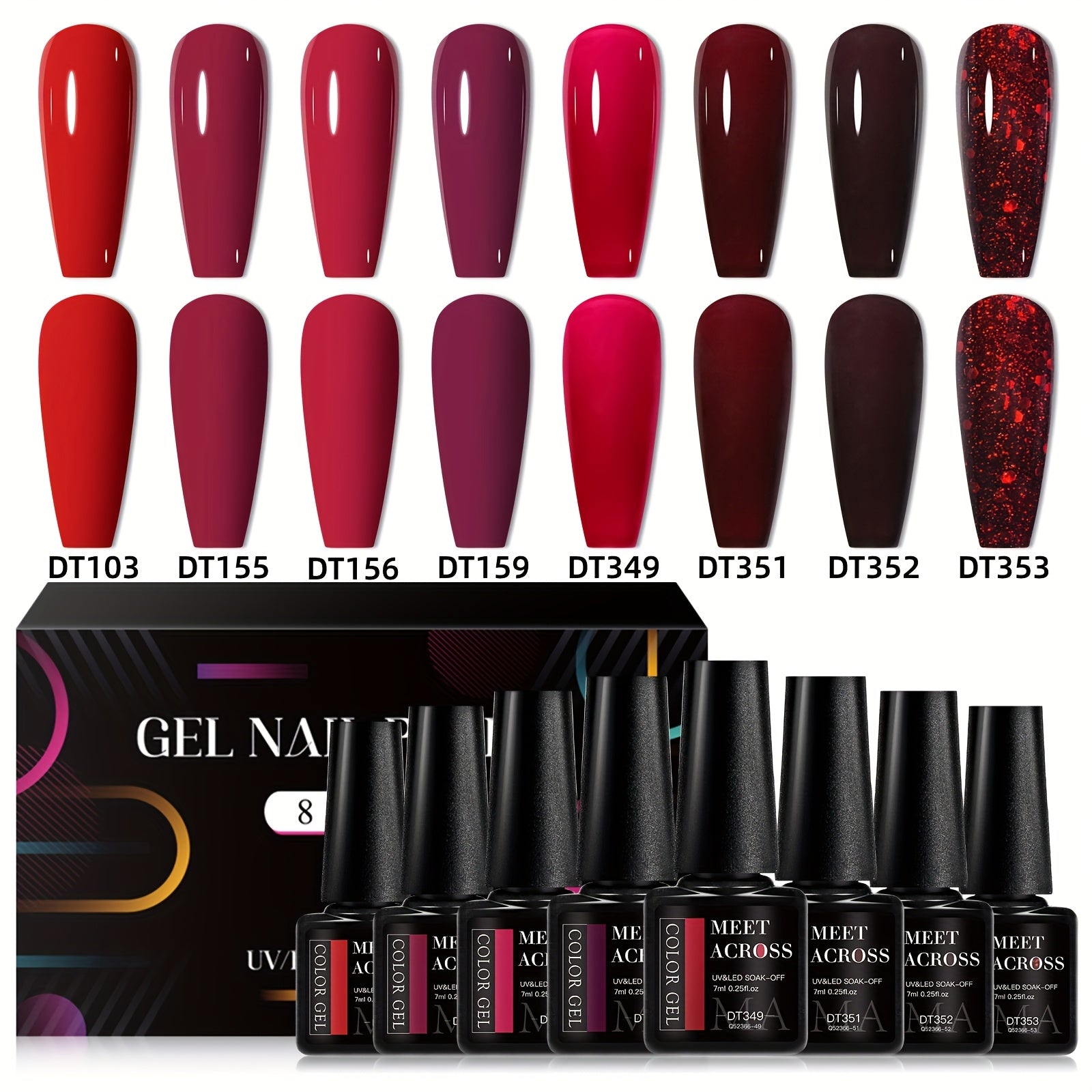 [UV/LED Lamp Nail Art Manicure] 8pcs Wine Red Gel Nail Polish Set, Semi-Permanent Soak Off Air Dry Manicure Art Varnish Kit with UV/LED Lamp - Ideal for DIY Professionals and Christmas Gifts, Colors Gel Nail Set, Nail Lamp Curing, Gifts Collection