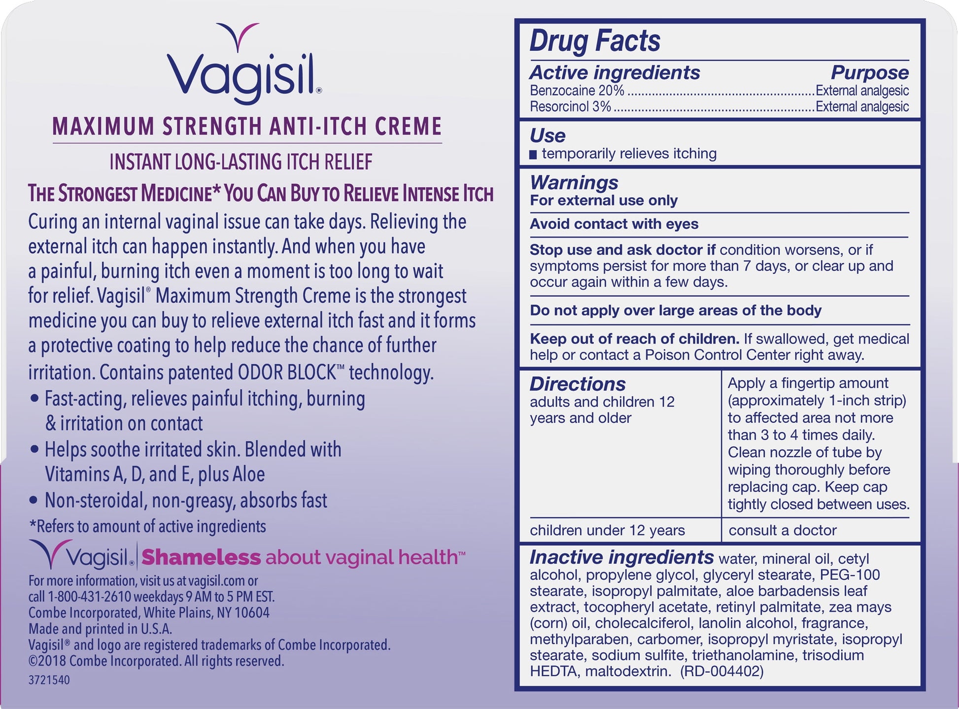 Vagisil Anti-Itch Vaginal Creme, Maximum Strength with Benzocaine 20%, 1 oz: