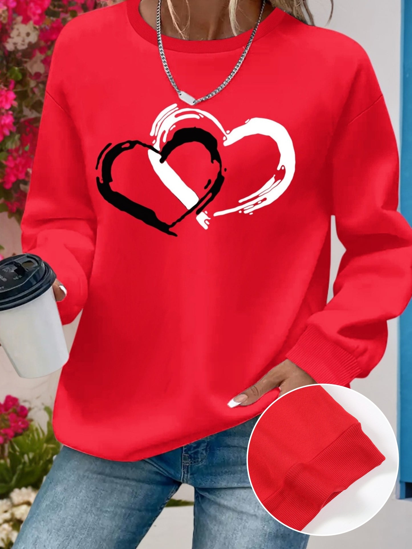 Valentine'S Day themed Heart graphic Print Sweatshirt, Crew Neck Casual Sweatshirt For Fall & Spring, Women'S Clothing