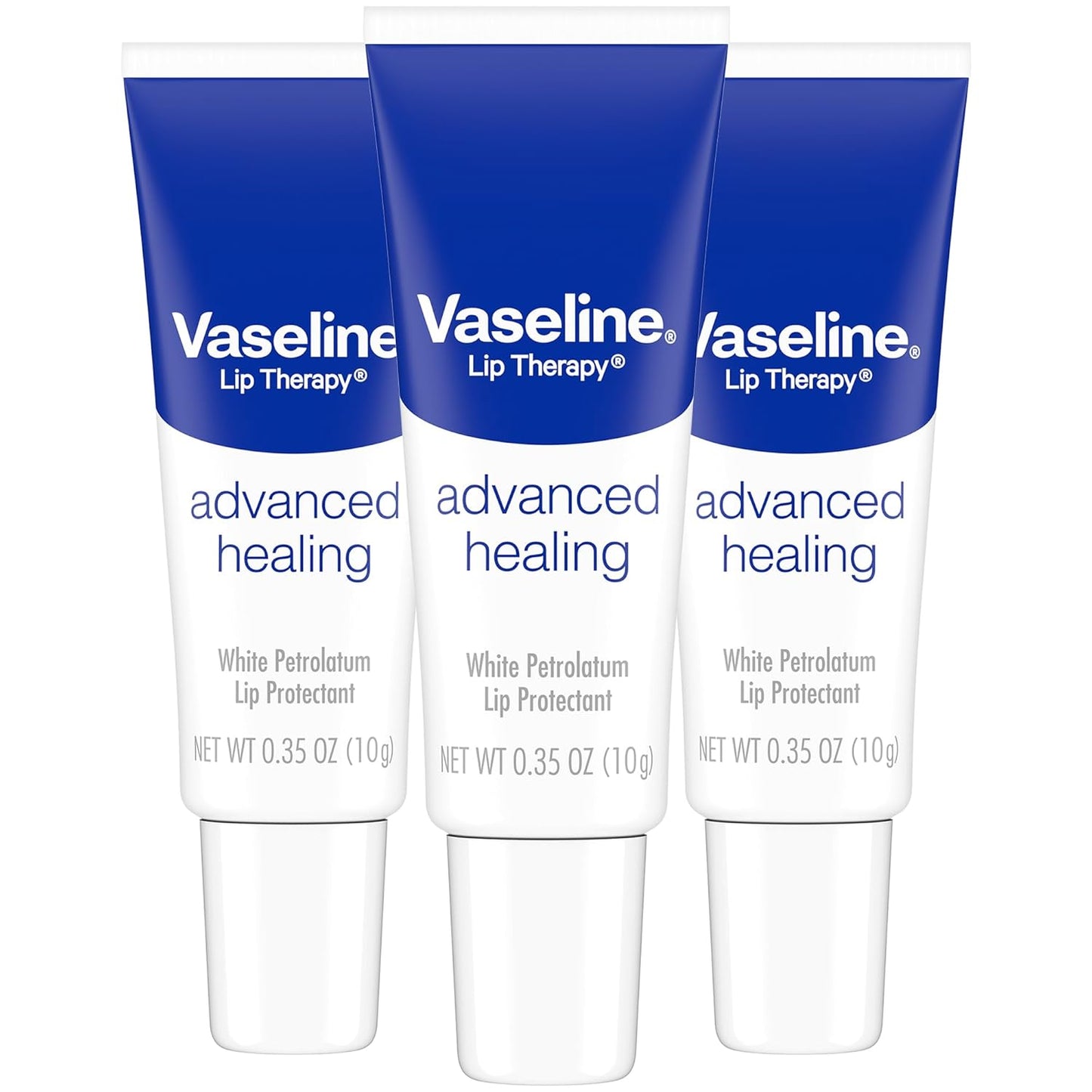 Vaseline Lip Therapy Advanced Healing 3-Pack – White Petroleum Moisturizing Lip Balm for Extremely Dry Lips, 0.35 Oz Ea