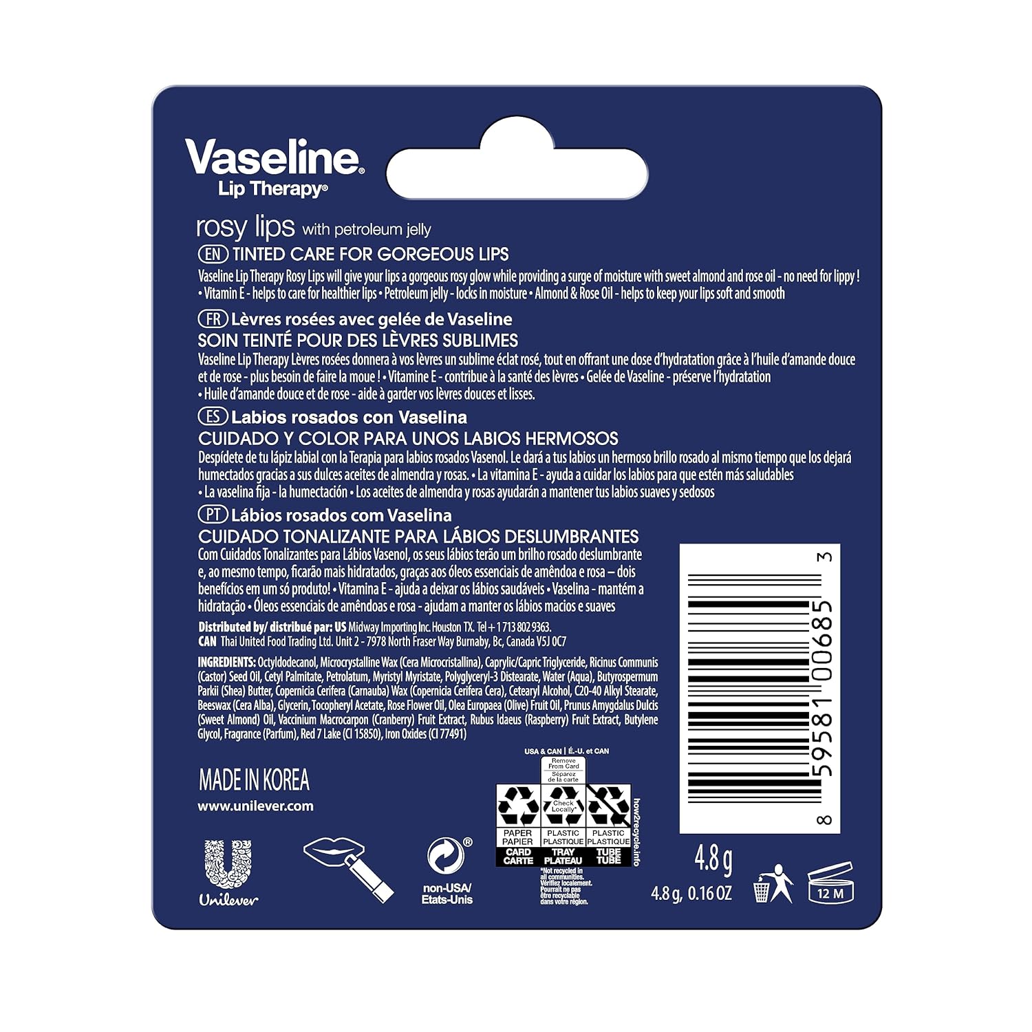 Vaseline Lip Therapy Care Rosy, Fast-Acting Nourishment, Ideal for Chapped, Dry, Cracked, or Damaged Lips, Lip Balm, 4-Pack, 0.16 Oz Each